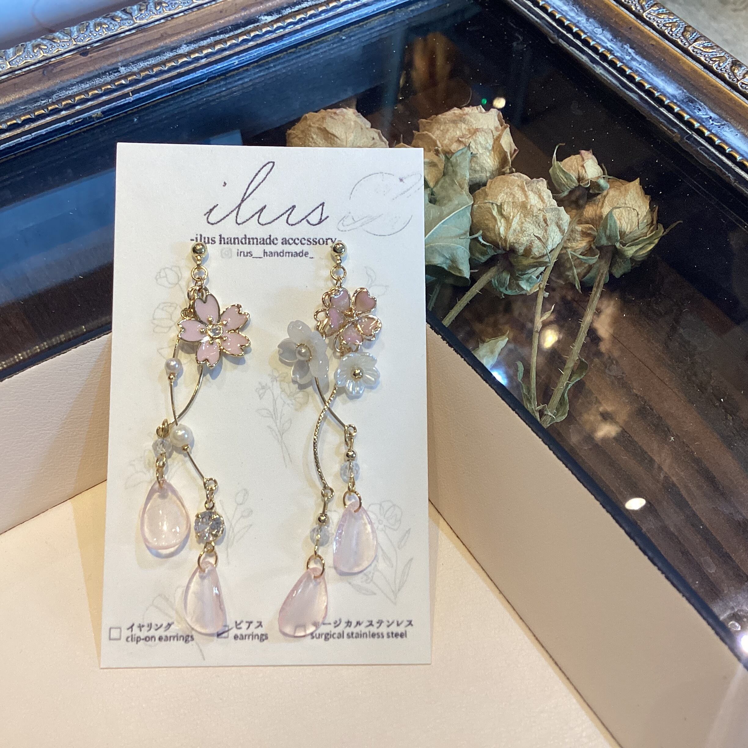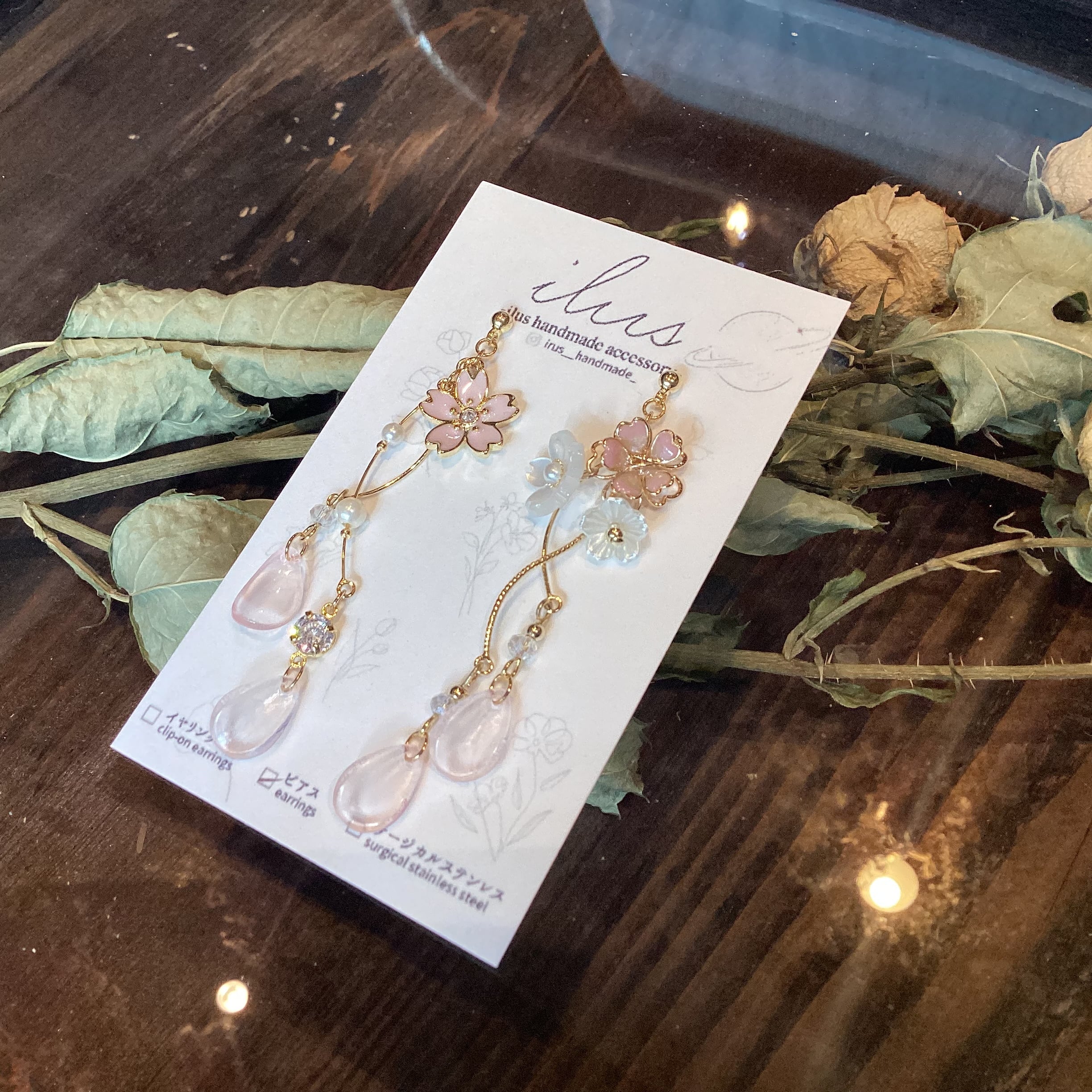 左右でデザインの違うアクセサリーです。 桜の花びらが舞っているかのようなデザインとなっております。 ※※ピアス↔︎イヤリング変更可能です。 ご購入時にご連絡くださいませ。 ※ こちらはチタンポストを使用しておりますが、全ての方にアレルギーが起こらないとは限りません。 ご自身の体質をご確認の上、判断をお願いいたします。 【八坂3】