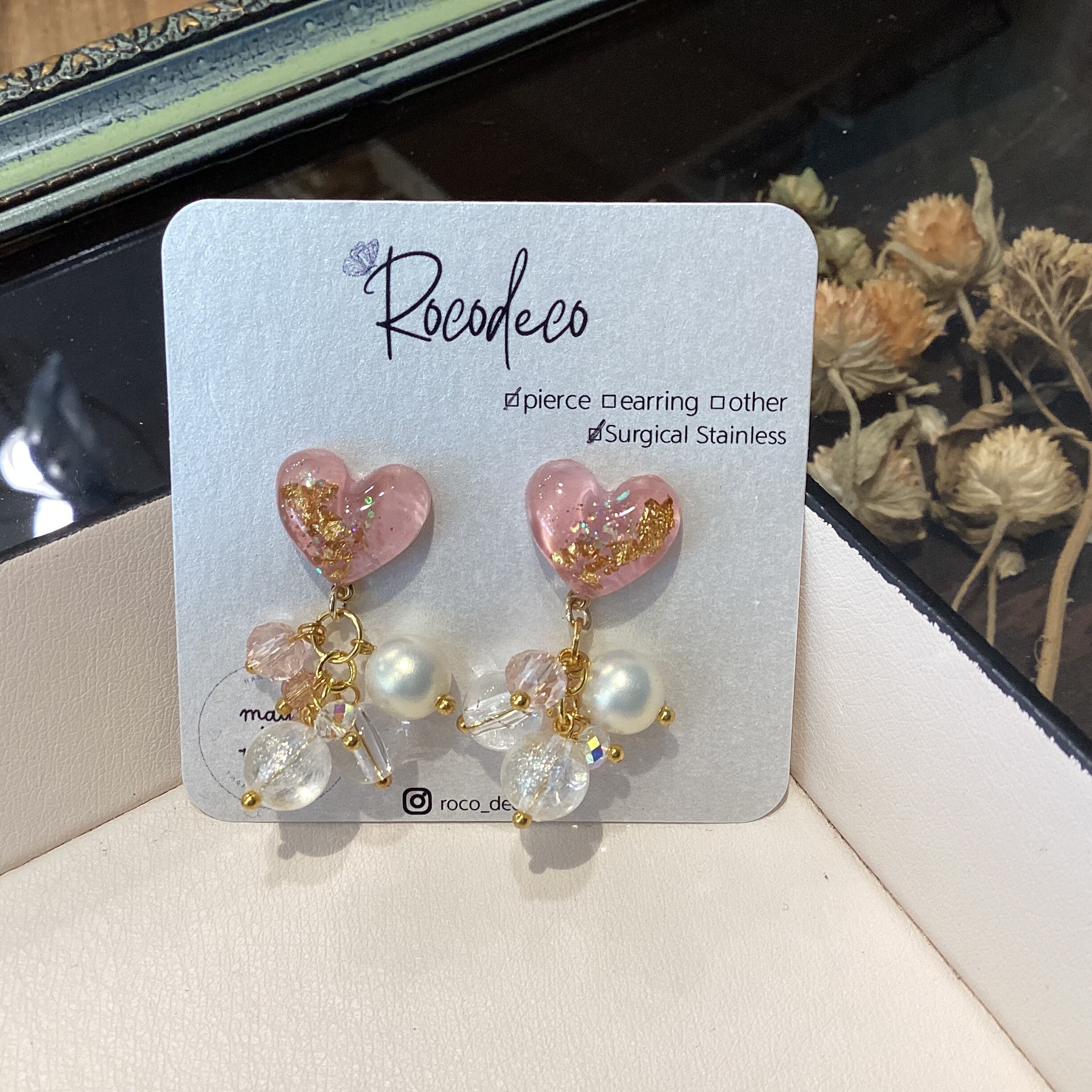 Rocodeco:ピンク色のハートのピアス