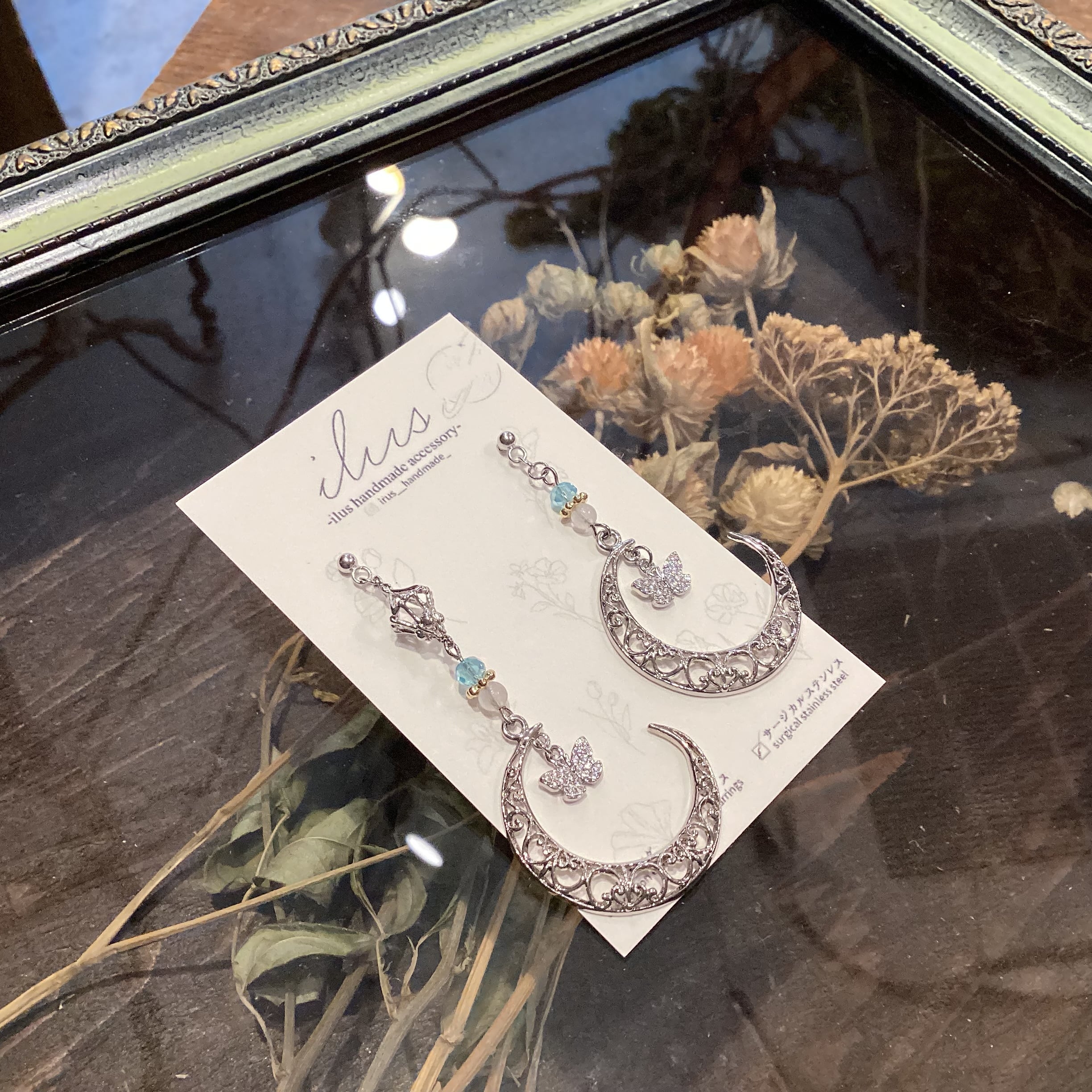 月夜の日に蝶々が飛んでいる風景が思い浮かぶようなデザインとなっております。
