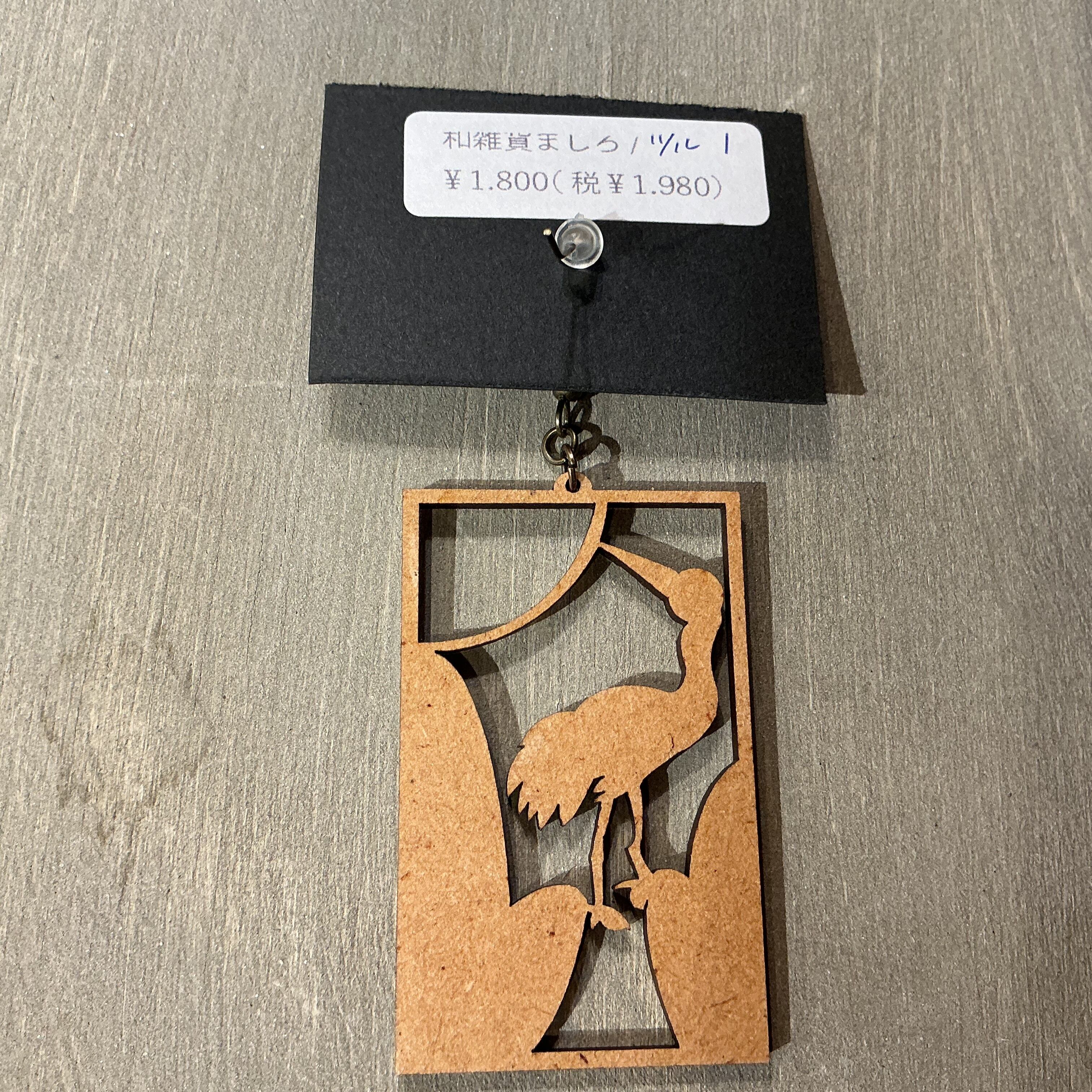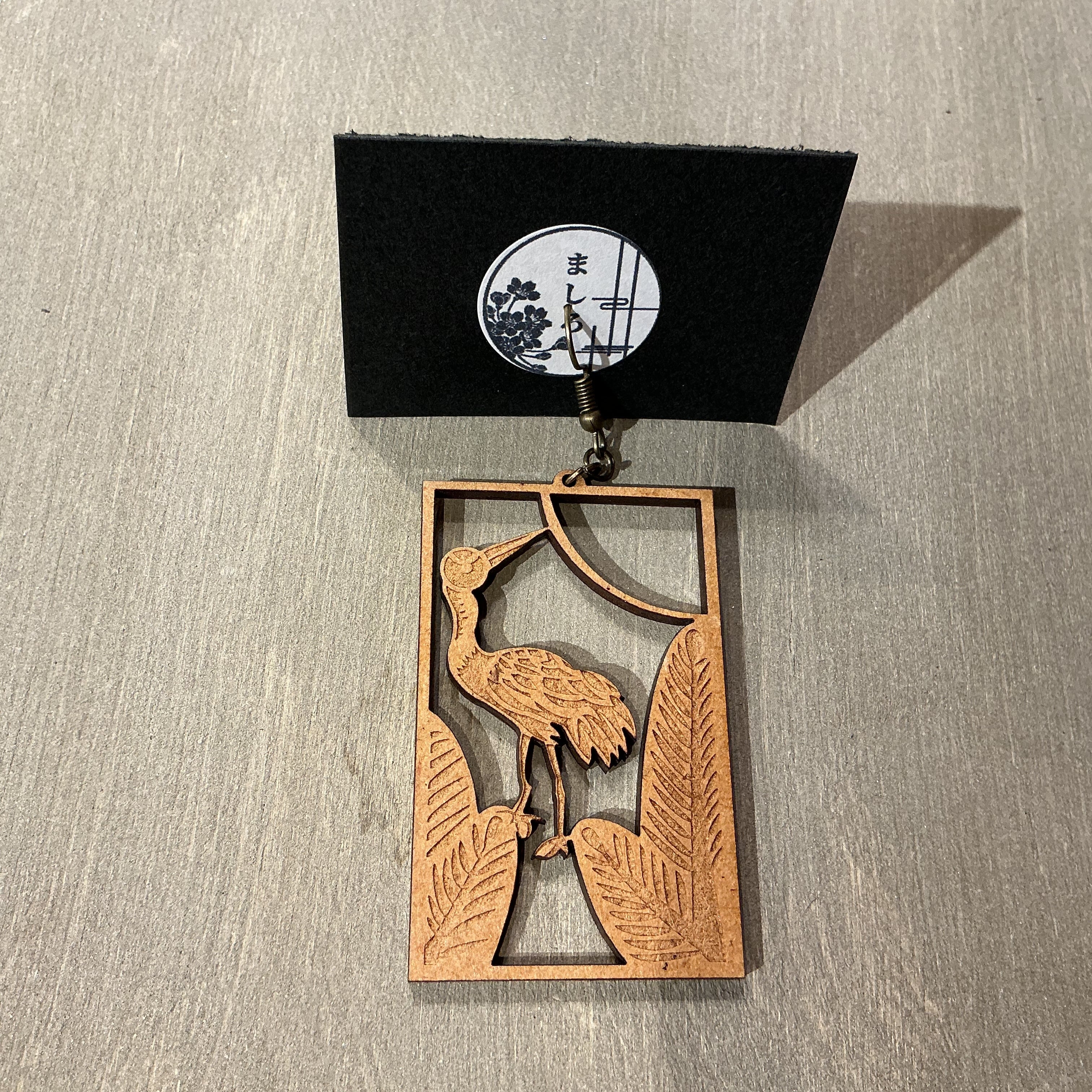"A pine and the crane" of Japanese playing cards made with wood are wooden pierced earrings in a motif.