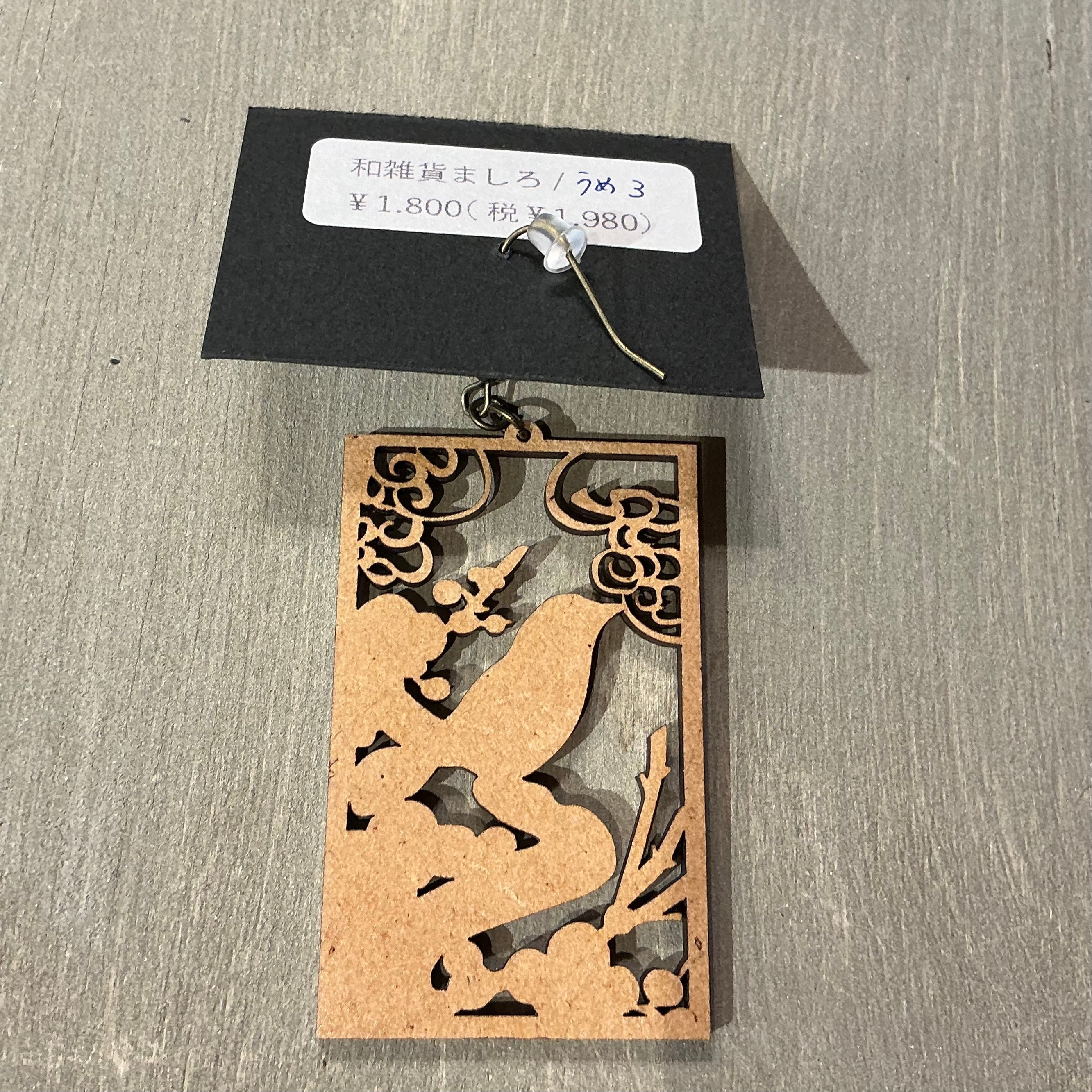The plum of Japanese playing cards made with wood are wooden pierced earrings in a motif.