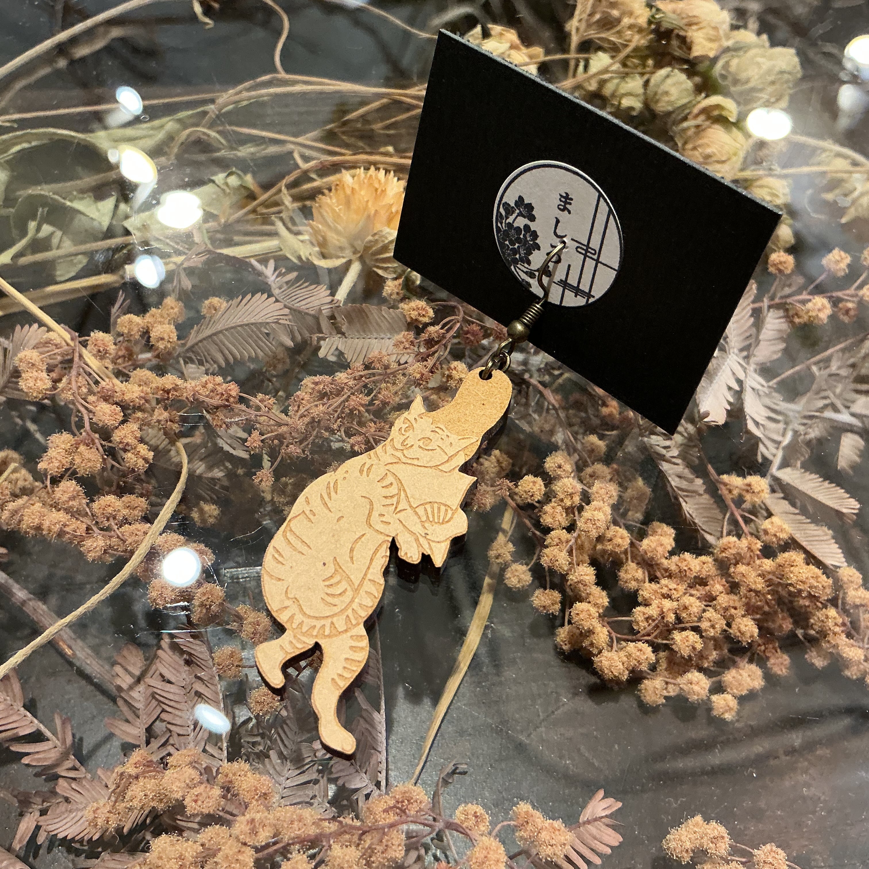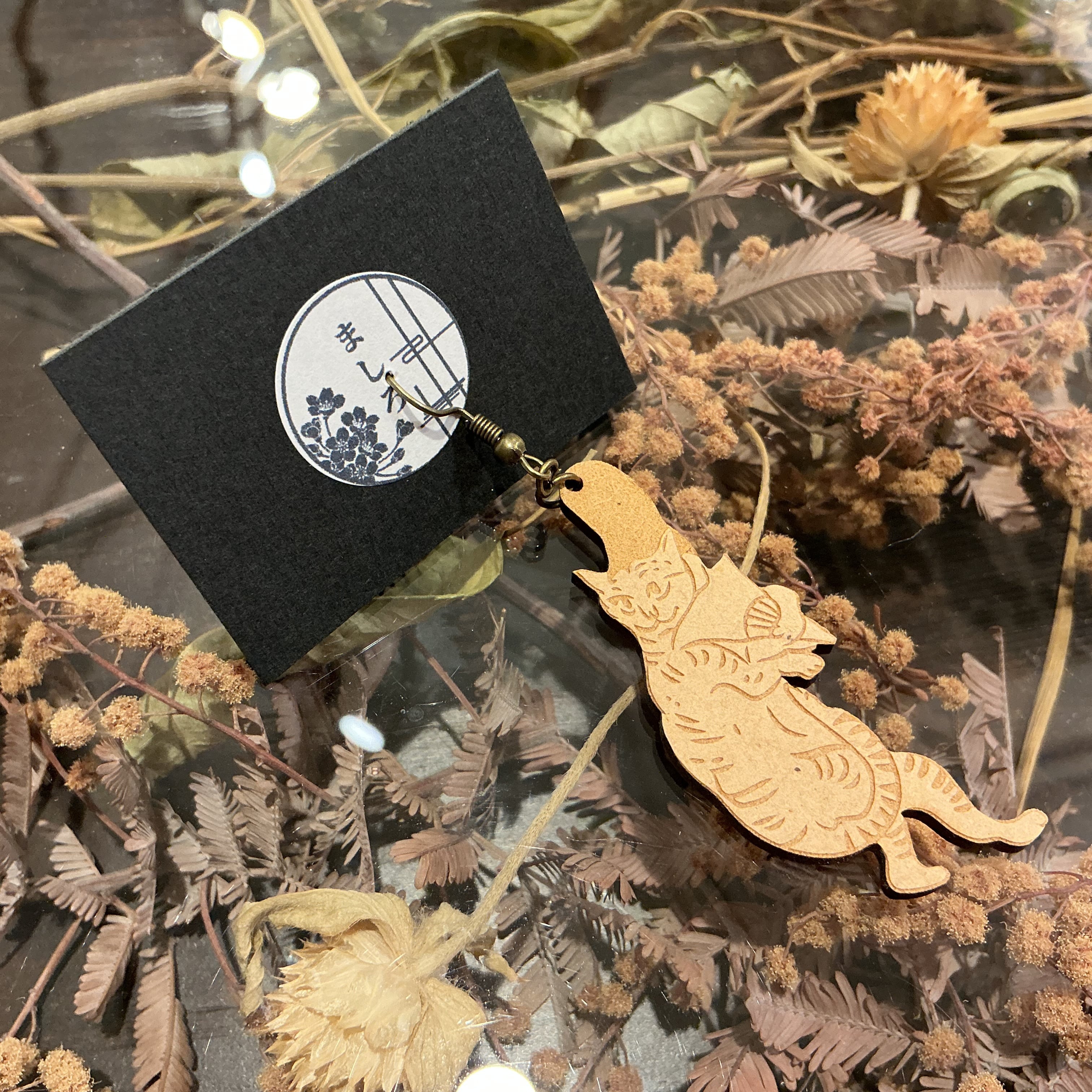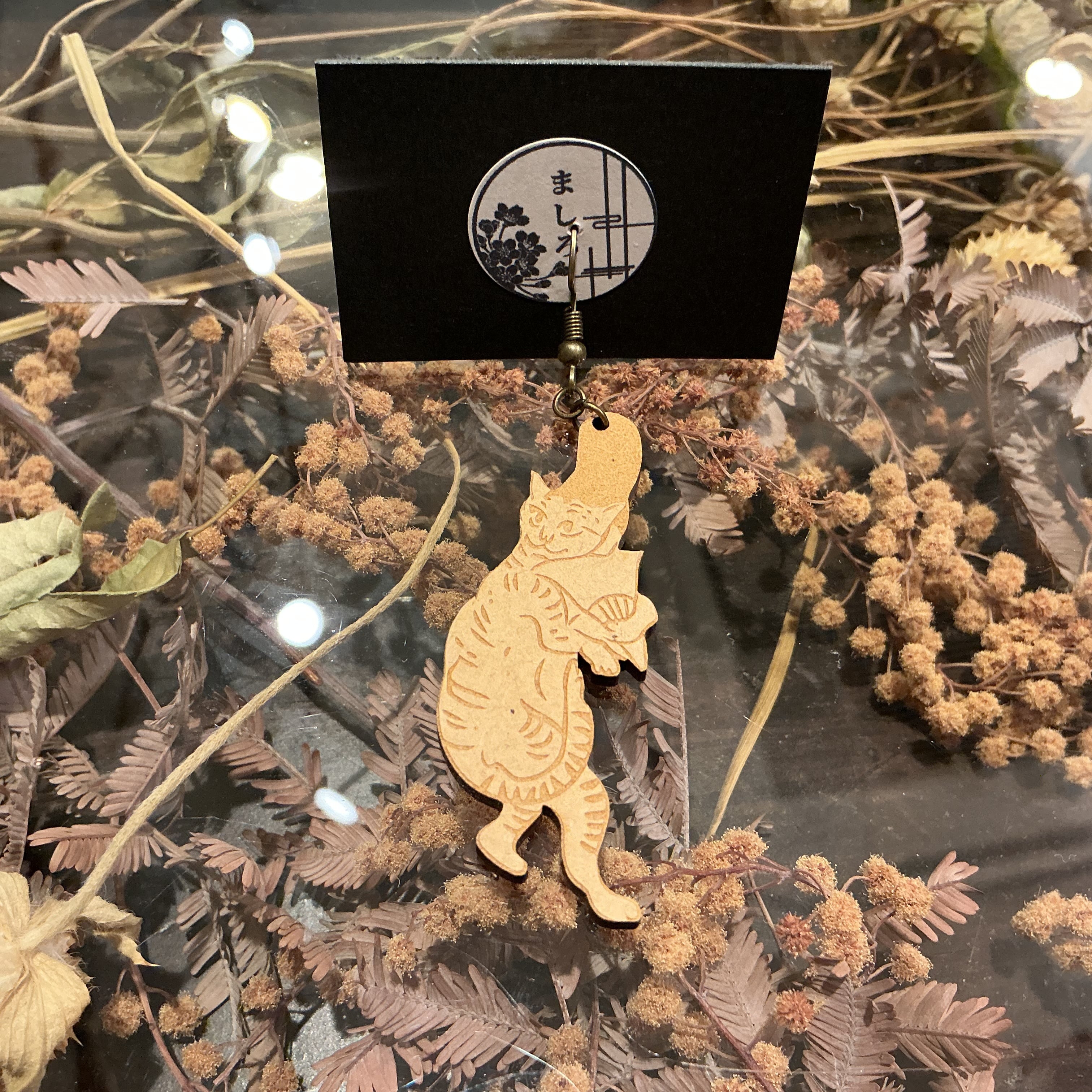 木材を彫って作られた鳥獣戯画がモチーフのピアスです✨