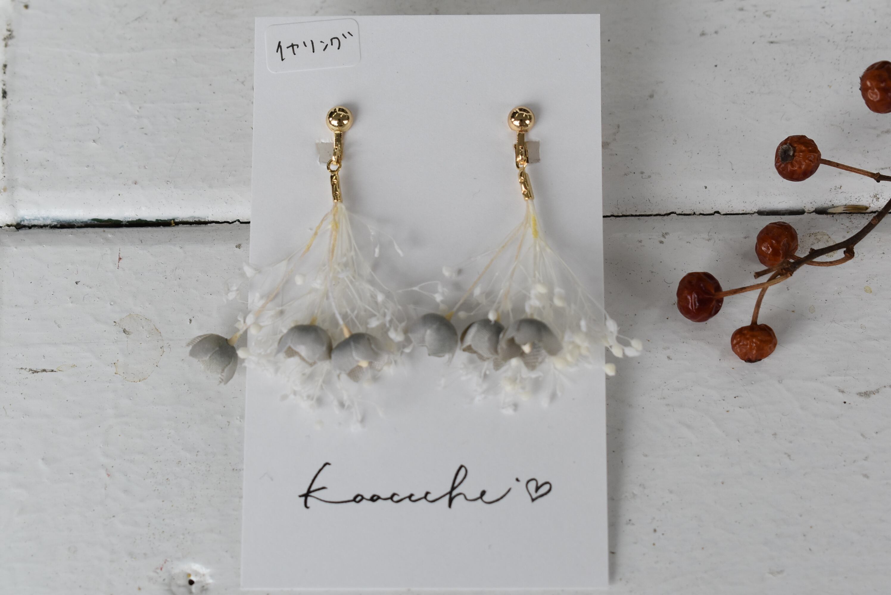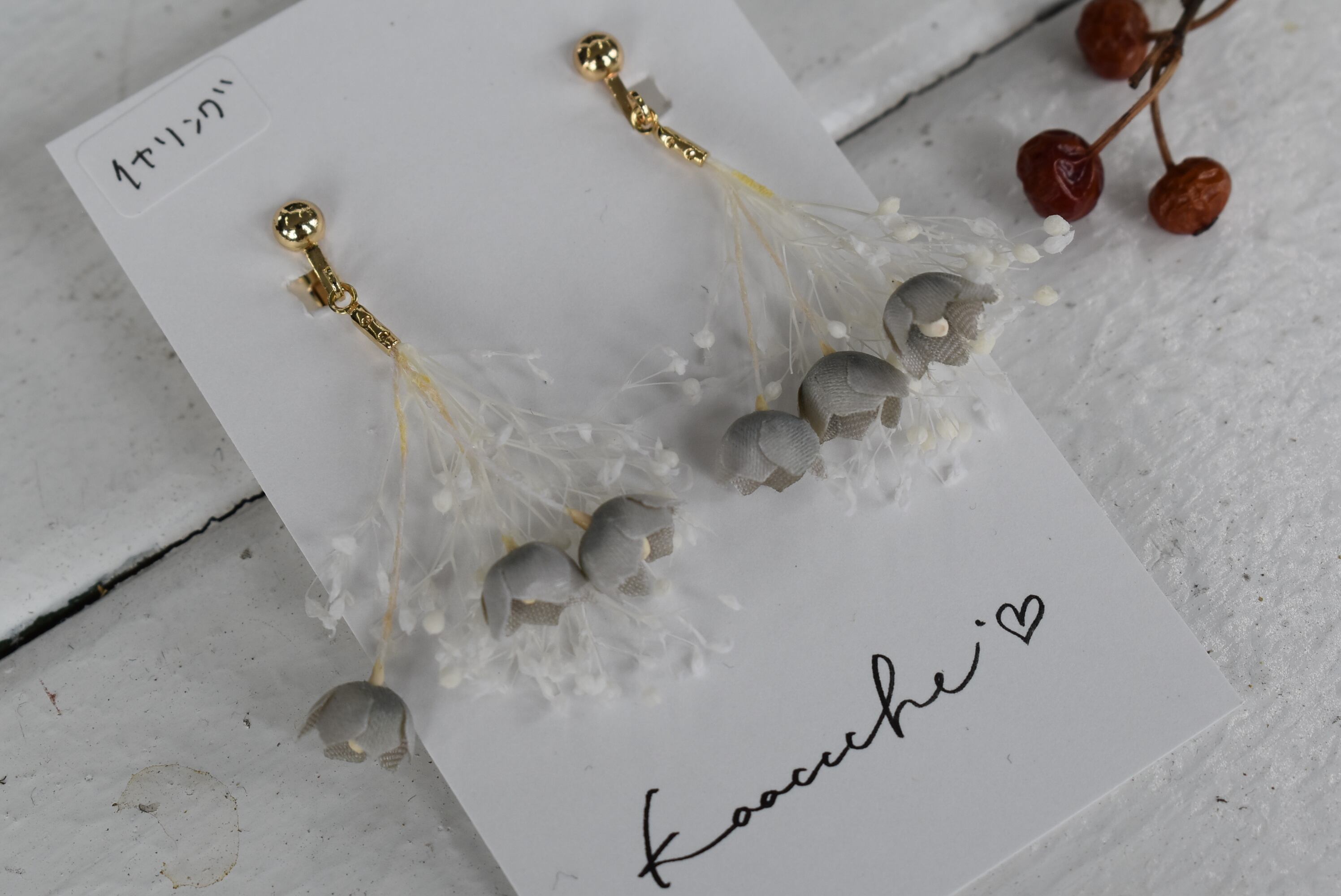 白のかすみ草とライトグレーのすずらんが合わさったイヤリングです。