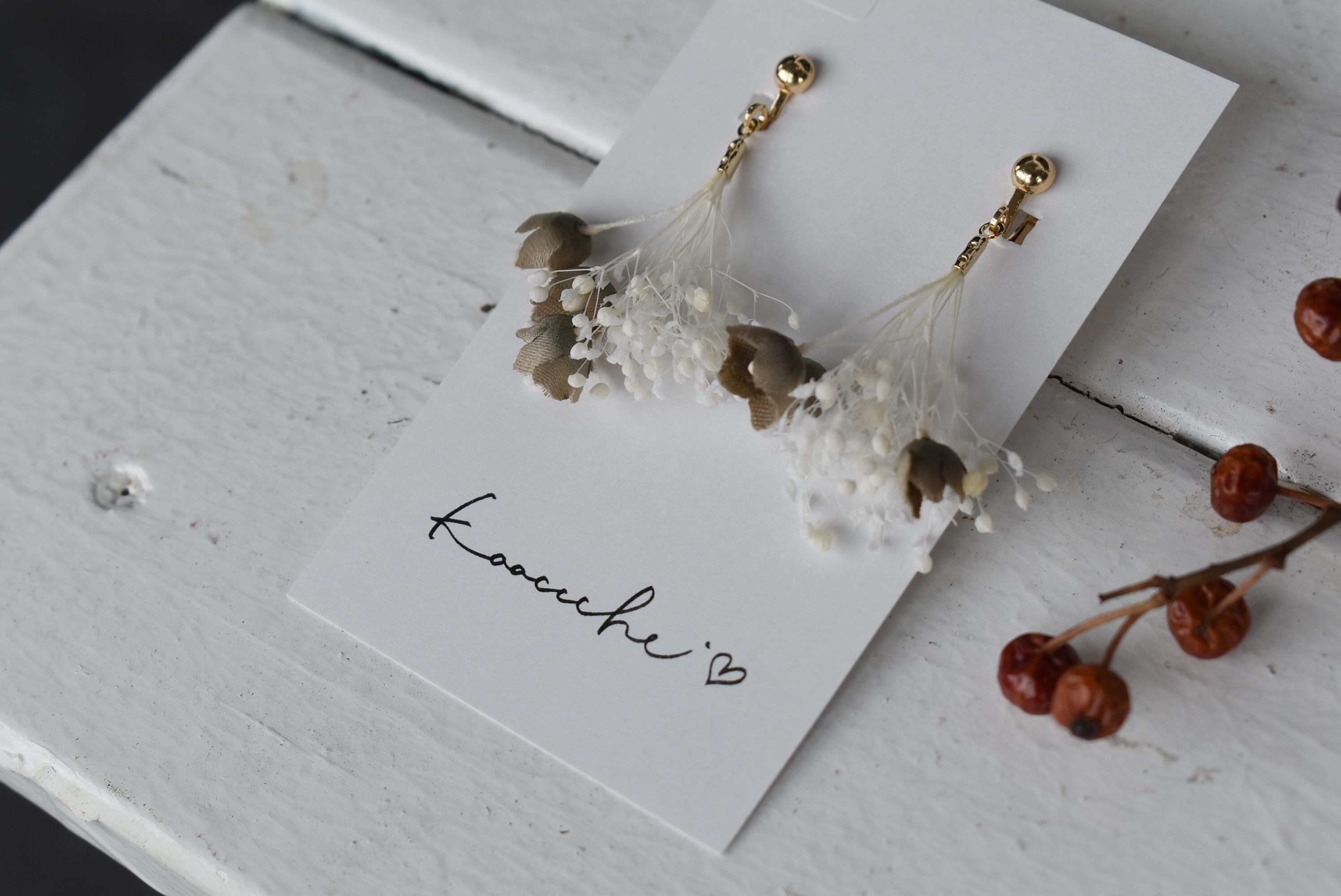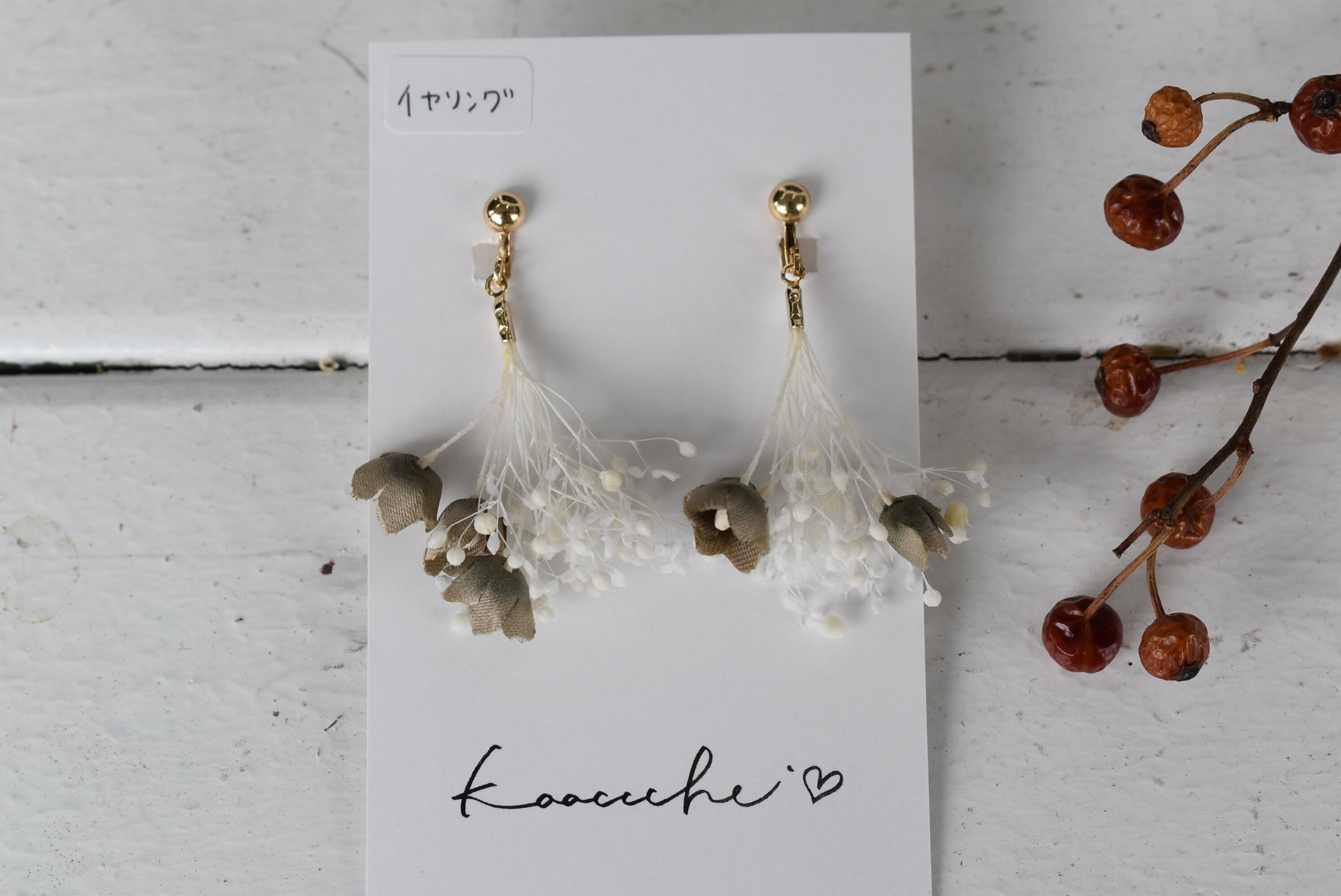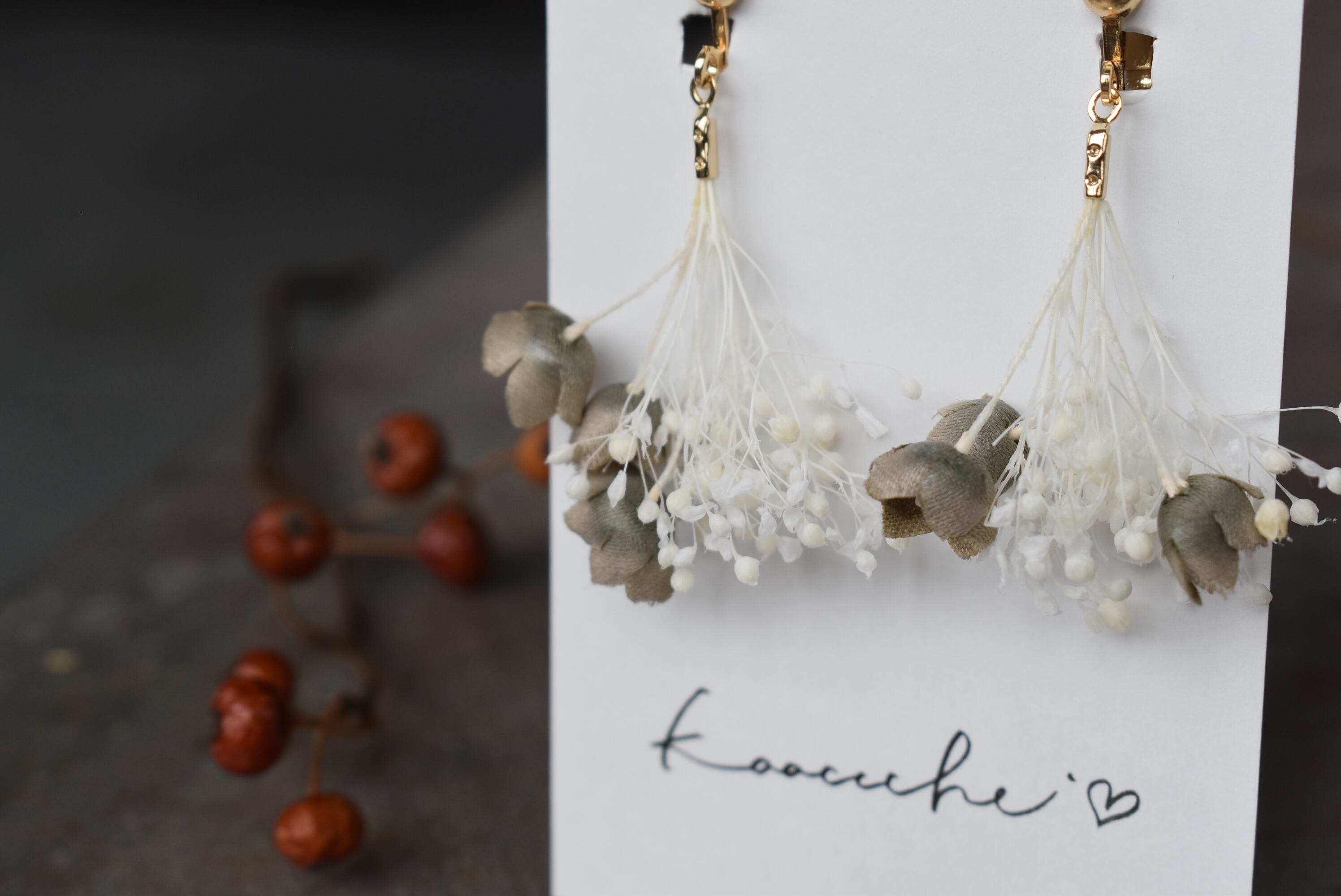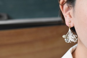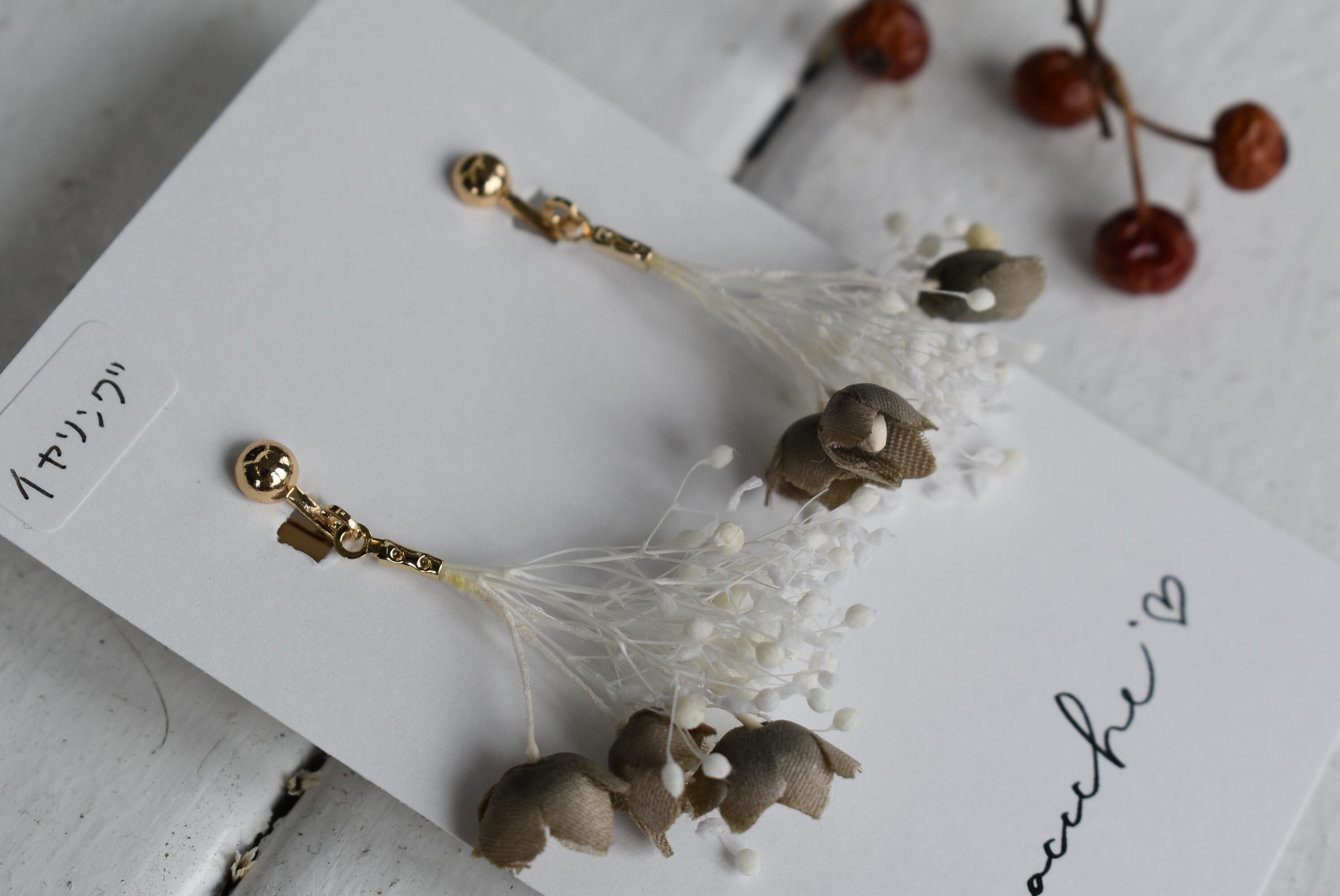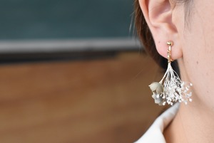 白のかすみ草とダークグレーのすずらんが合わさったイヤリングです。