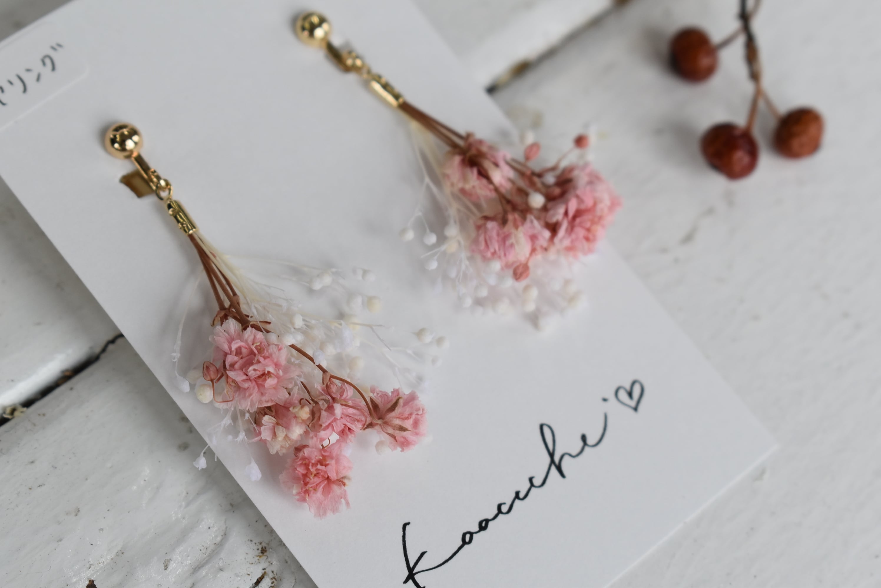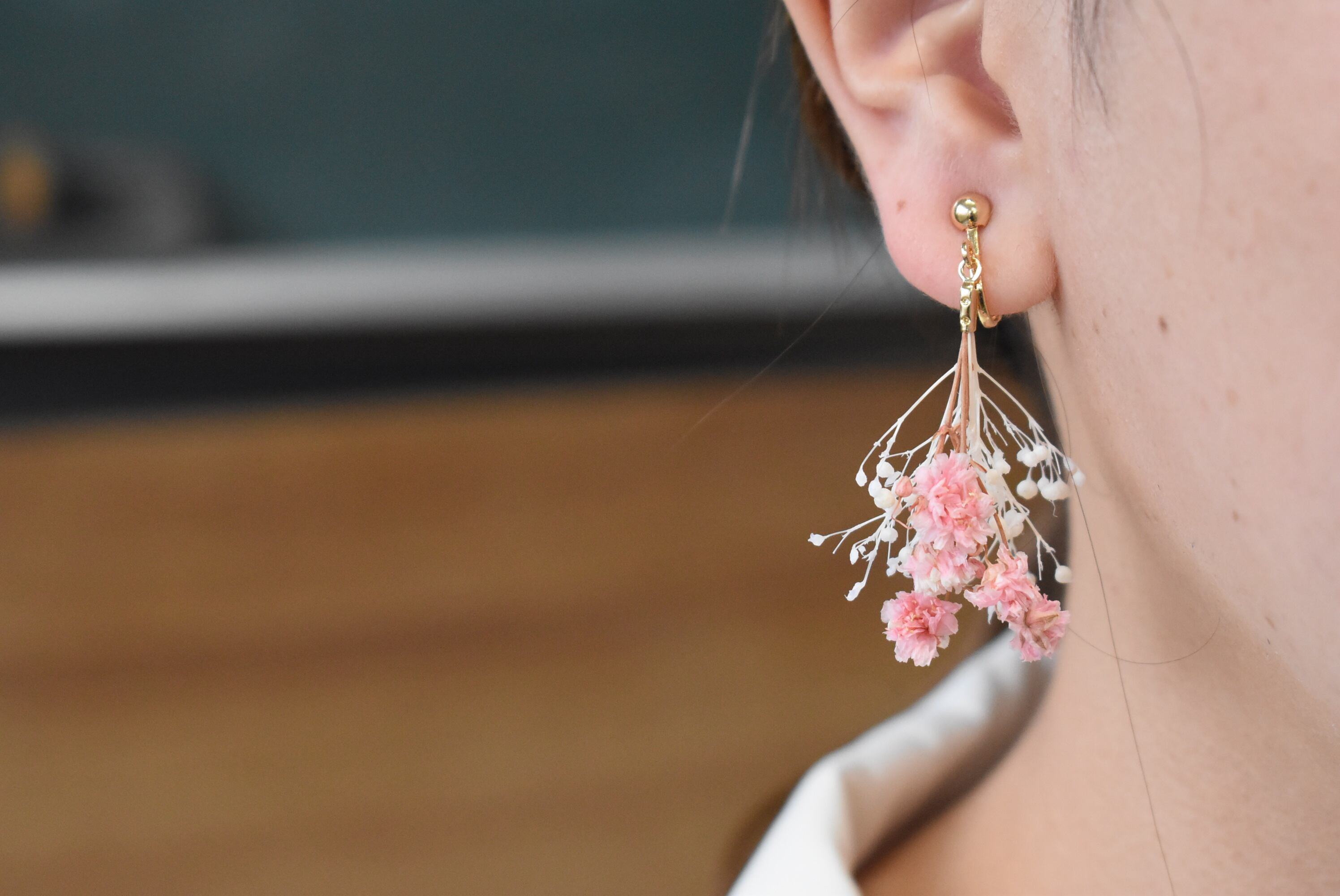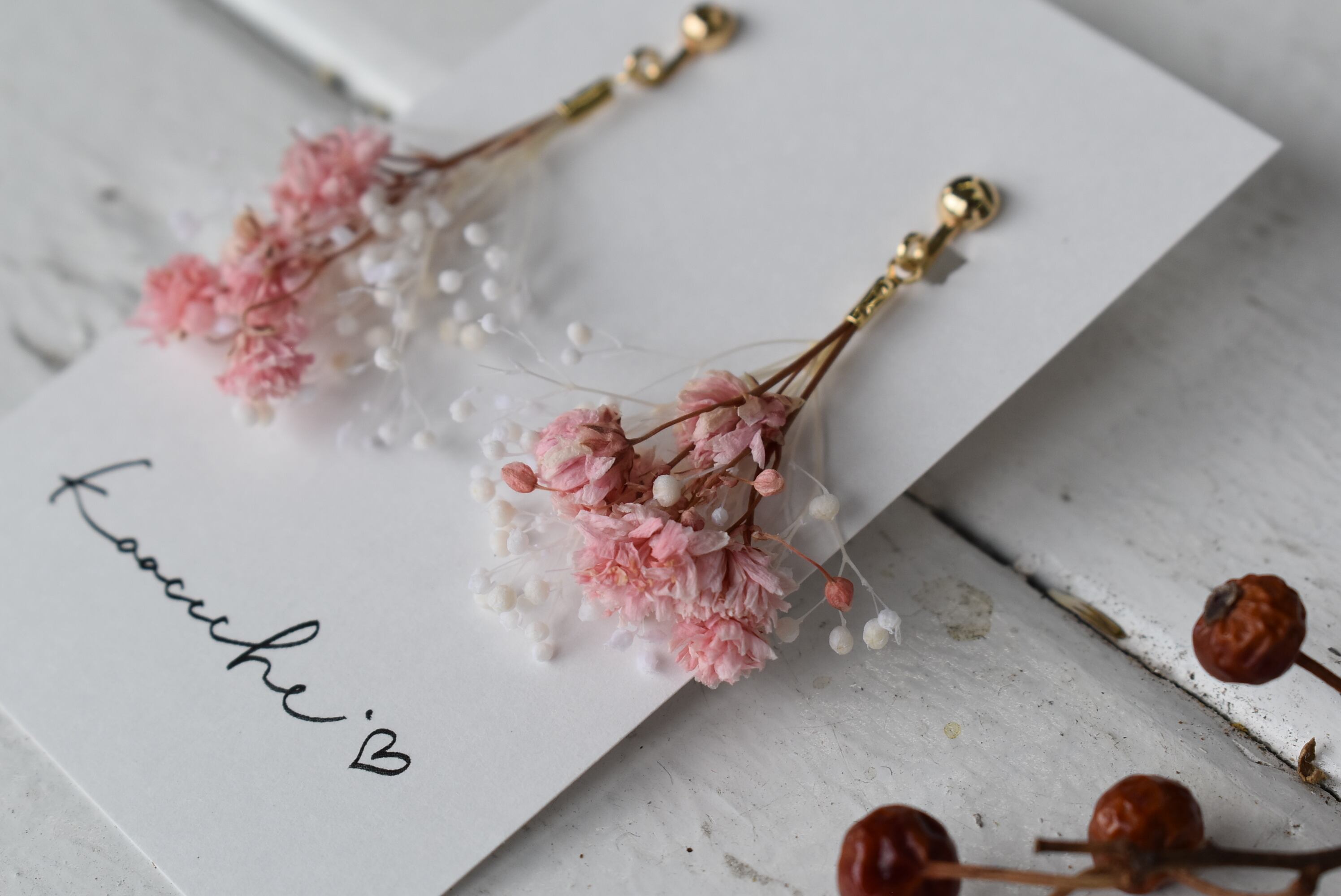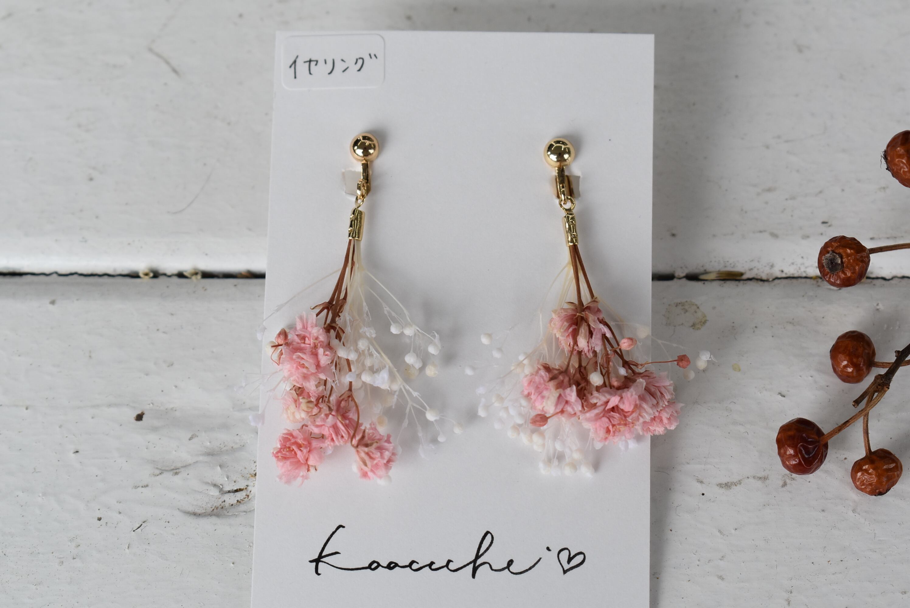 白とピンクのかすみ草が合わさったイヤリング/ピアスです。