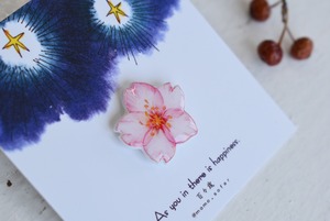 淡い春色の桜のブローチです。 イラストが美しいですね。 コーディネートのポイントになるブローチです。 蝶タックピンなので付け外しもしやすいです。【R.12-2】