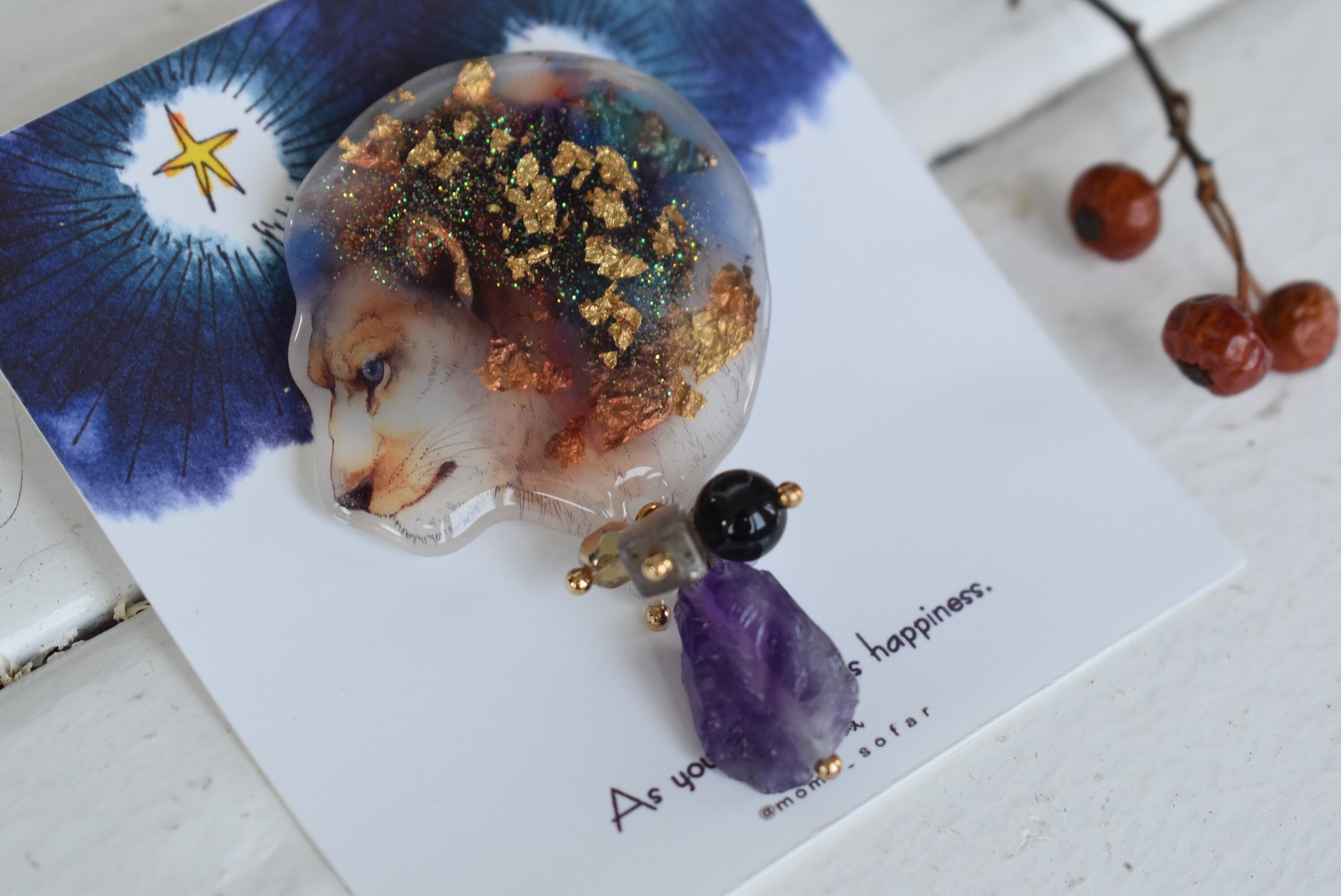ライオンのたてがみにラメや金箔が入っていてとても幻想的なイラストです。