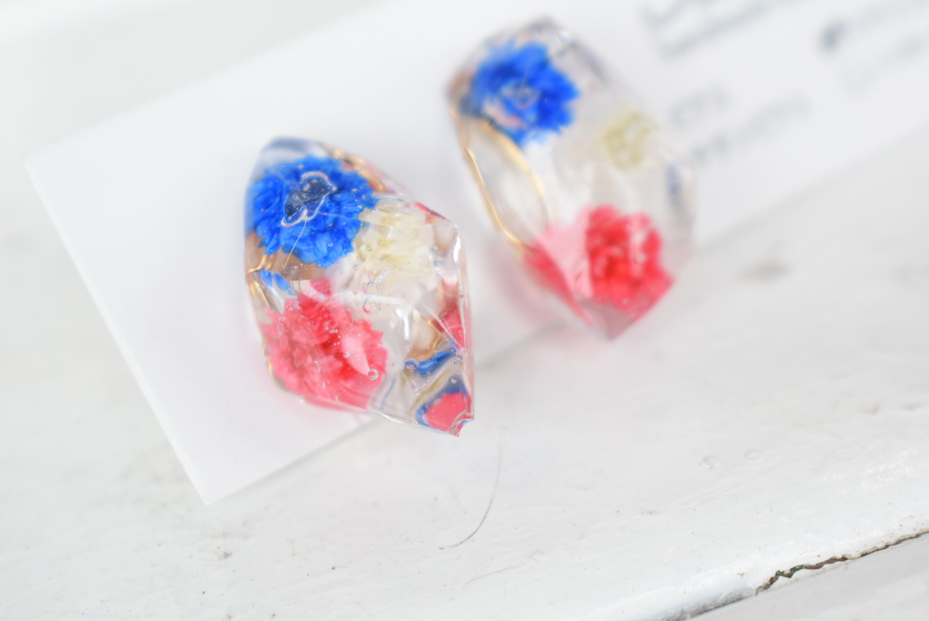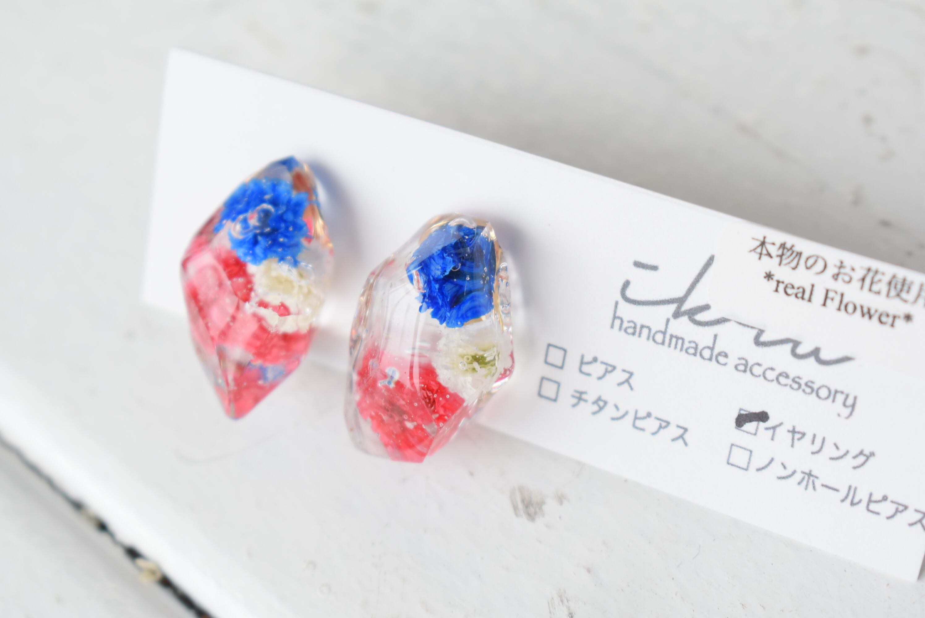お花を閉じ込めた鉱石のようなイヤリングです。