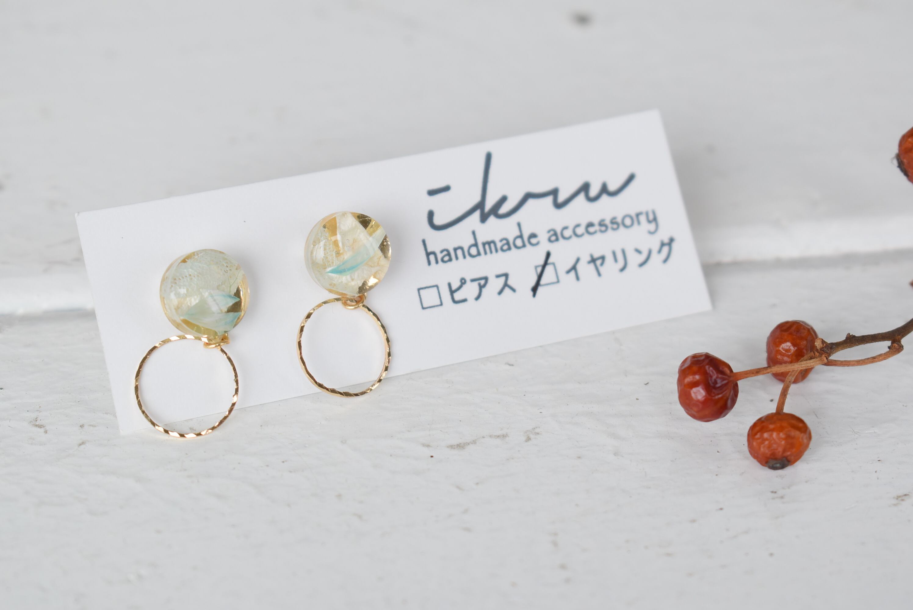 水色や白など爽やかな色合いのお花が入ったイヤリングです。 色々なお洋服に合わせやすいアクセサリーです。 コーディネートのポイントに最適です。【2117】 イヤリングはノンホール樹脂です。 ハンドメイド&素人による撮影のため、実物の色や大きさが異なる場合がございます。 その点をご了承下さい。