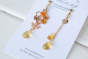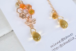 耳元ではちみつがきらっとして可愛いアクセサリーです。