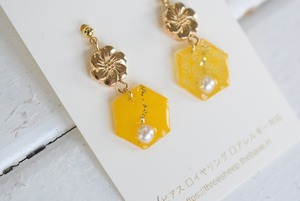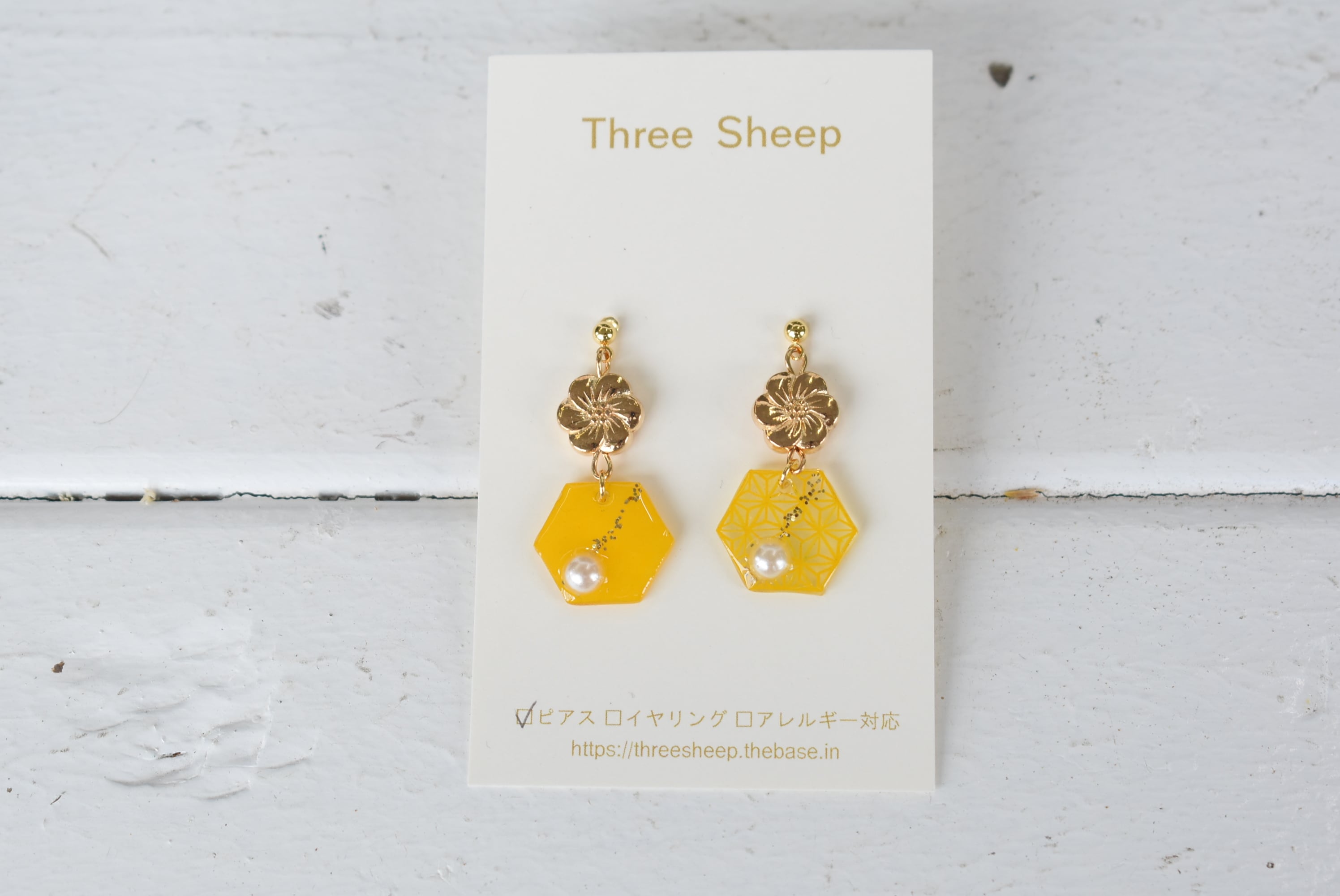 和のデザインが素敵なピアスです。 黄色が明るく耳元で映えます。【229】 イヤリング変更可能 ハンドメイド&素人による撮影のため、実物の色や大きさが異なる場合がございます。 その点をご了承下さい。 イヤリングご希望の方は、ご購入の際に必ずご連絡を頂きますでしょうか。 イヤリングは金属タイプと樹脂タイプがございます。