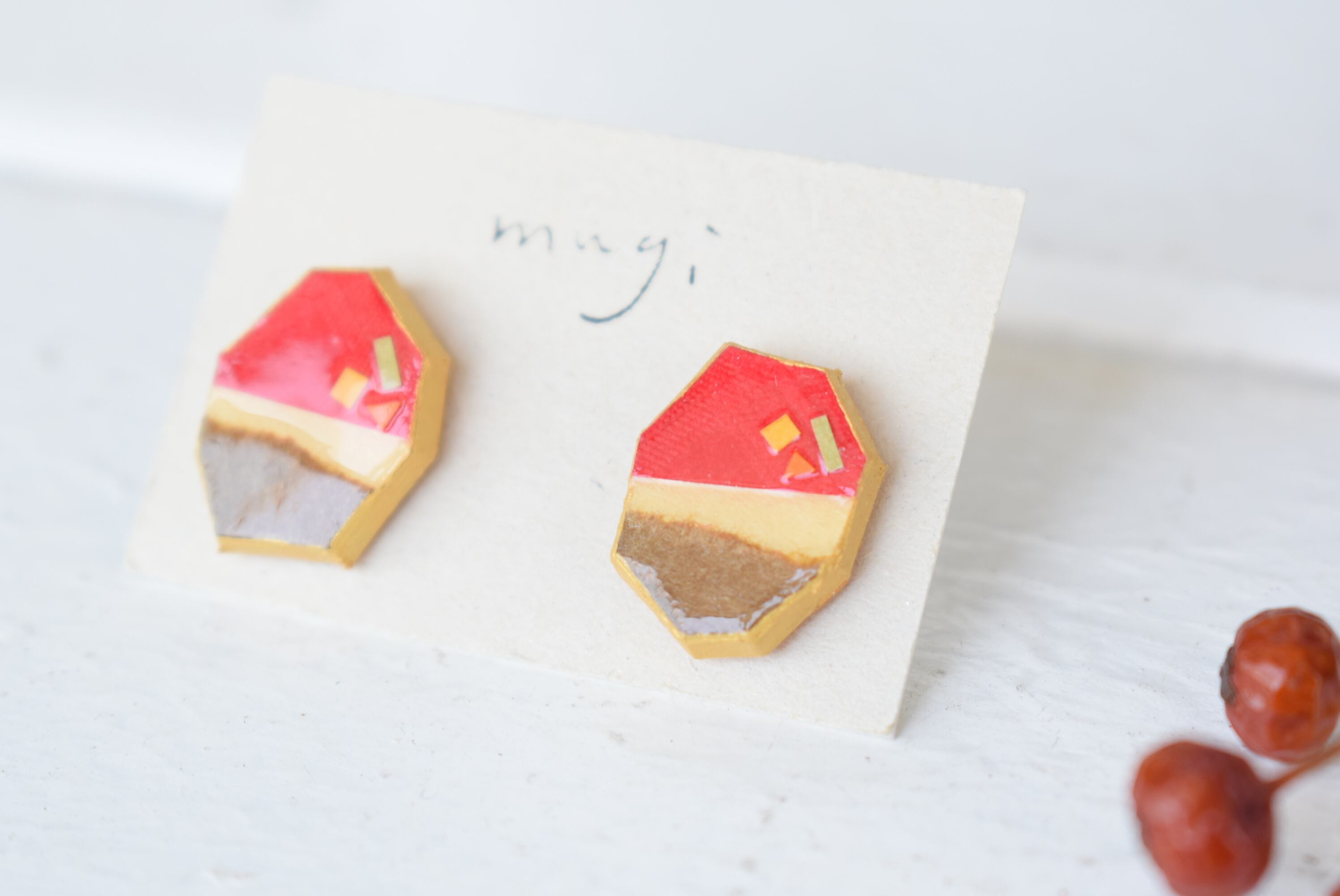 赤がアクセントになった優しい雰囲気漂うピアスです。