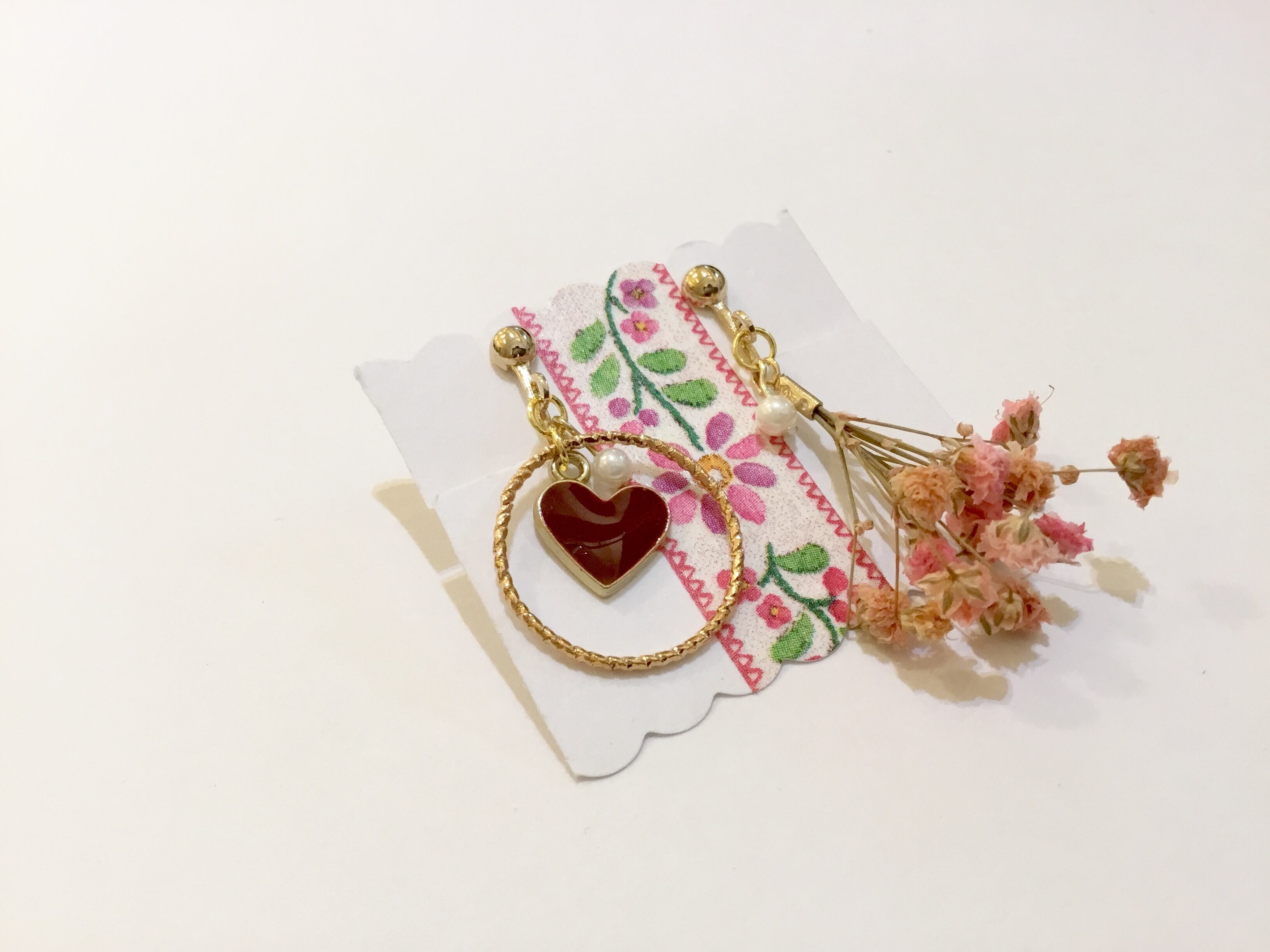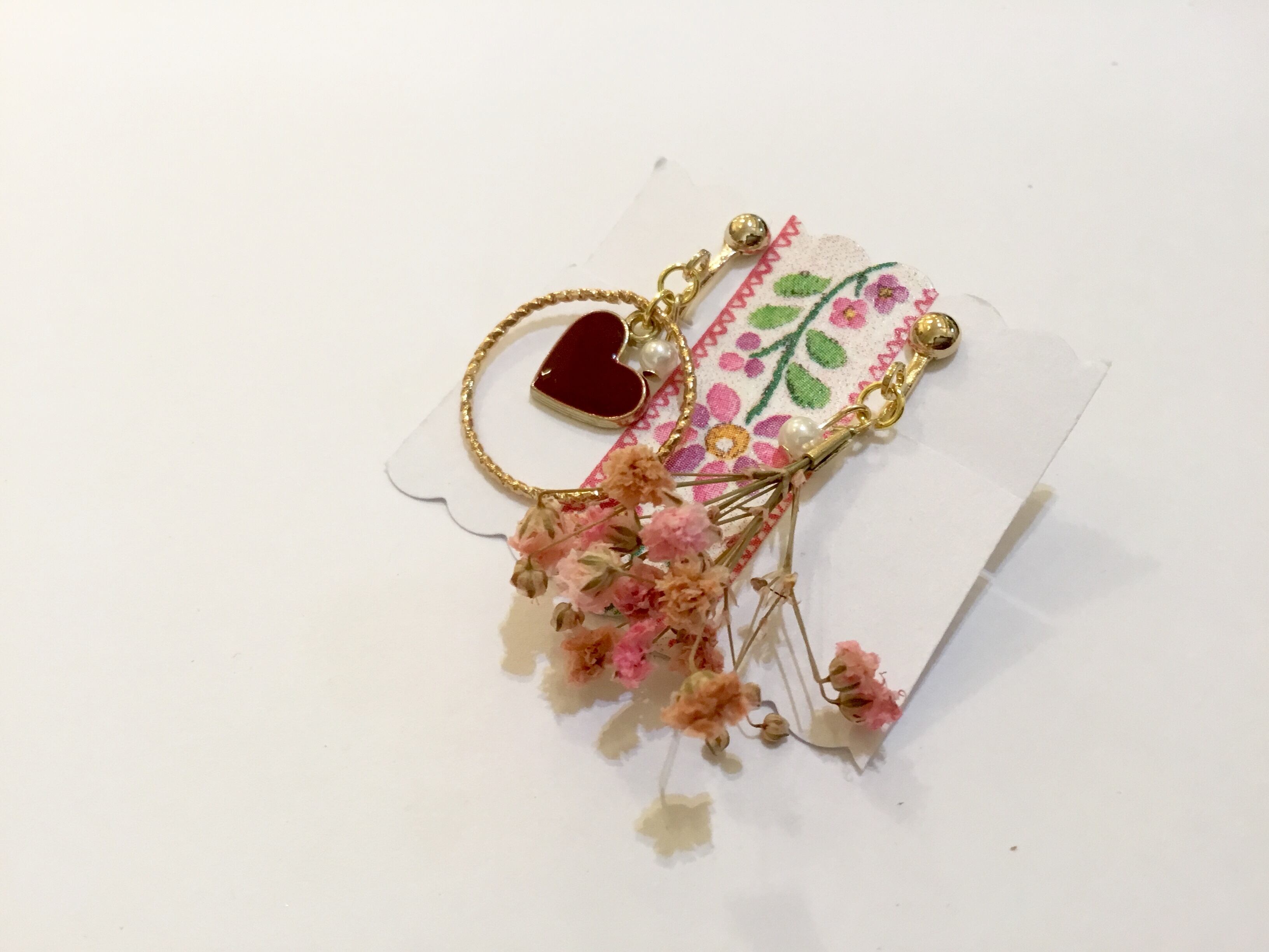 アトリエSATOさんのかすみ草とハートのアクセサリーデザインのイヤリングです。