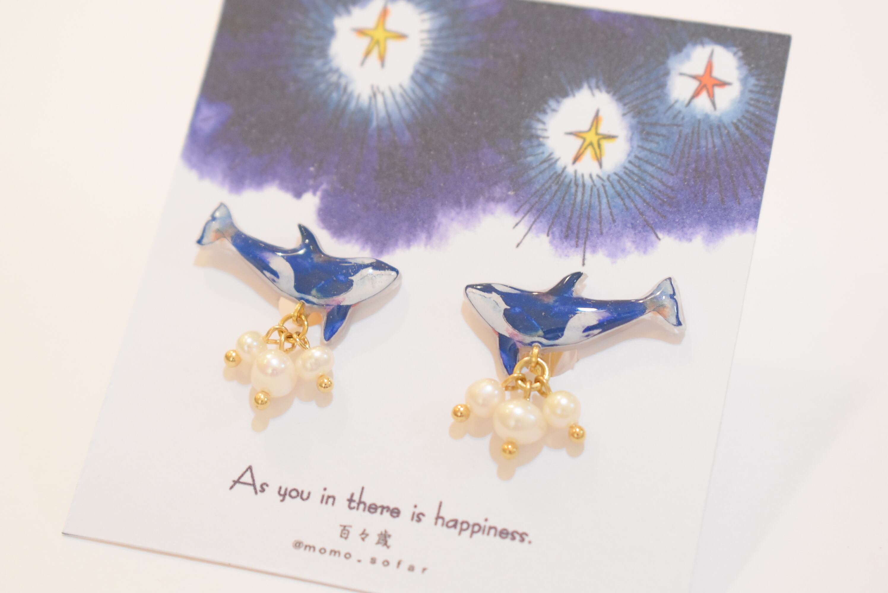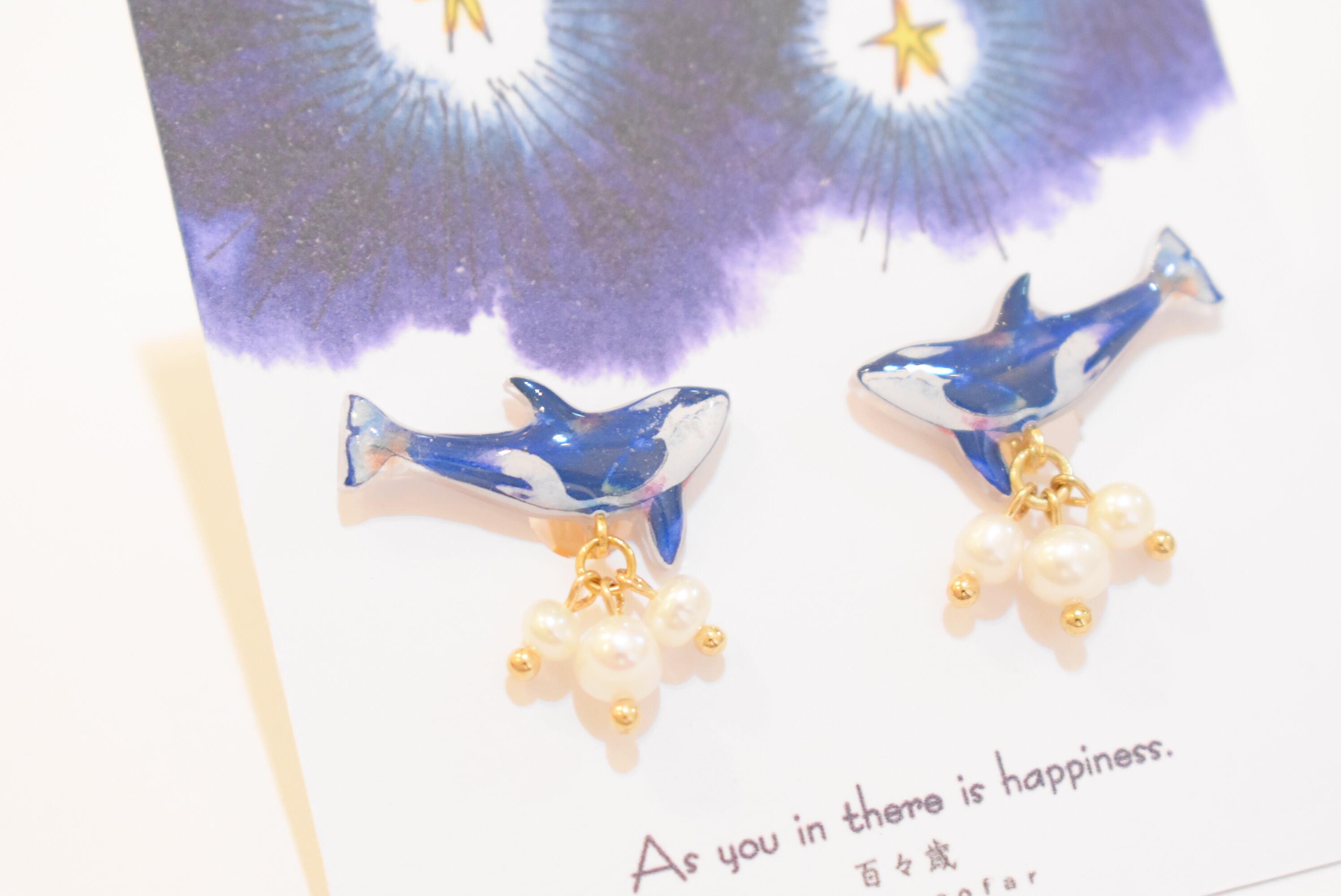 小ぶりなシャチが可愛らしくとても美しいです。 パールがゆらゆらと揺れポイントになります。 クリップ式イヤリング R265