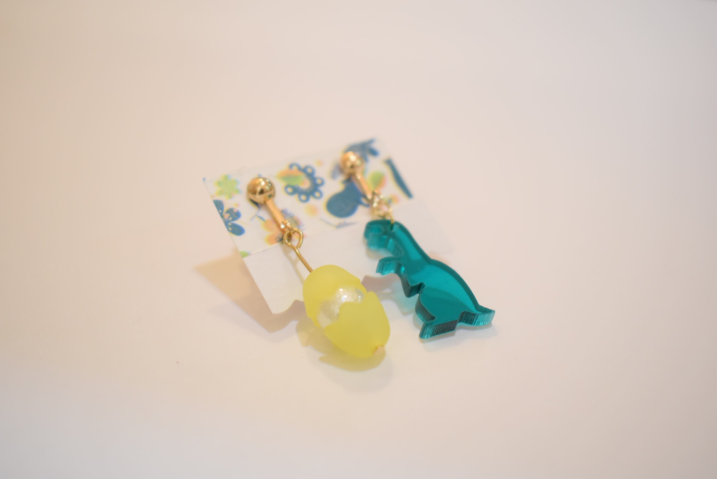 【ピアスに変更可能】アトリエSATO/恐竜と卵