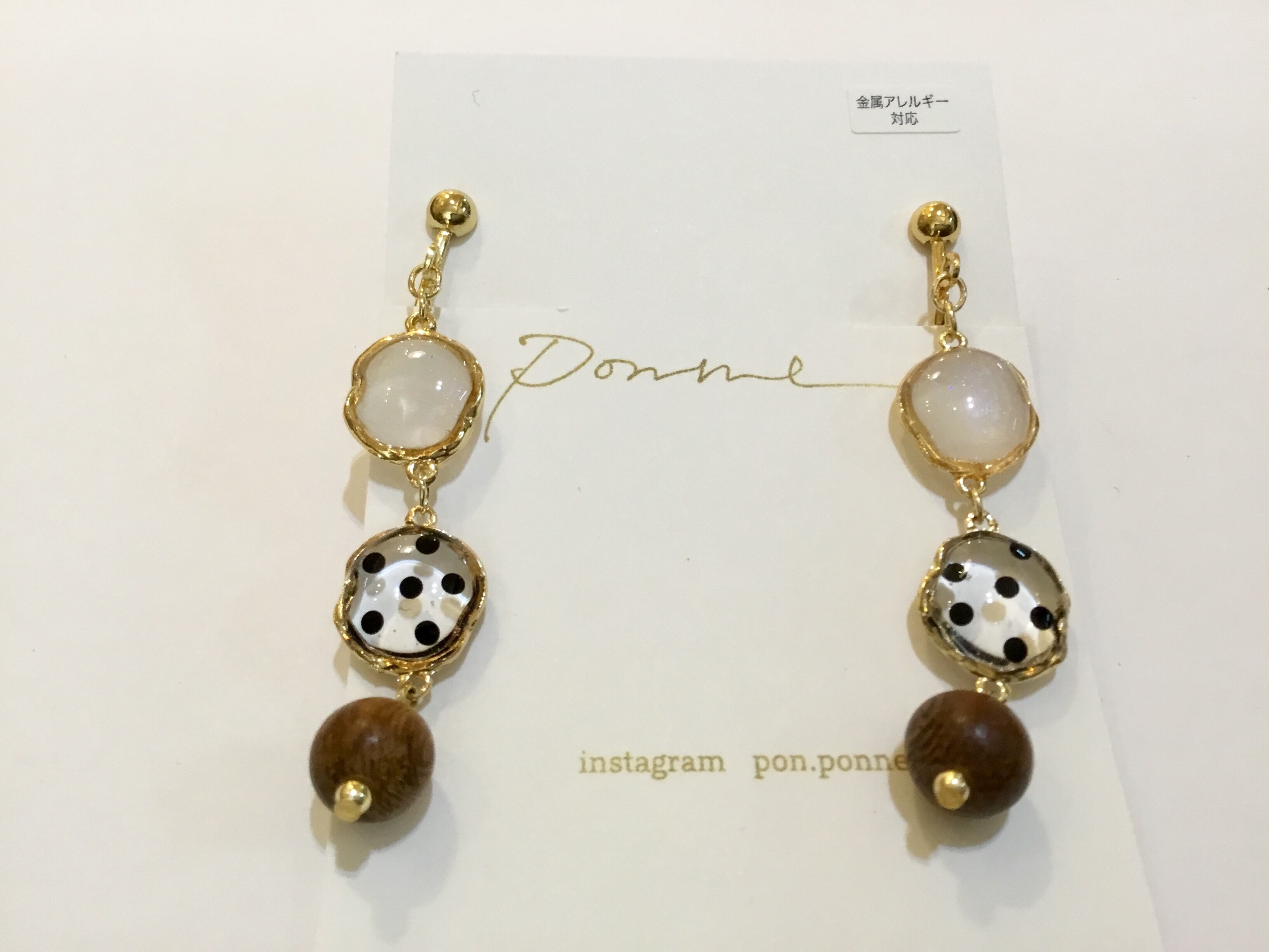 【ピアス変更可能】ponne つぶつぶ3連イヤリング
