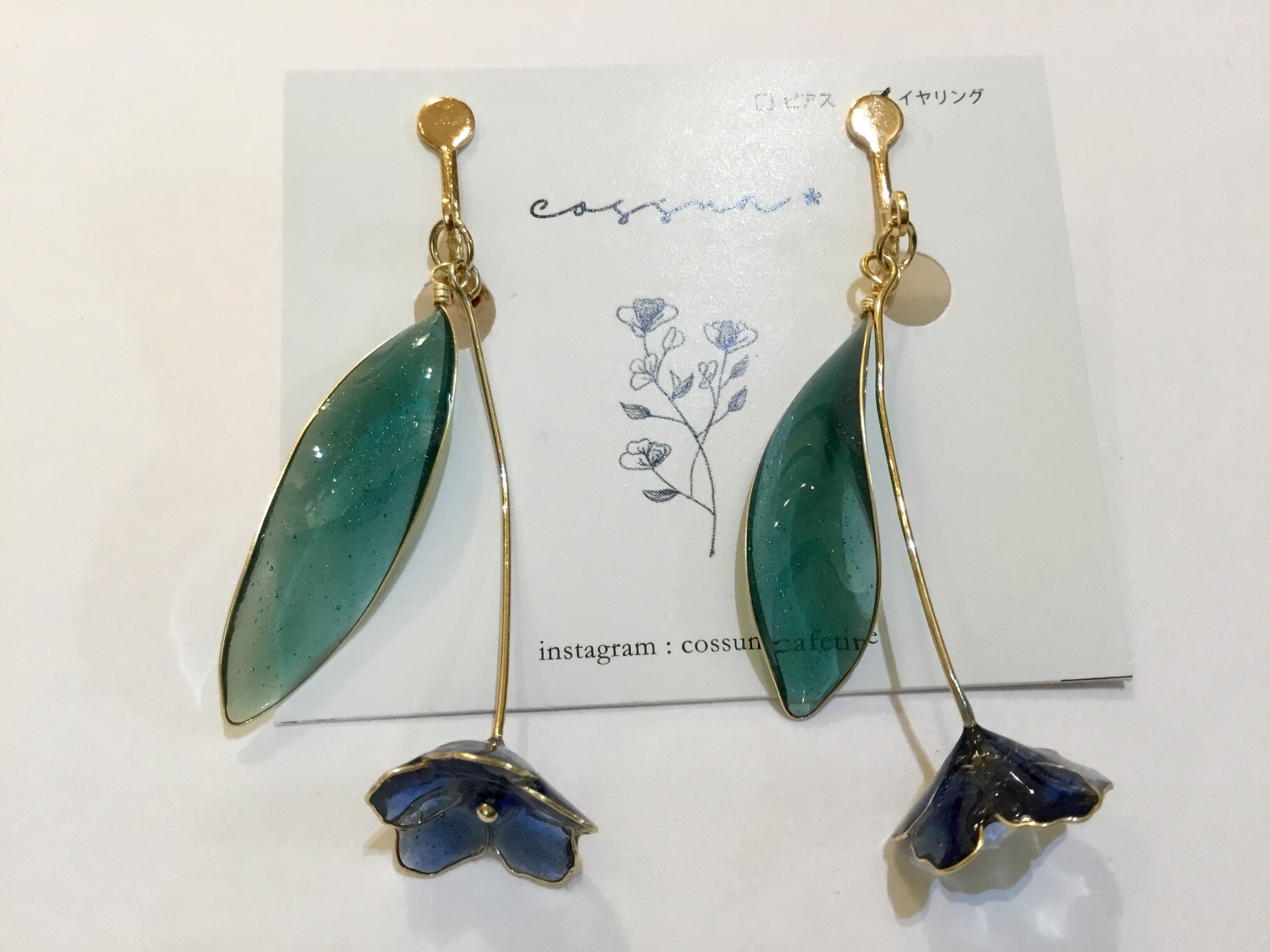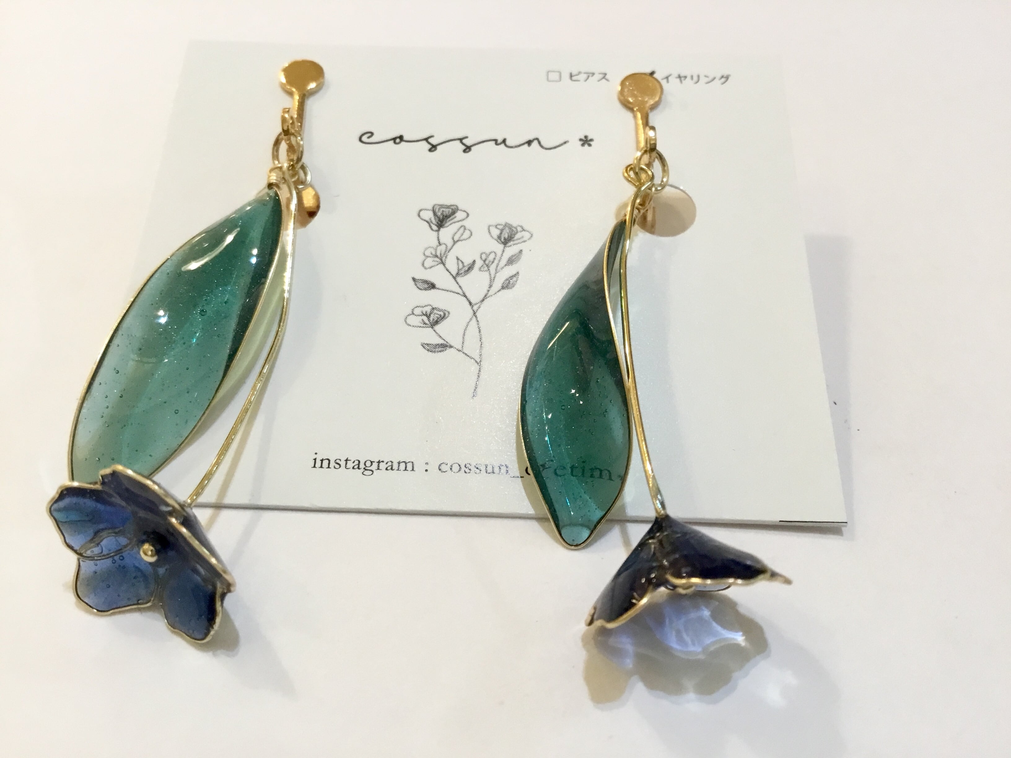 【ピアス変更可能】cossun* 1輪花イヤリング ブルー