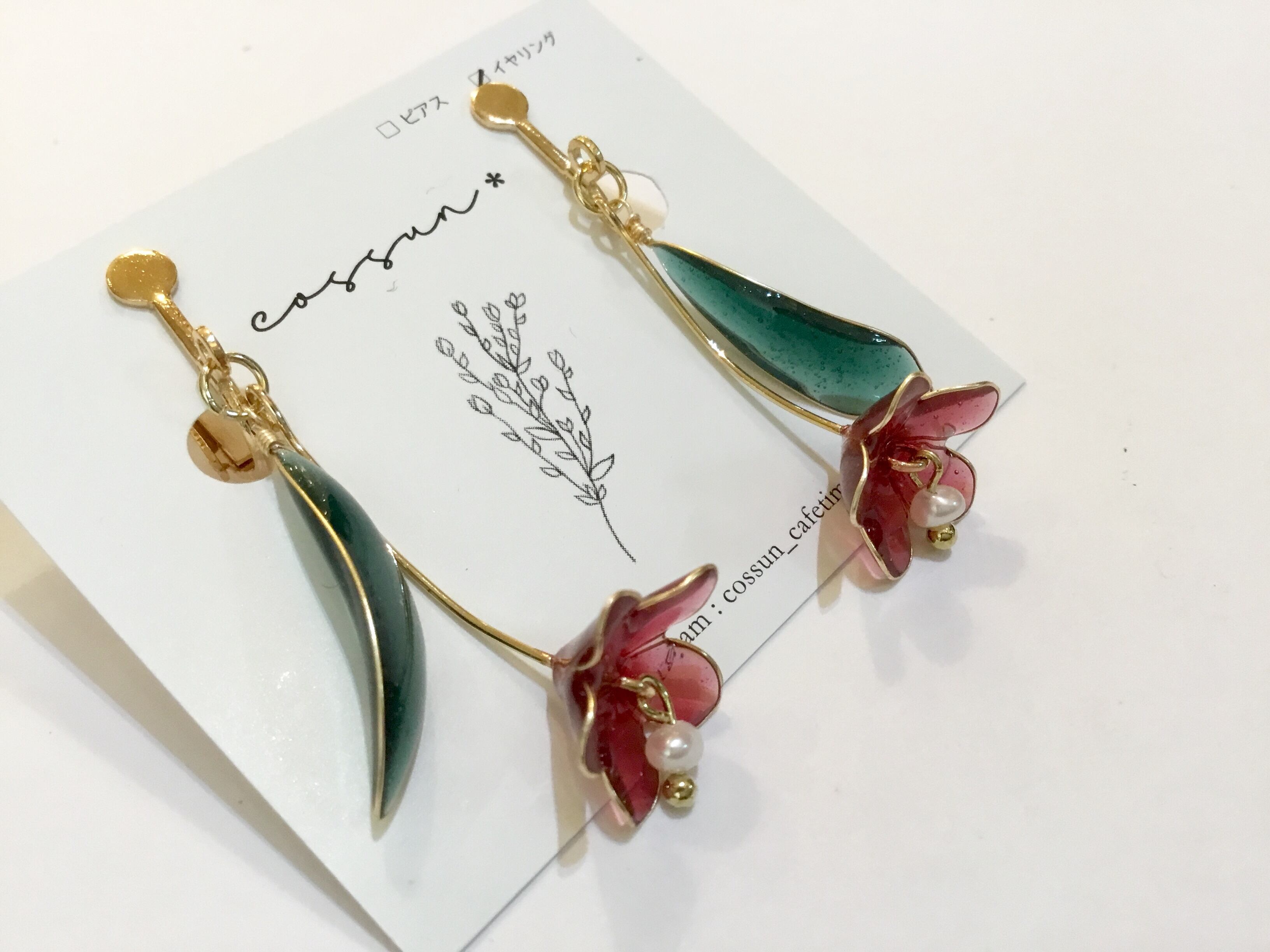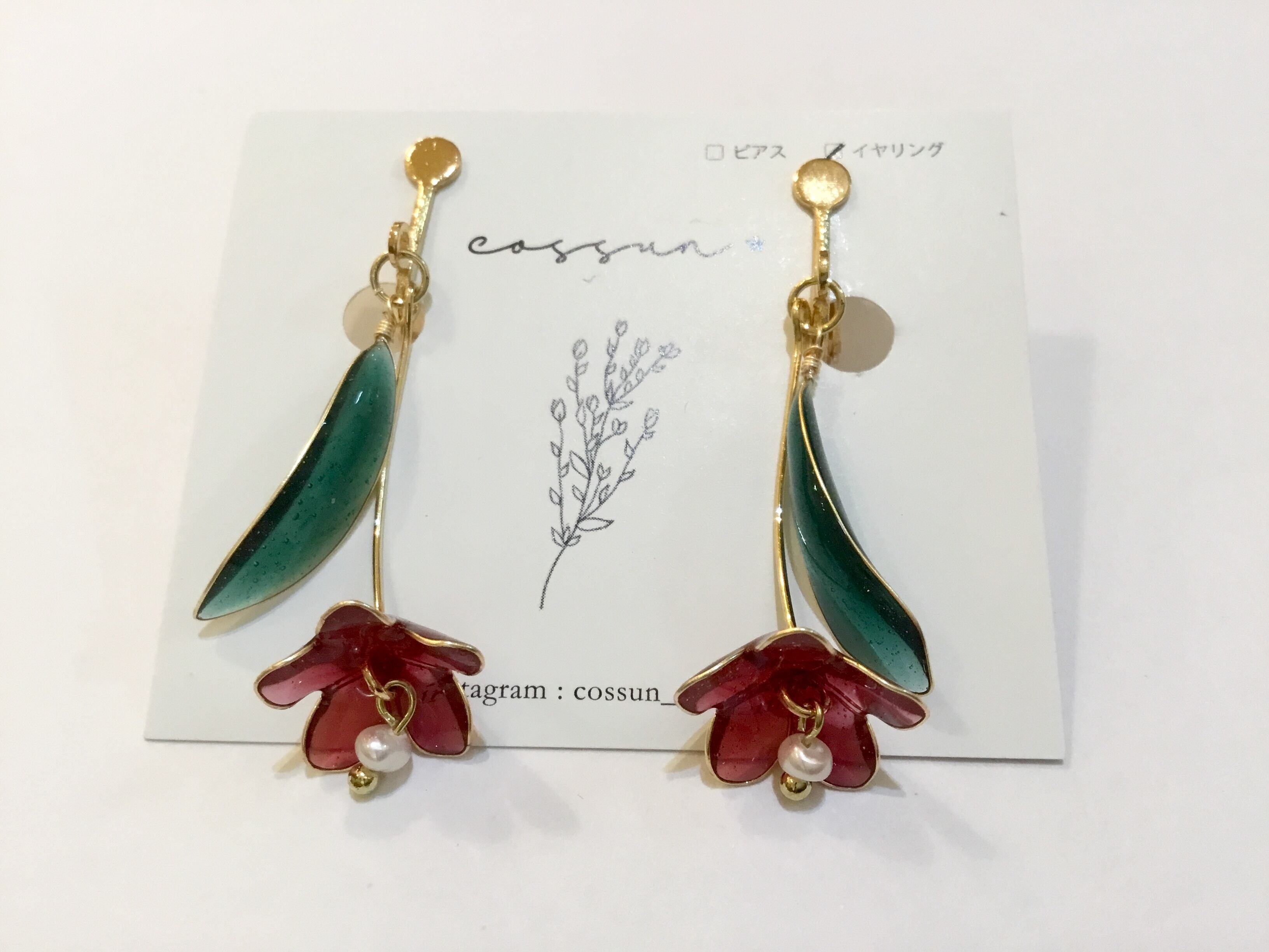 【ピアス変更可能】cossun* 1輪花イヤリング レッド