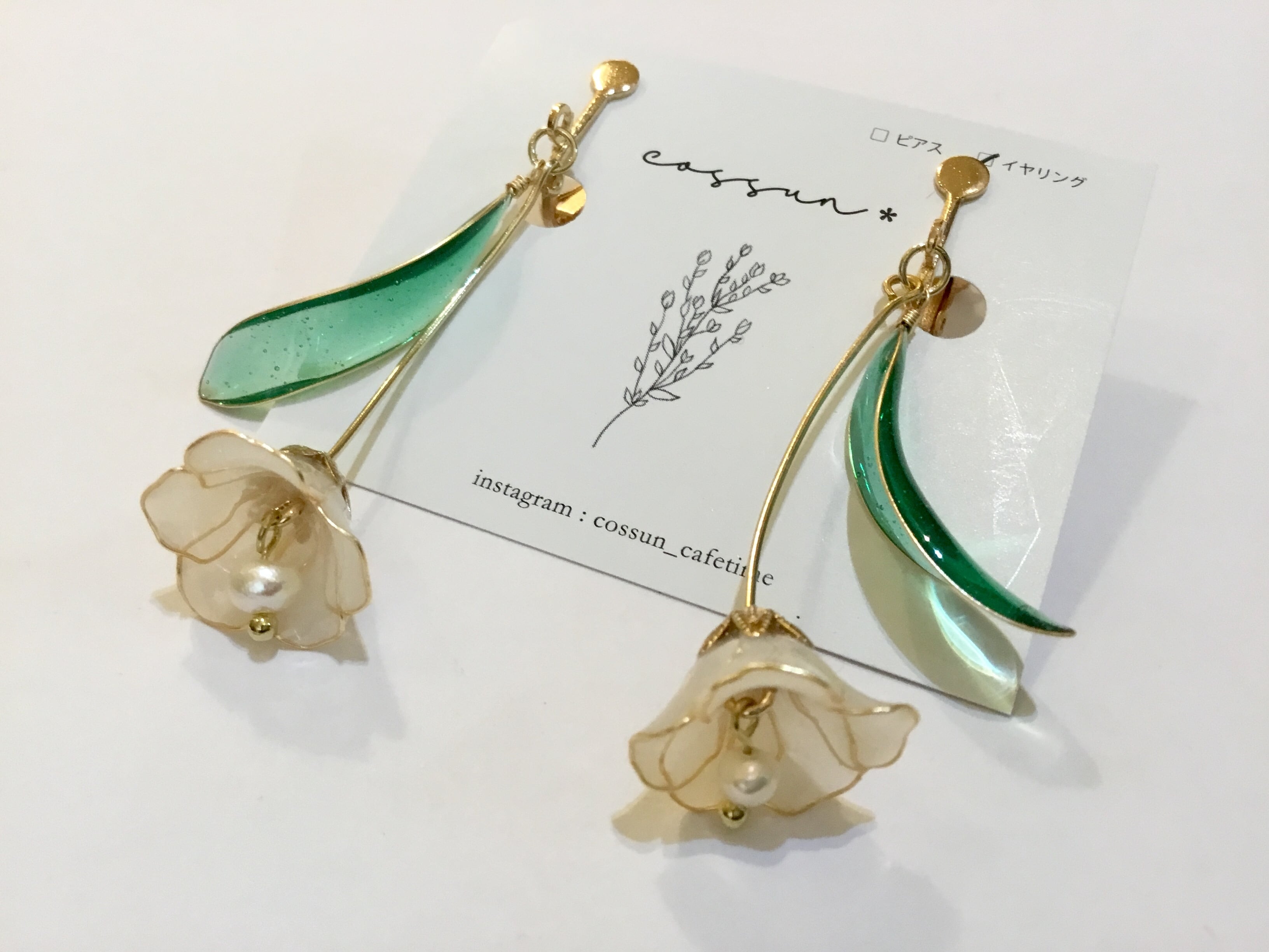 【ピアス変更可能】cossun* 1輪花イヤリング オフホワイト