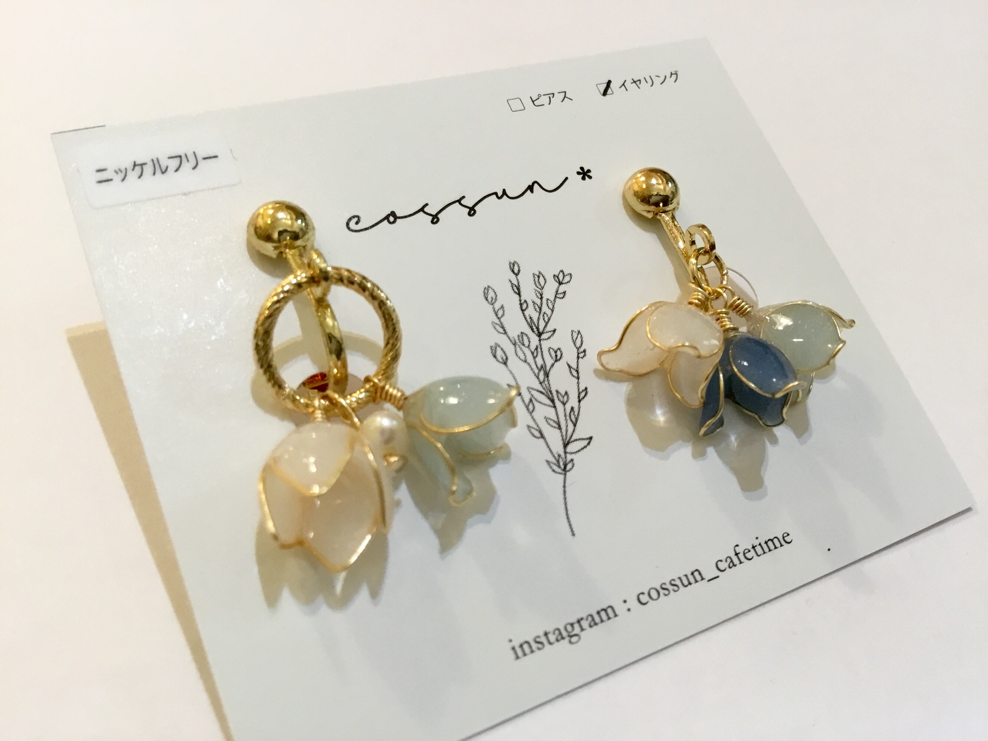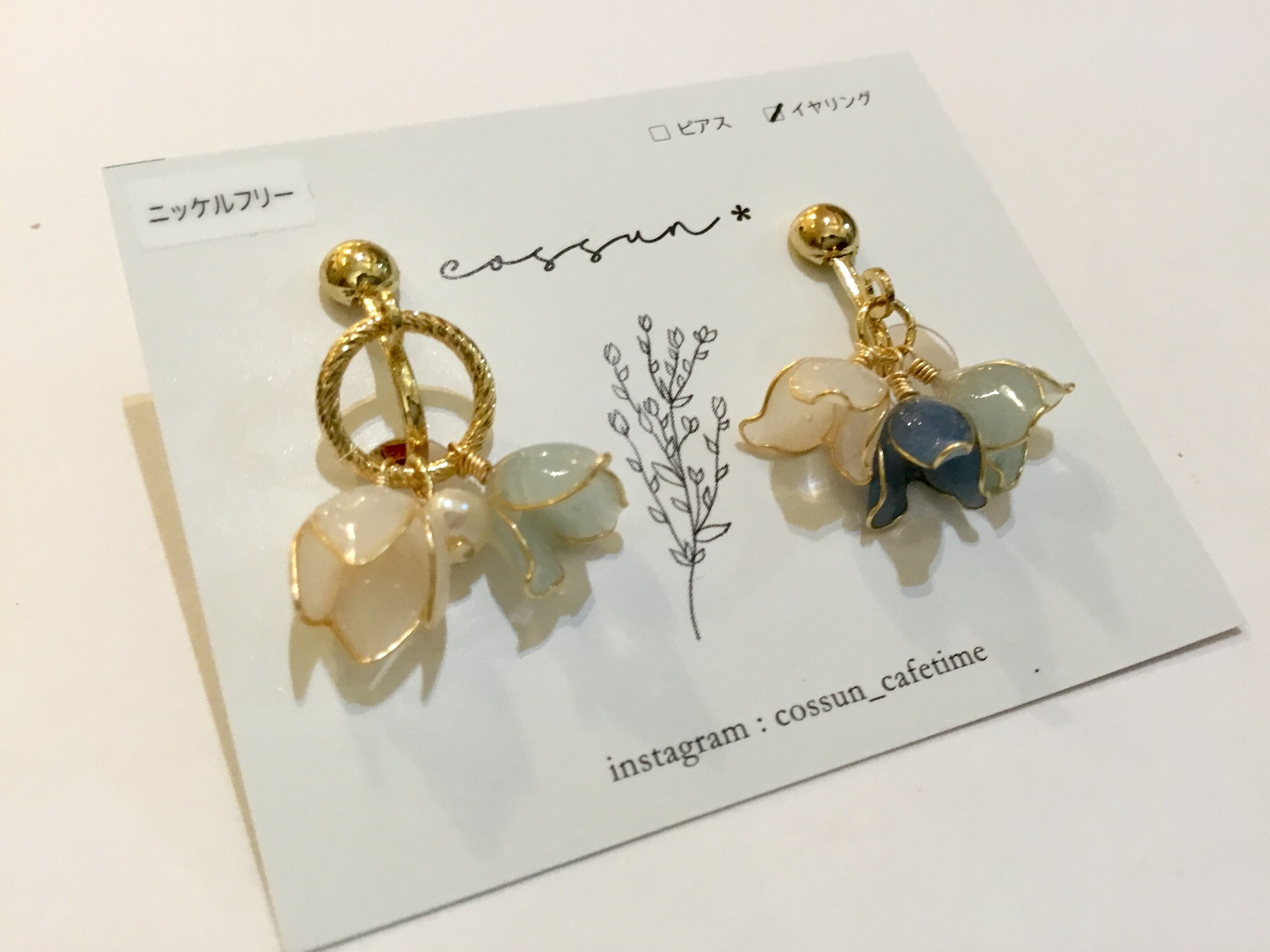 【ピアス変更可能】cossun* ブーケイヤリング ブルー