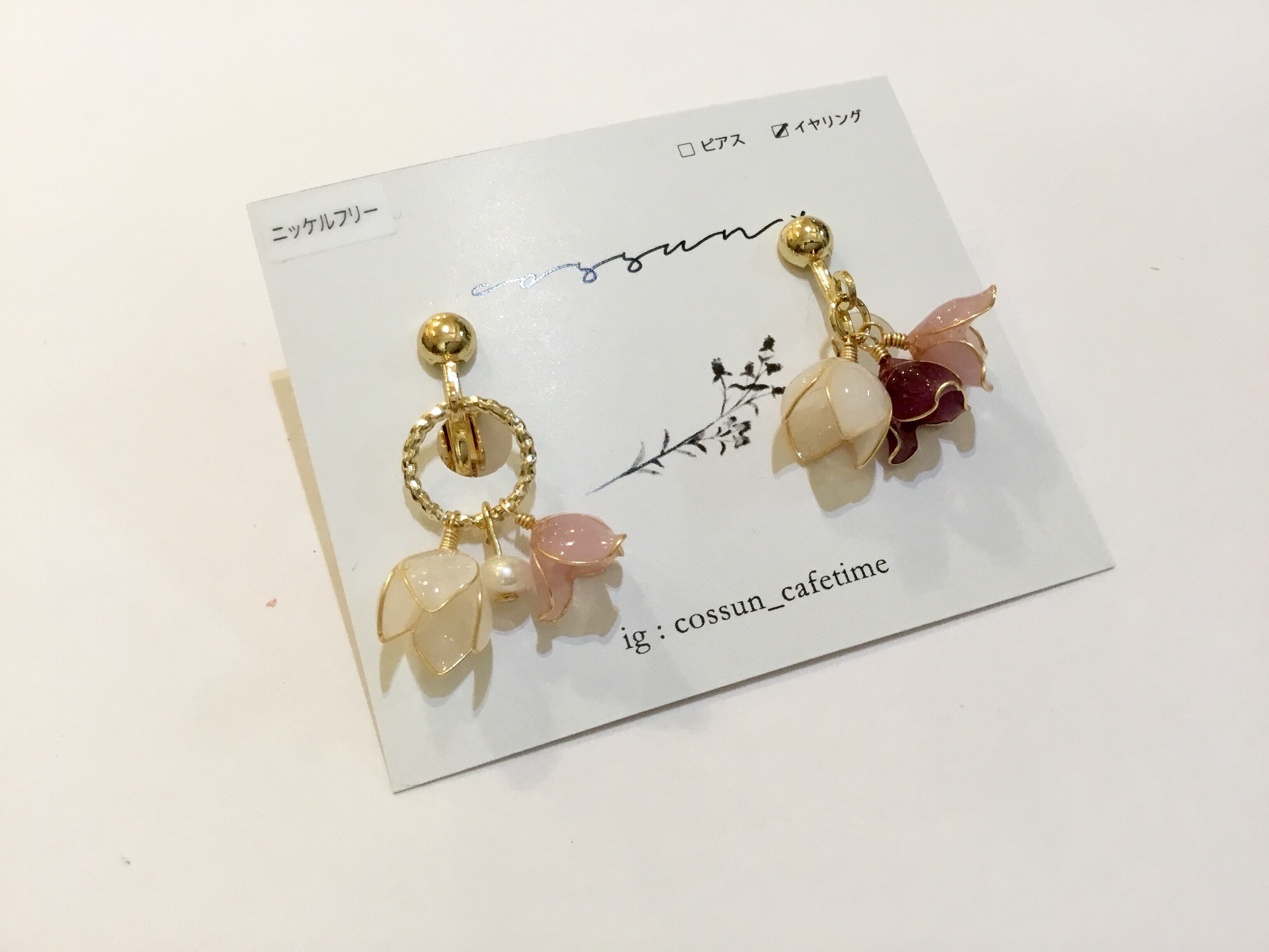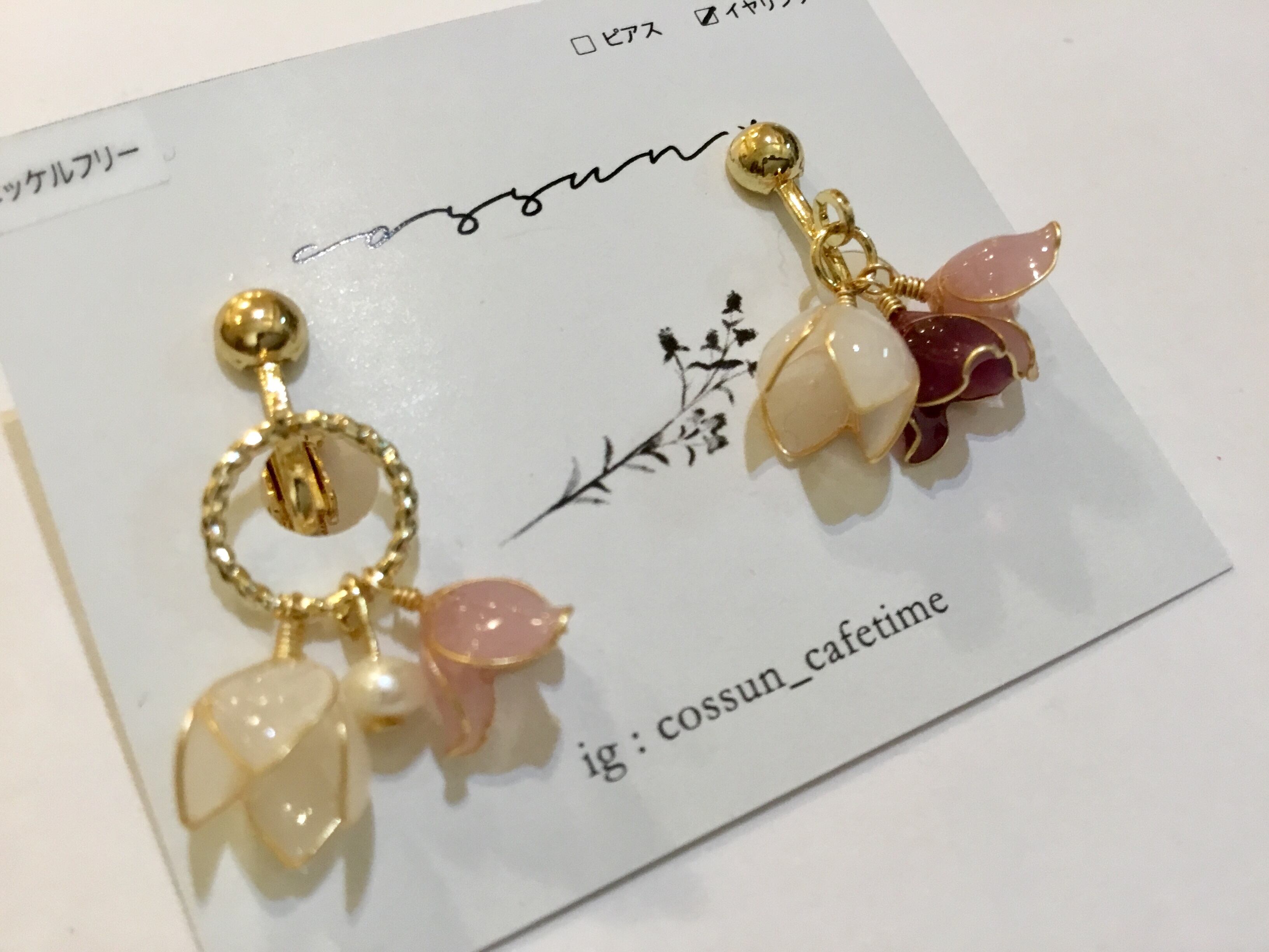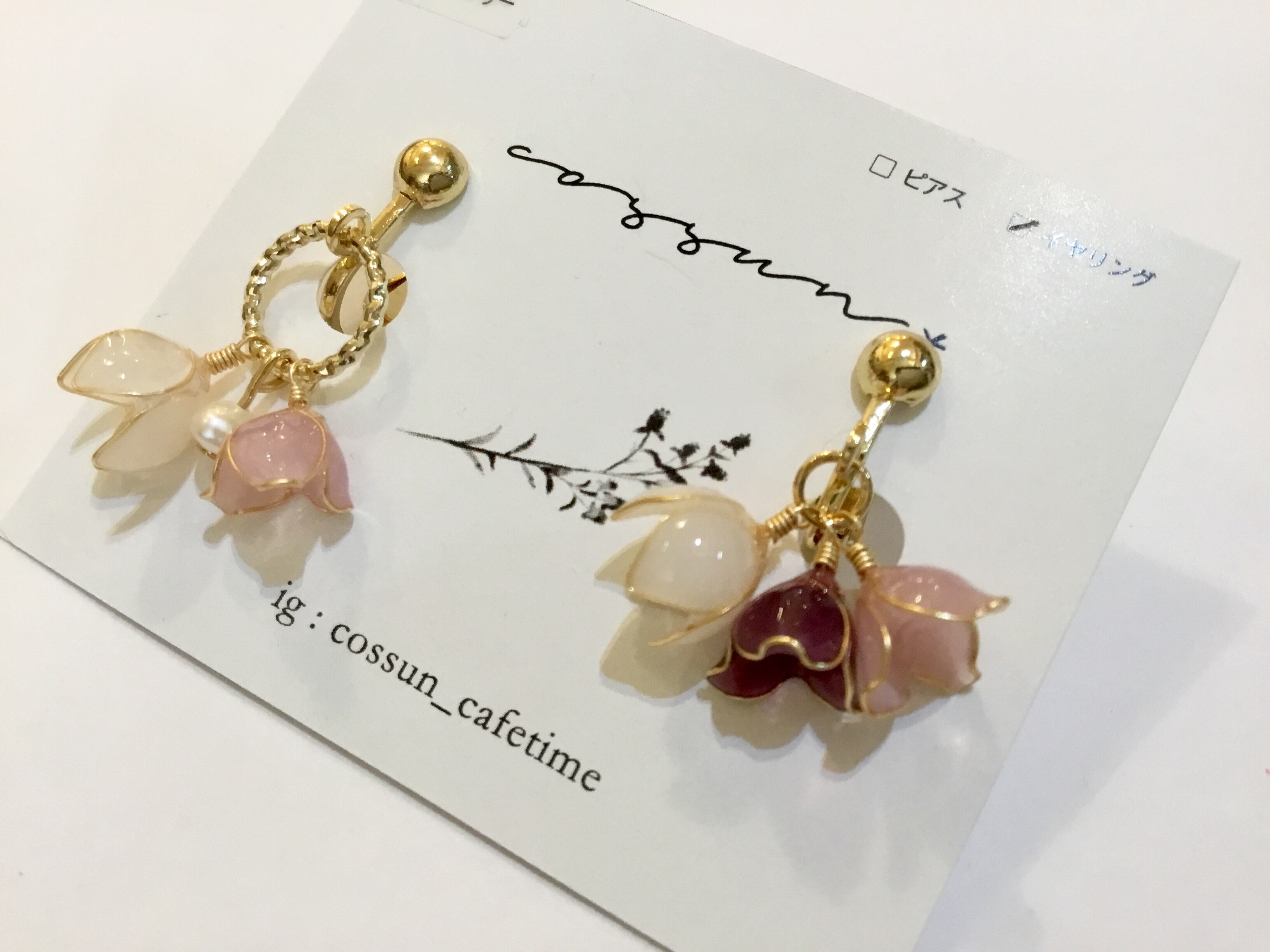 【ピアス変更可能】cossun* ブーケイヤリング ピンク