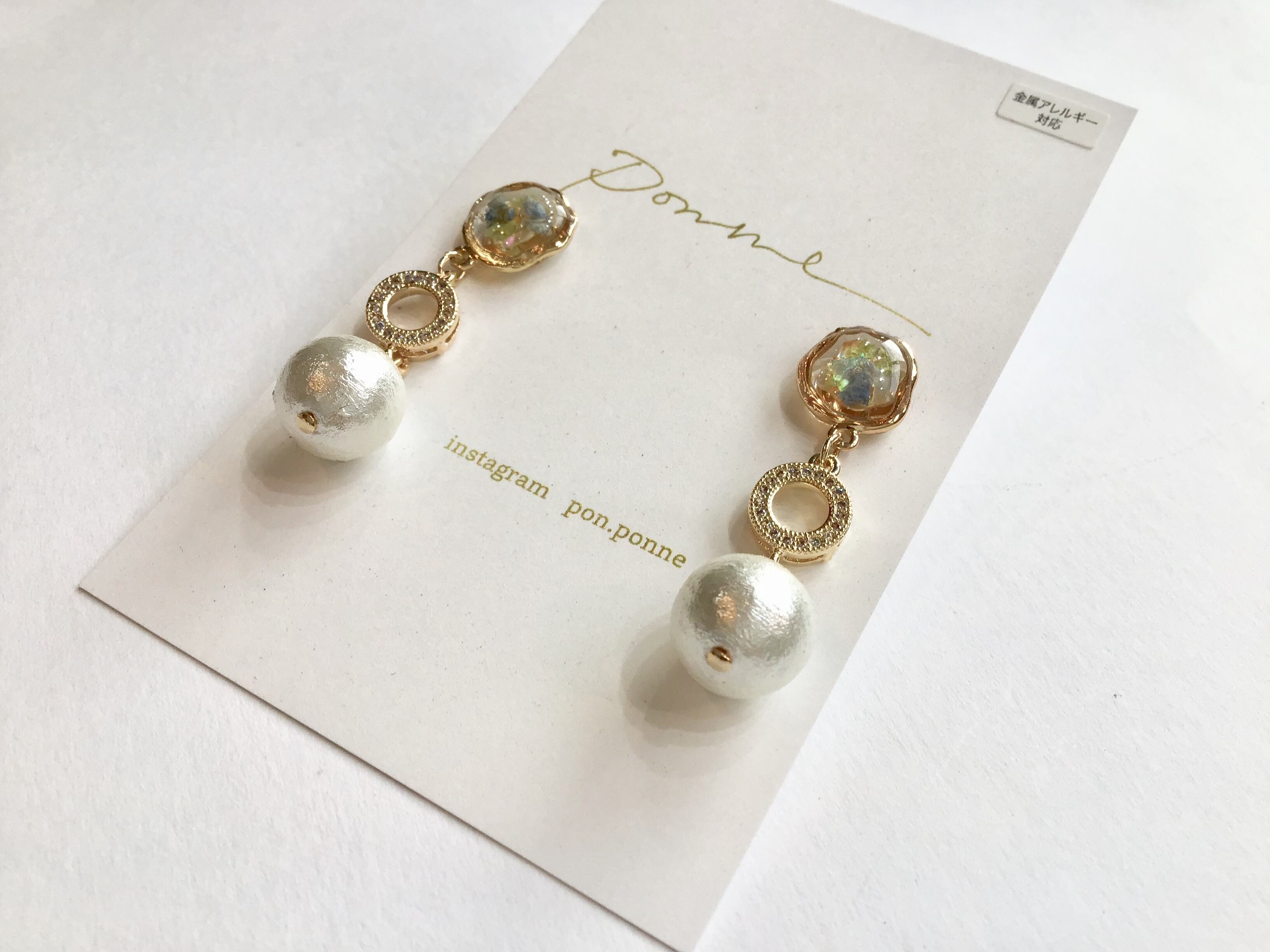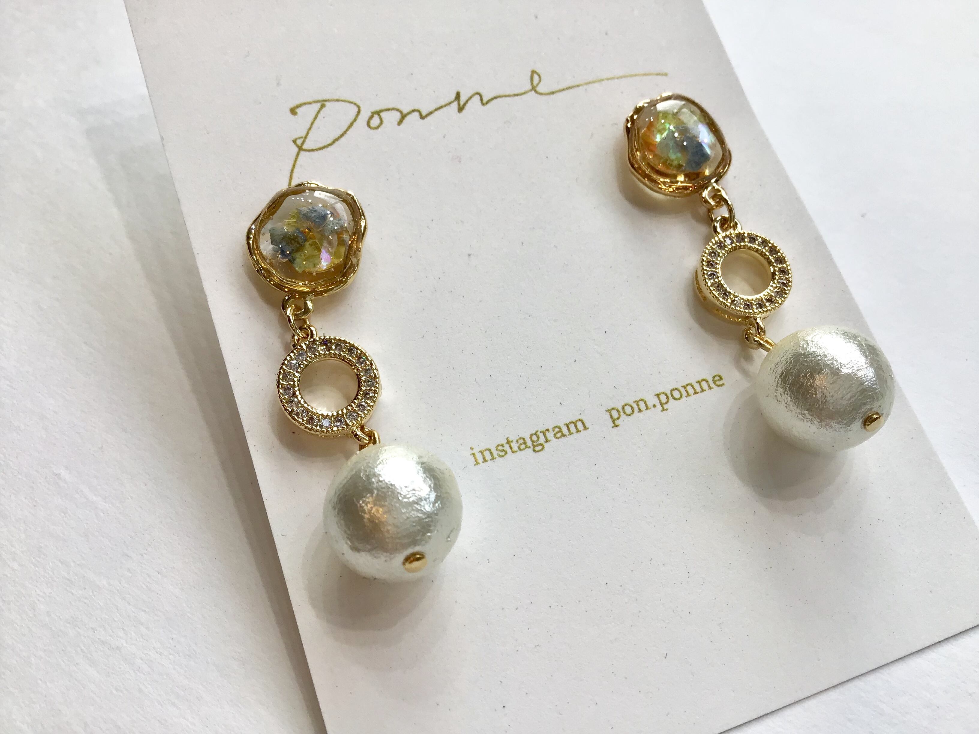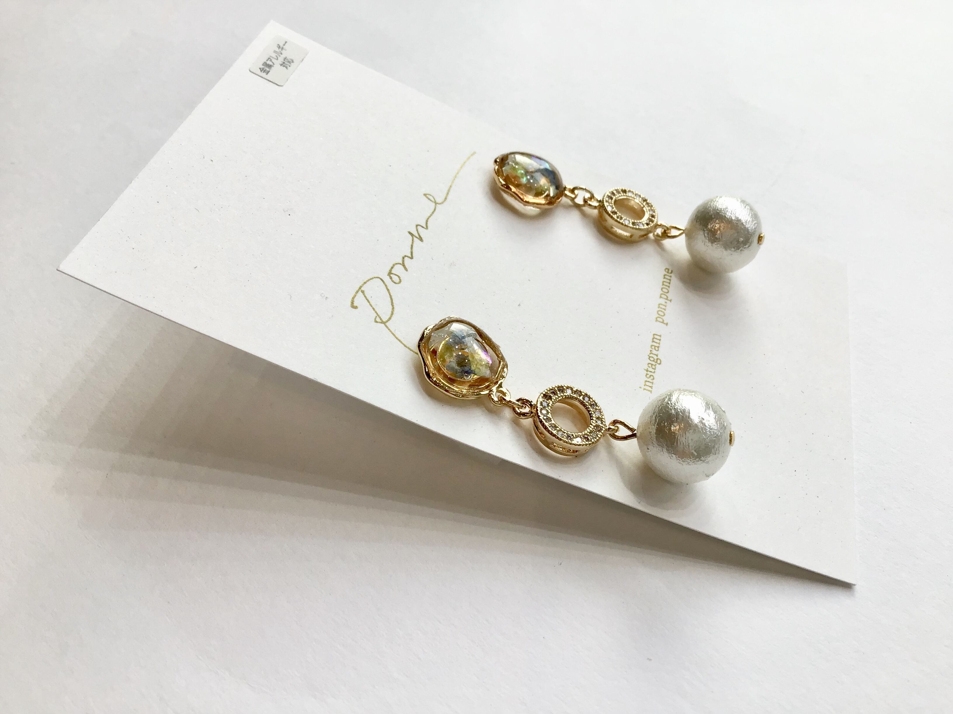 3連のパーツが美しく、大人っぽくデザインのピアスです。