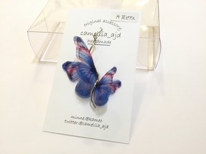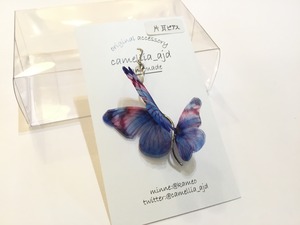 鮮やかな青色の蝶々がふわふわと耳元で揺れとても素敵です。