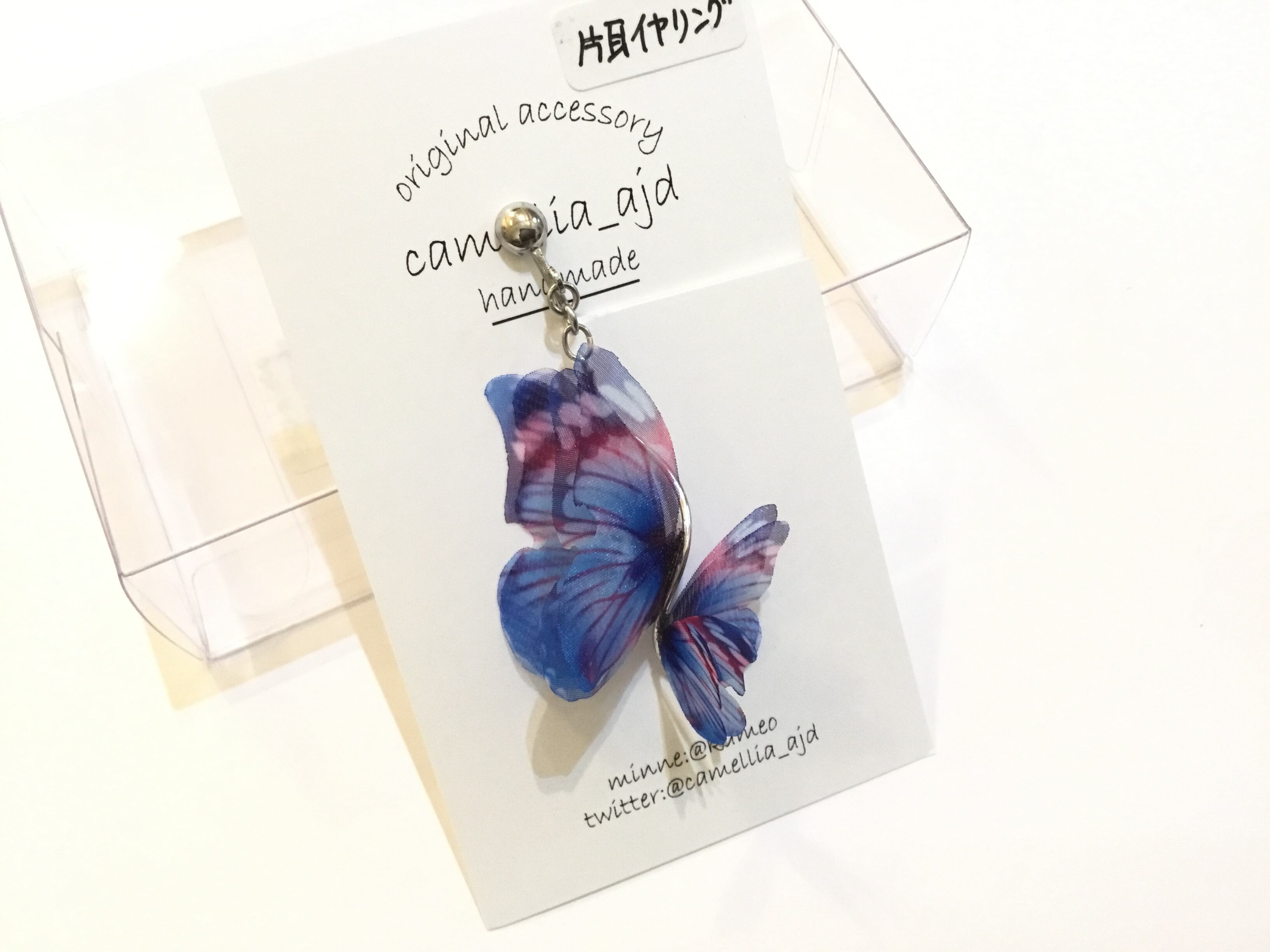 【ピアス変更可能】camellia_ajd 蝶々片耳イヤリング