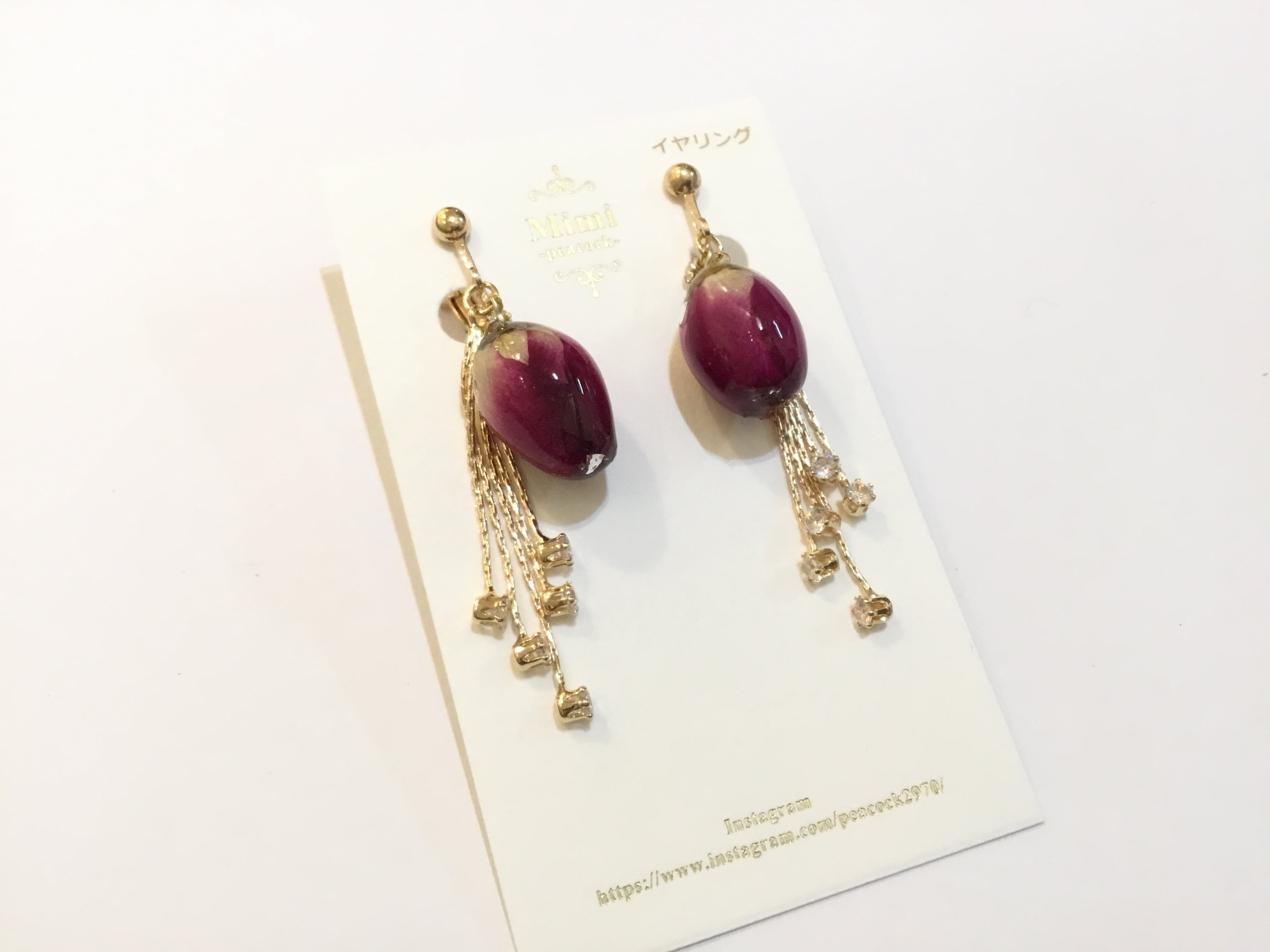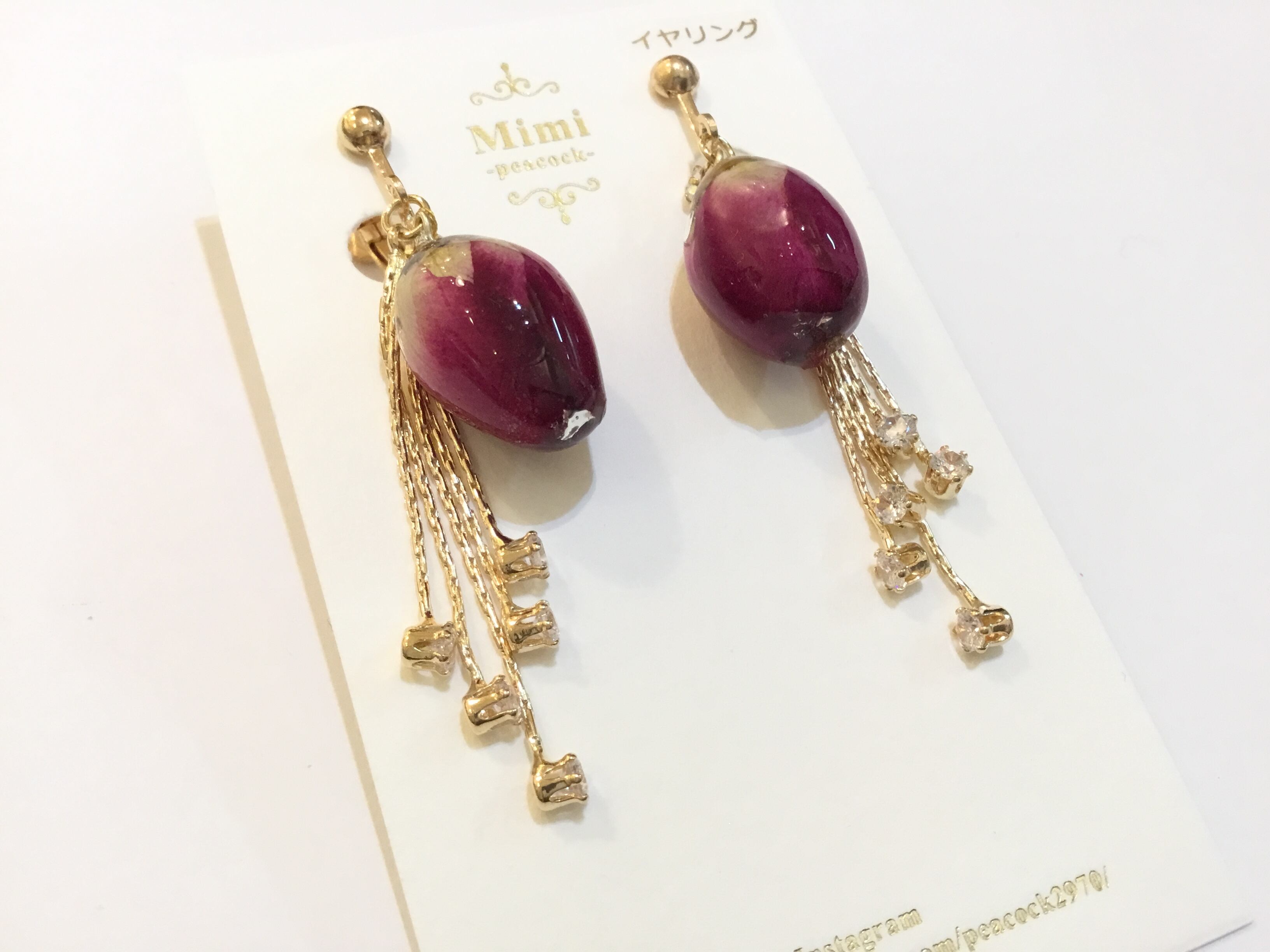 【ピアス変更可能】Mimi-peacock- バラのイヤリング