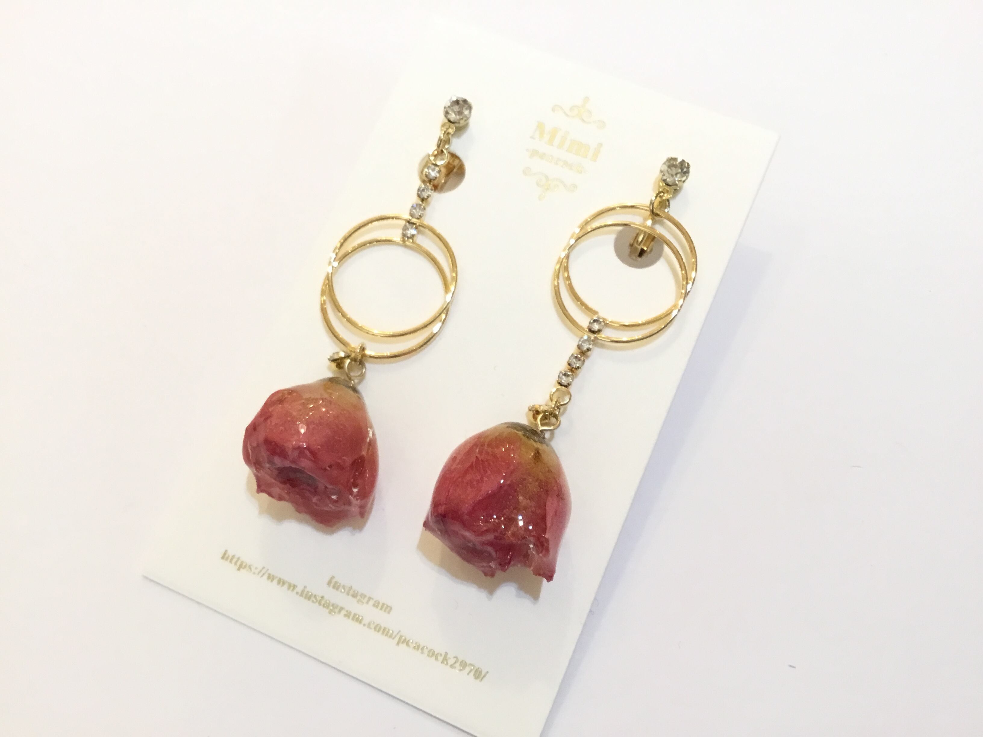 アシンメトリーなデザインがポイントになりとても素敵です。 バラが耳元で揺れて上品なアクセサリーです。 206-74