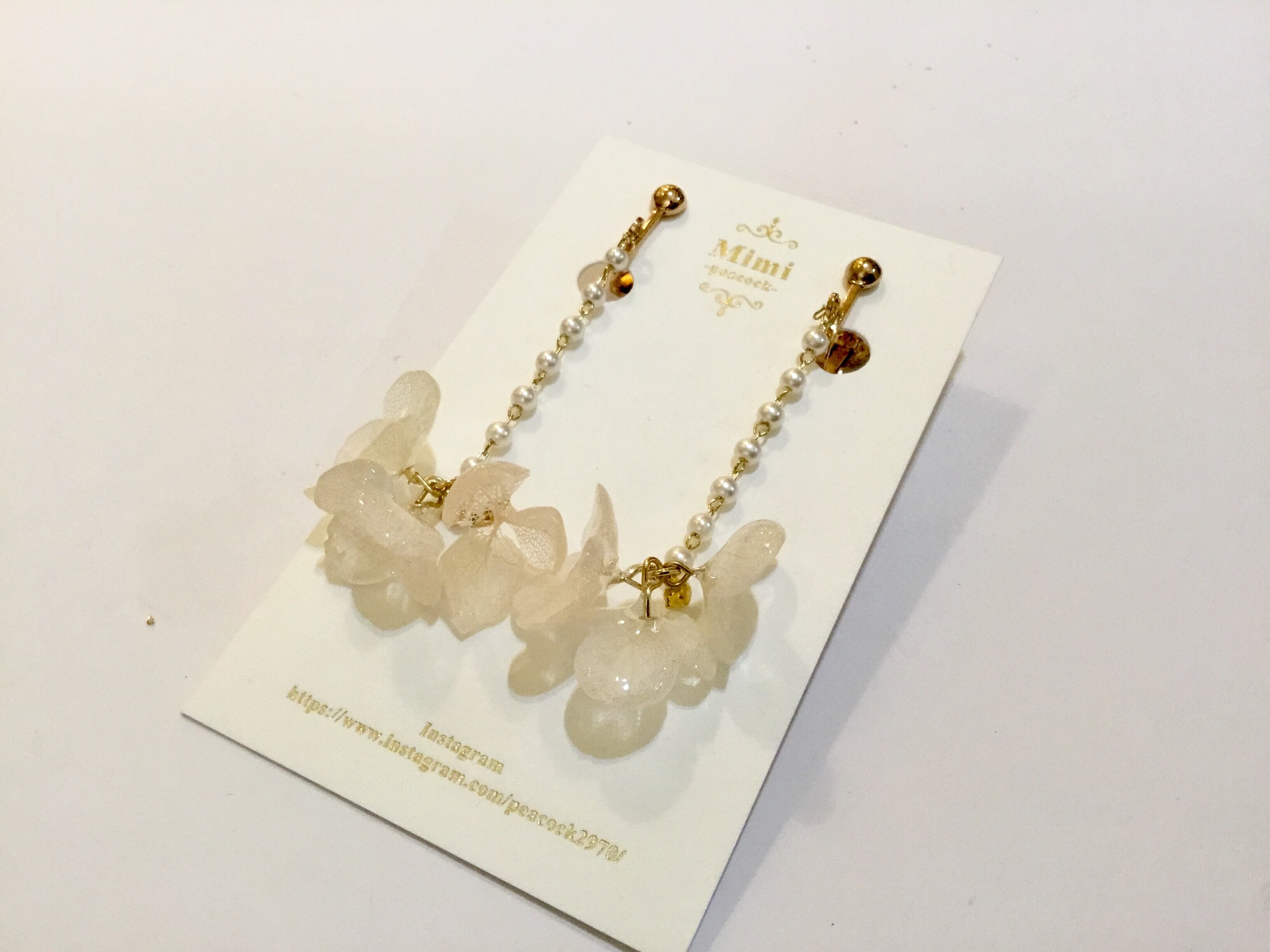 【ピアス変更可能】Mimi-peacock- パールあじさいイヤリング ホワイト