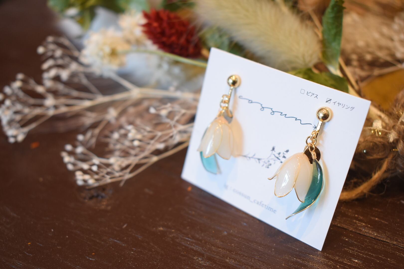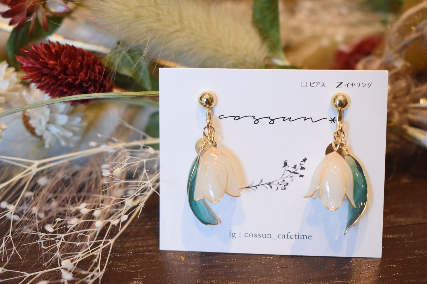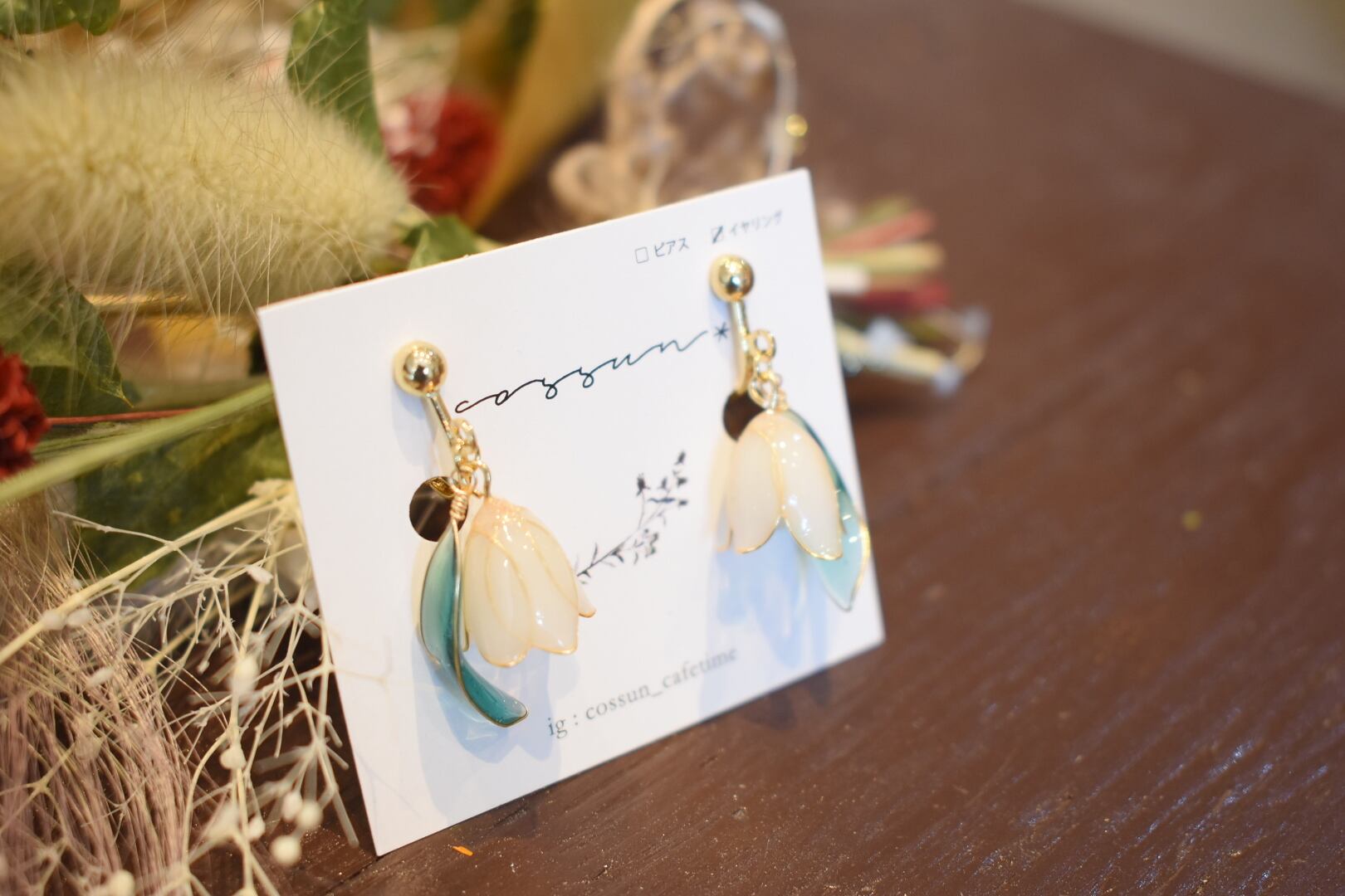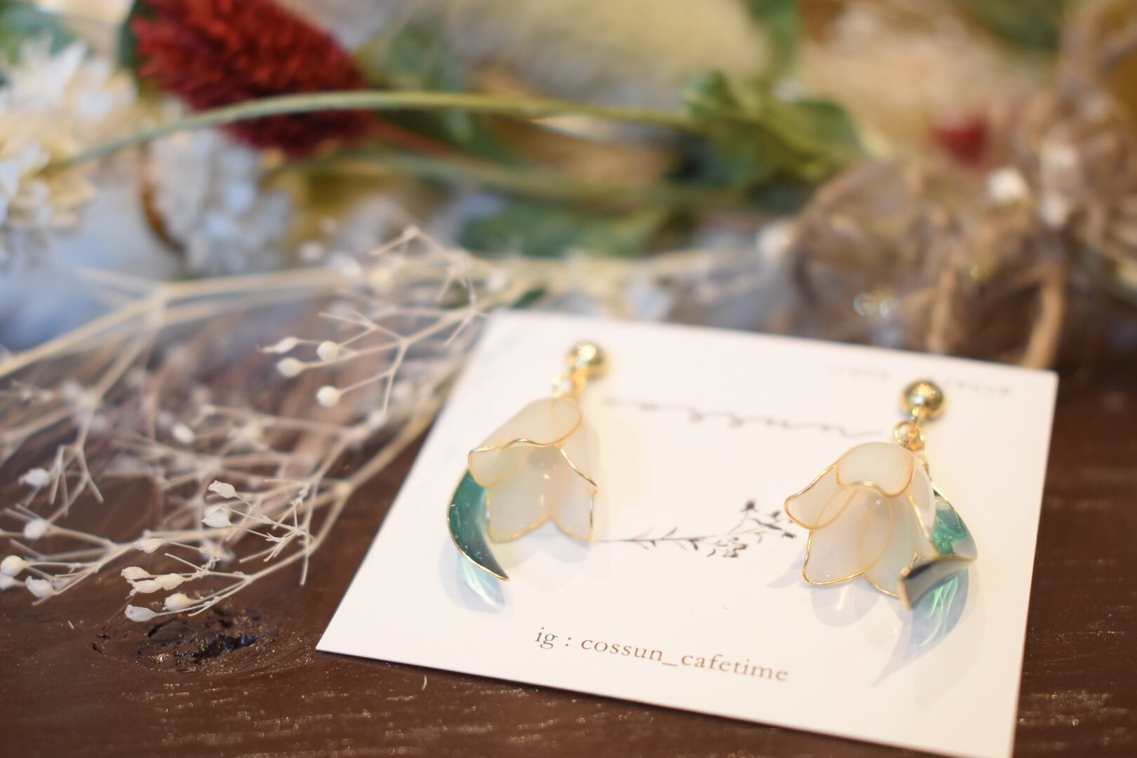 【ピアス変更可能】cossun*/白いお花のイヤリング