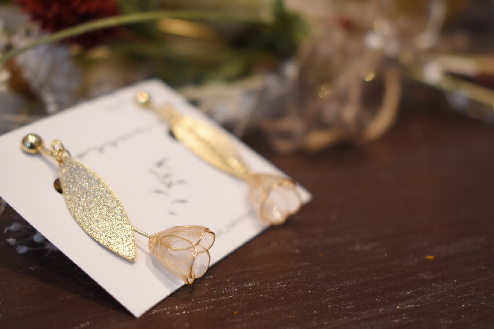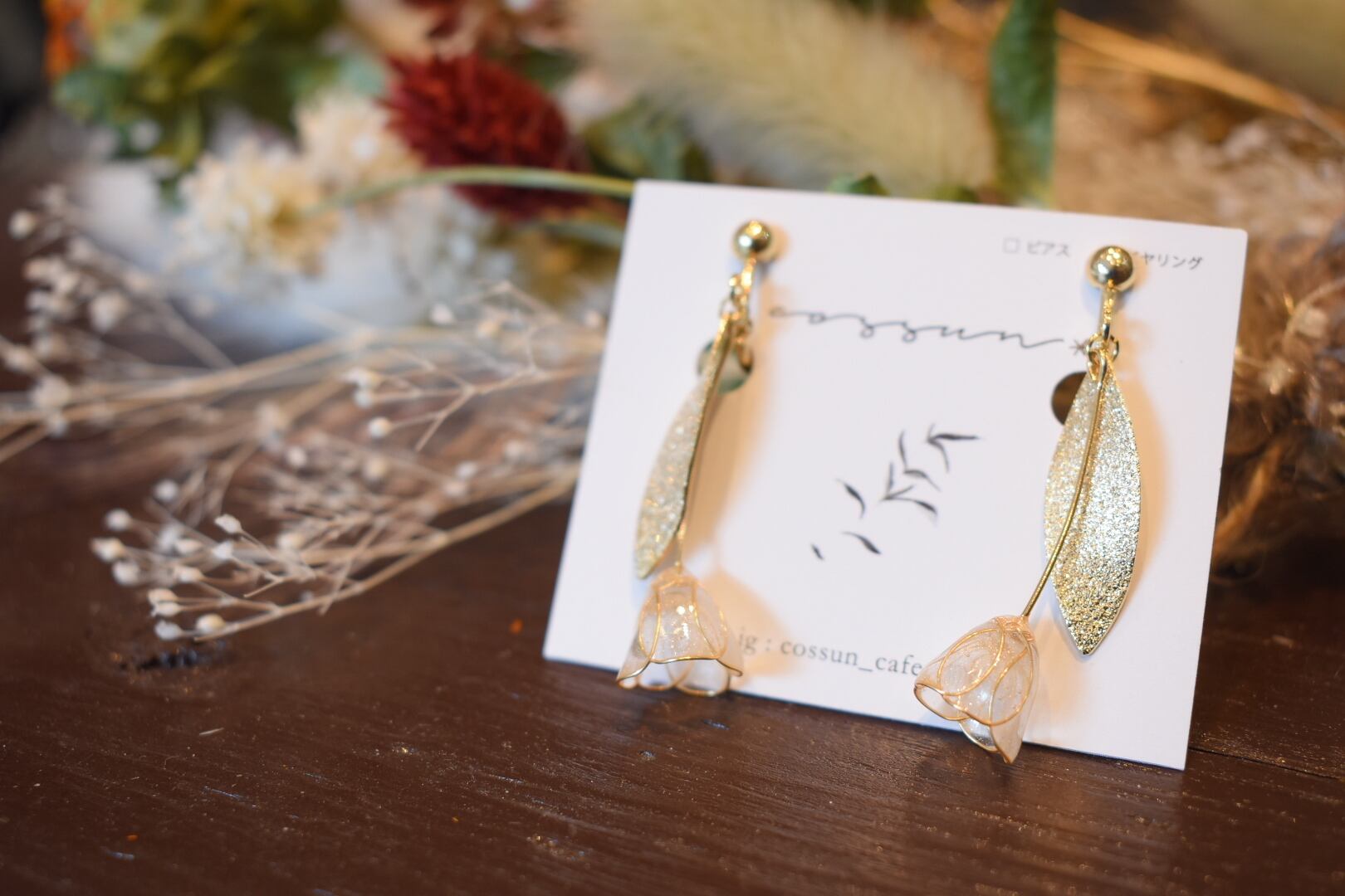 【ピアス変更可能】cossun*/白いお花のイヤリング