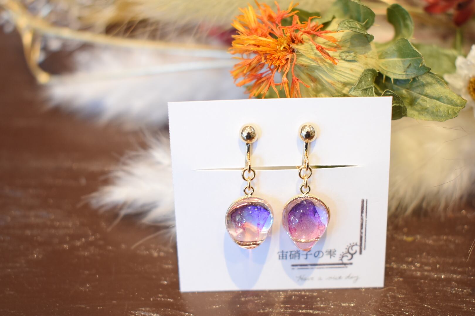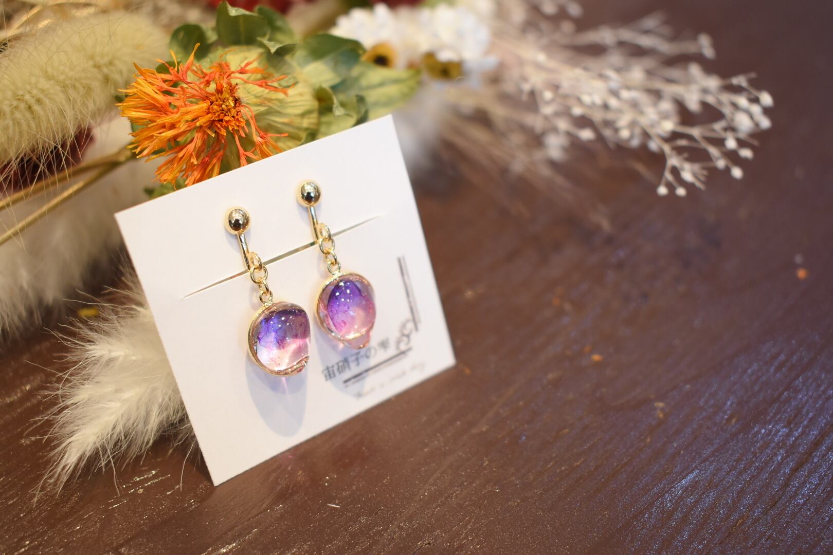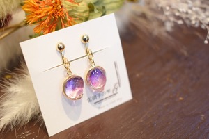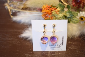 宙硝子の雫様制作の紫色がとても美しいイヤリングです^^