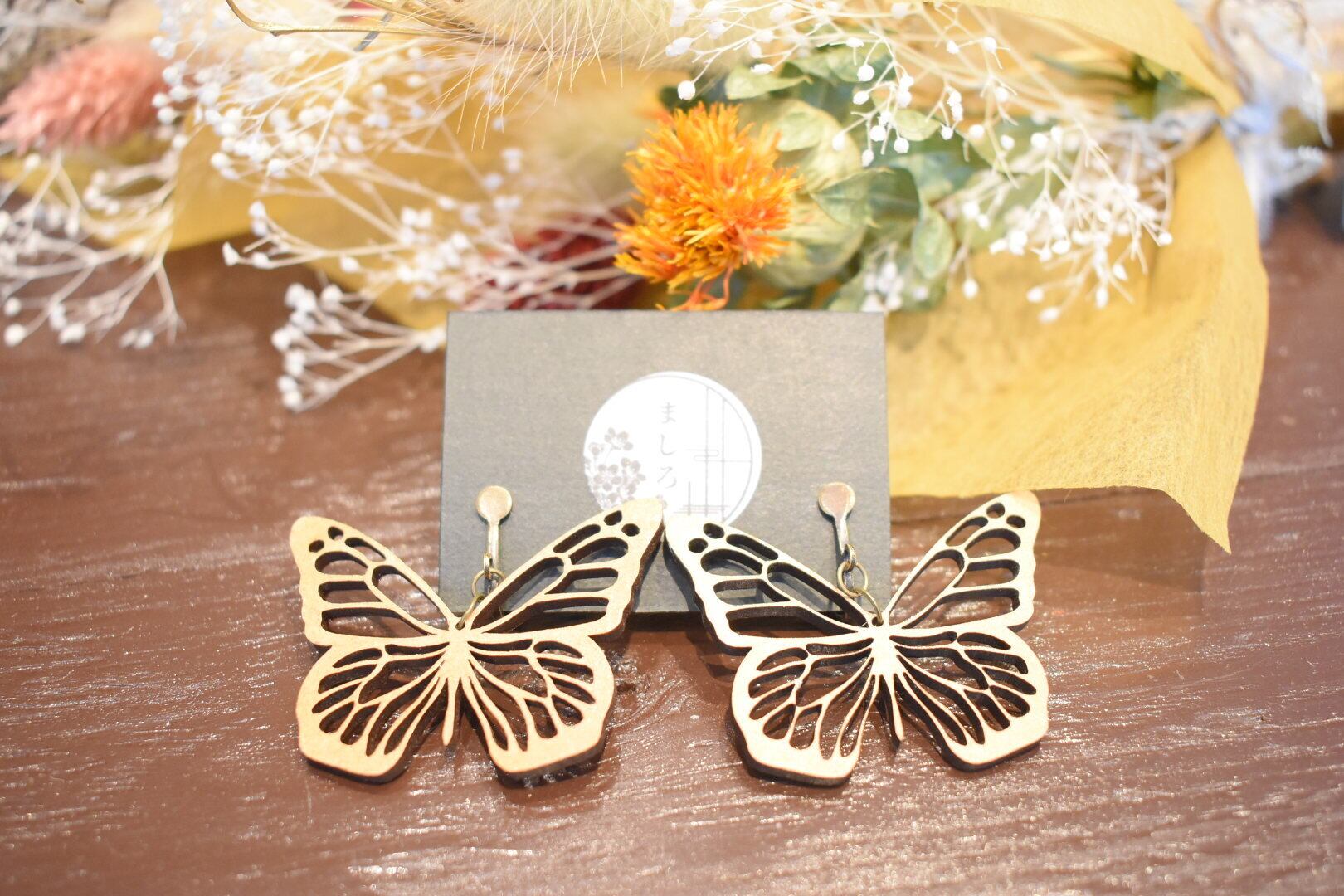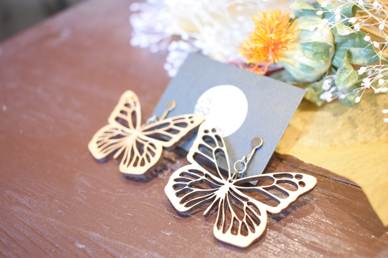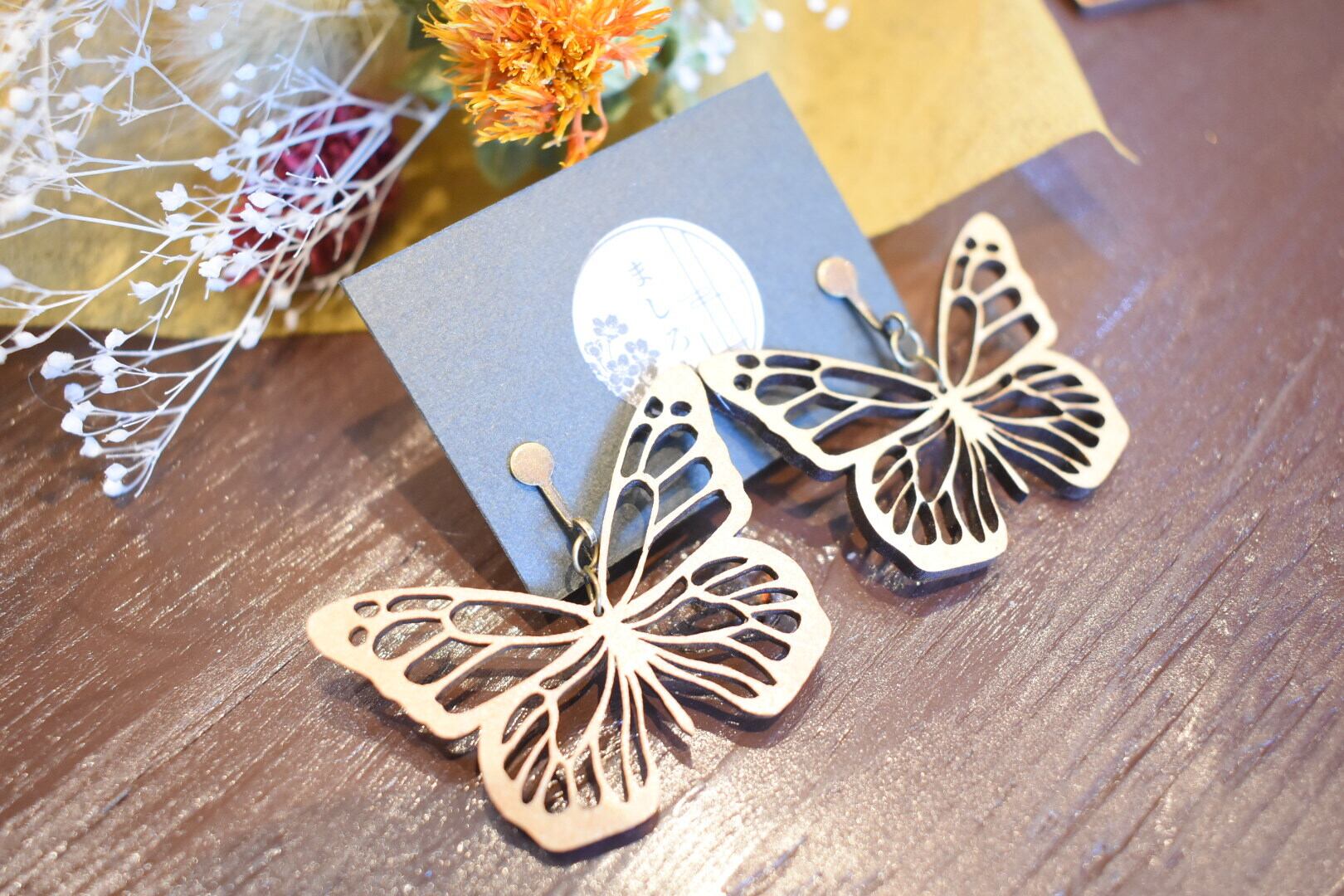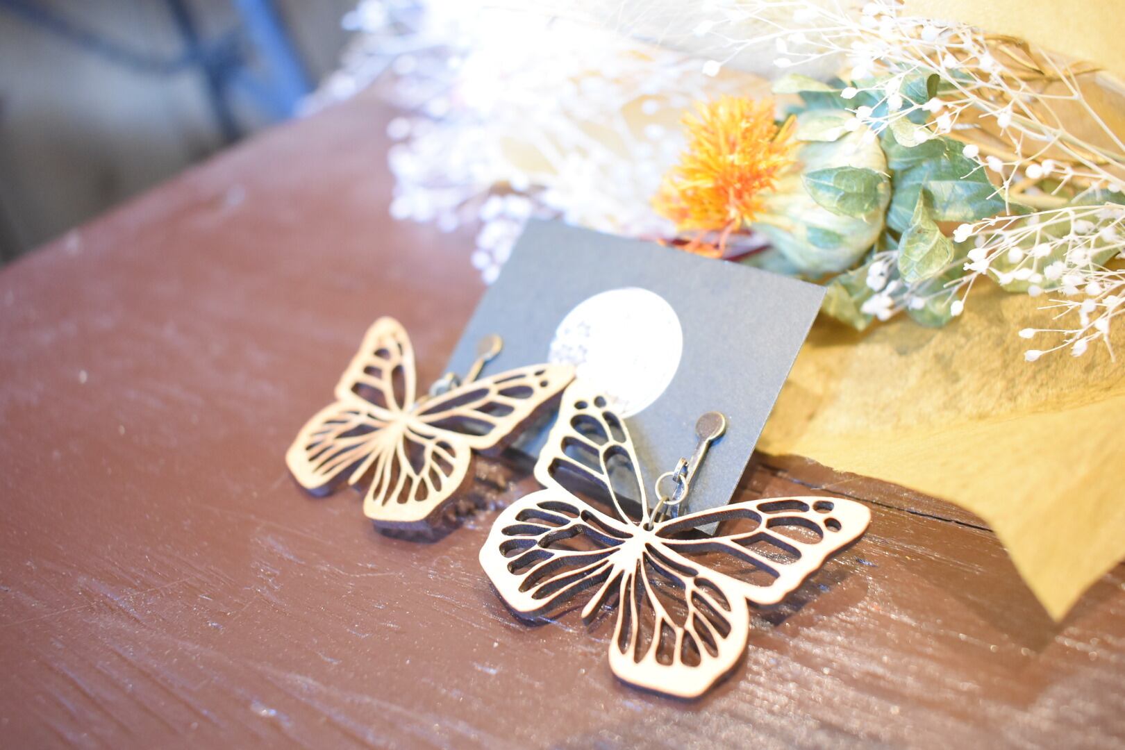 ましろ様が木材で制作されたてふてふイヤリングです‼︎