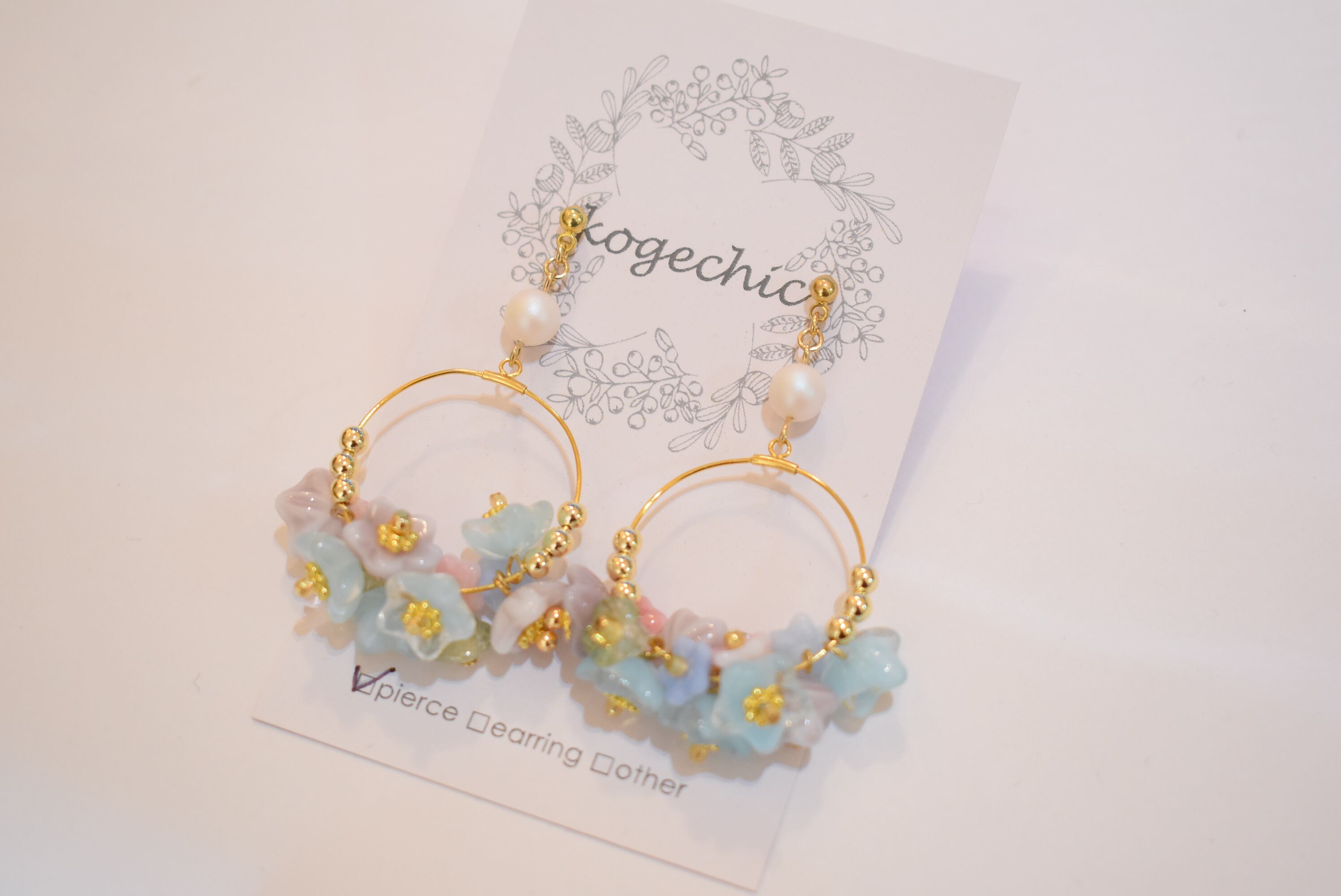 【イヤリング変更可能】kogechic お花フープ ピアス