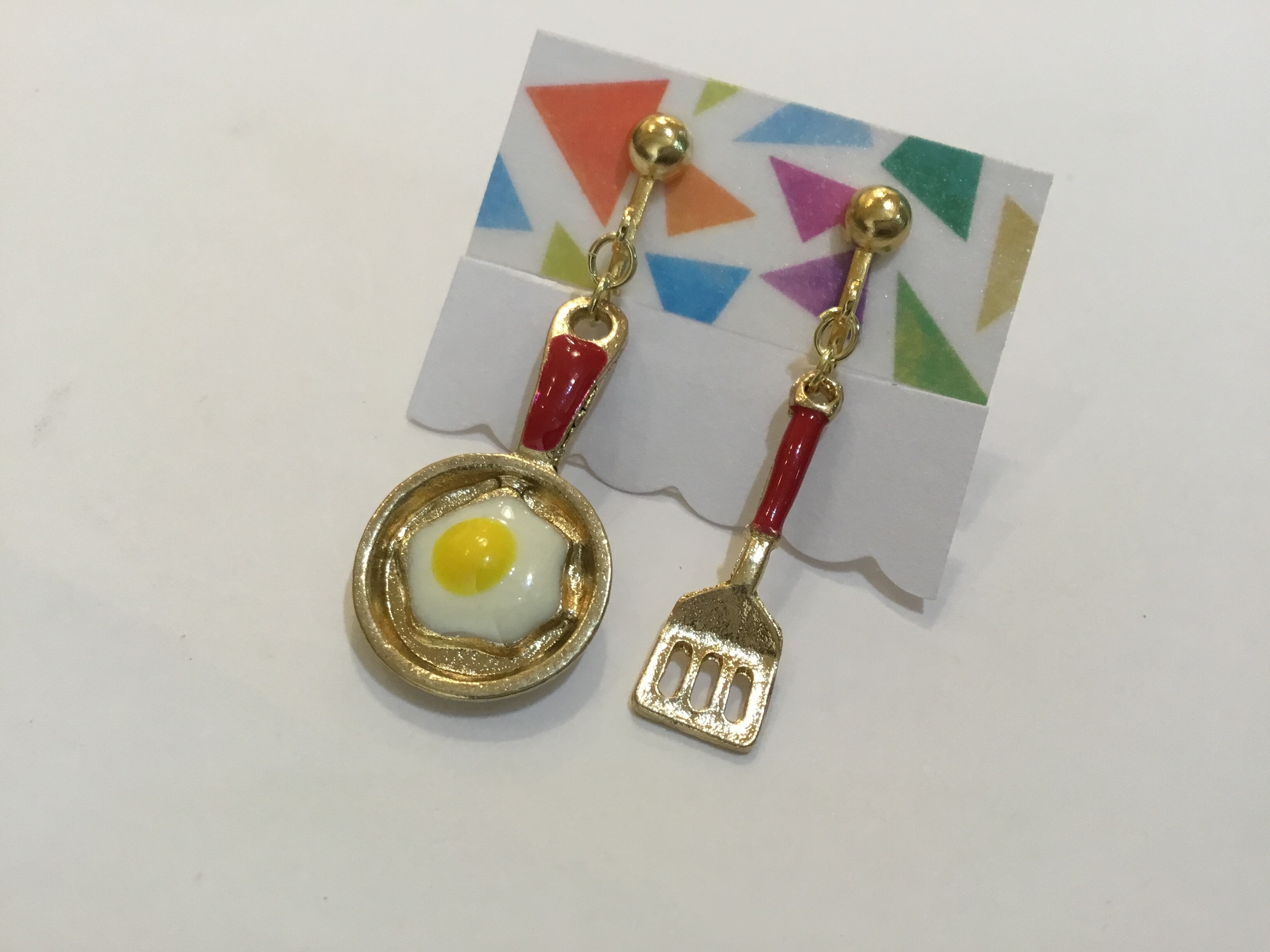 フライパンにのった目玉焼きが可愛いアクセサリーです。