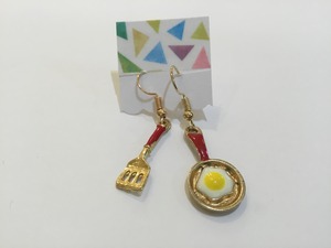 【イヤリング変更可能】アトリエSATO 目玉焼きフライパンピアス