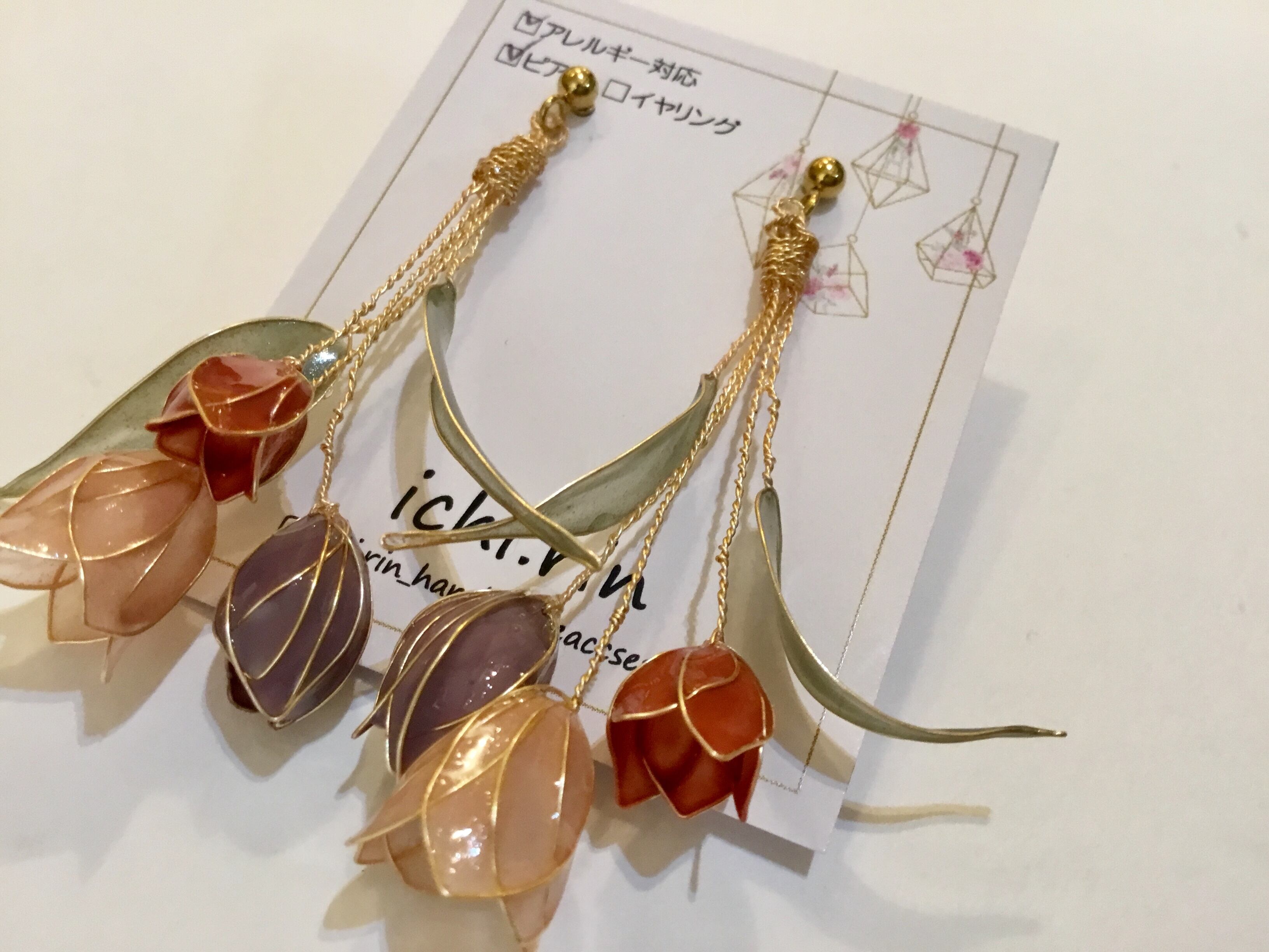 【イヤリング変更可能】ichi.rin チューリップブーケピアス くすみカラー