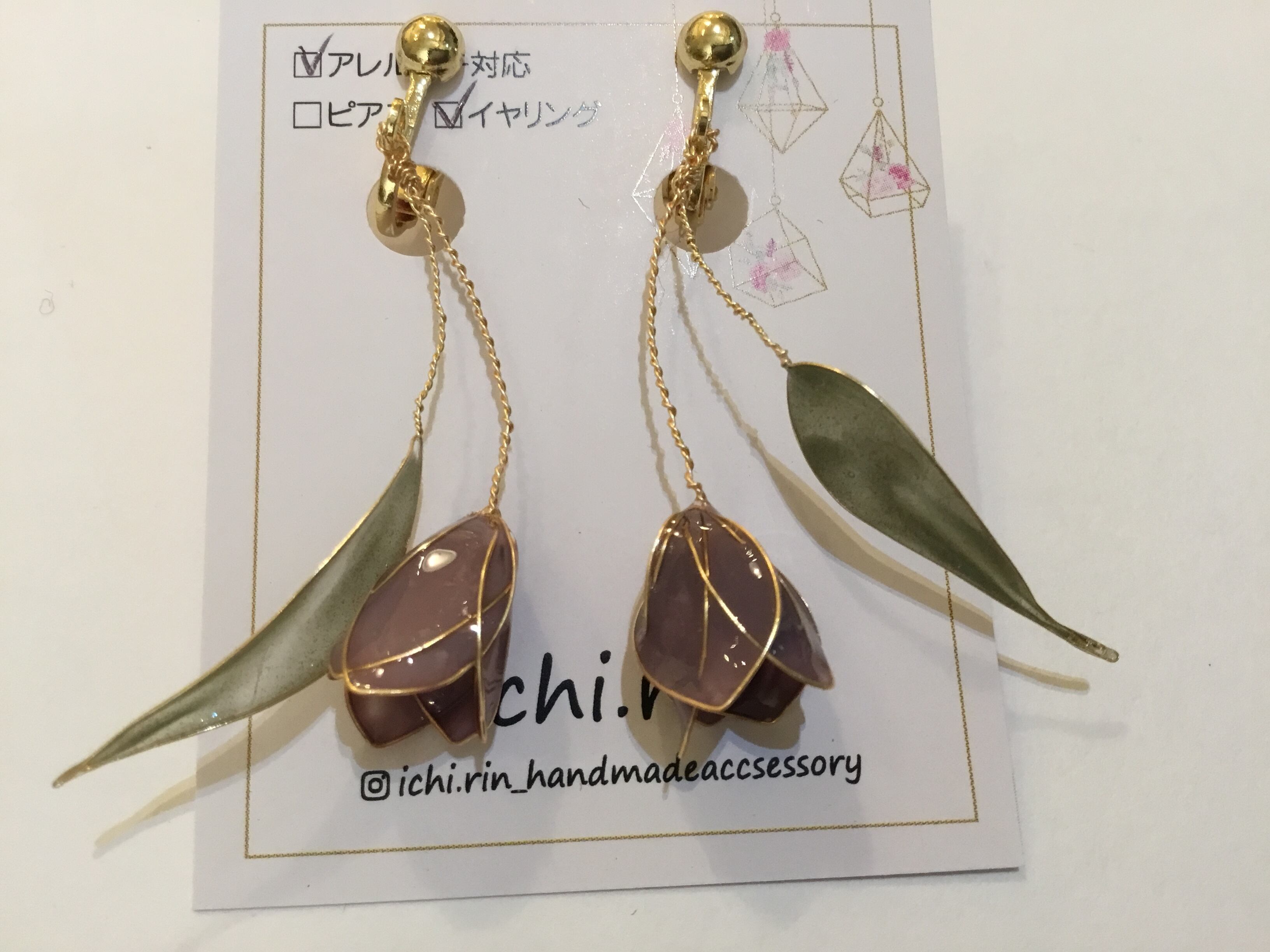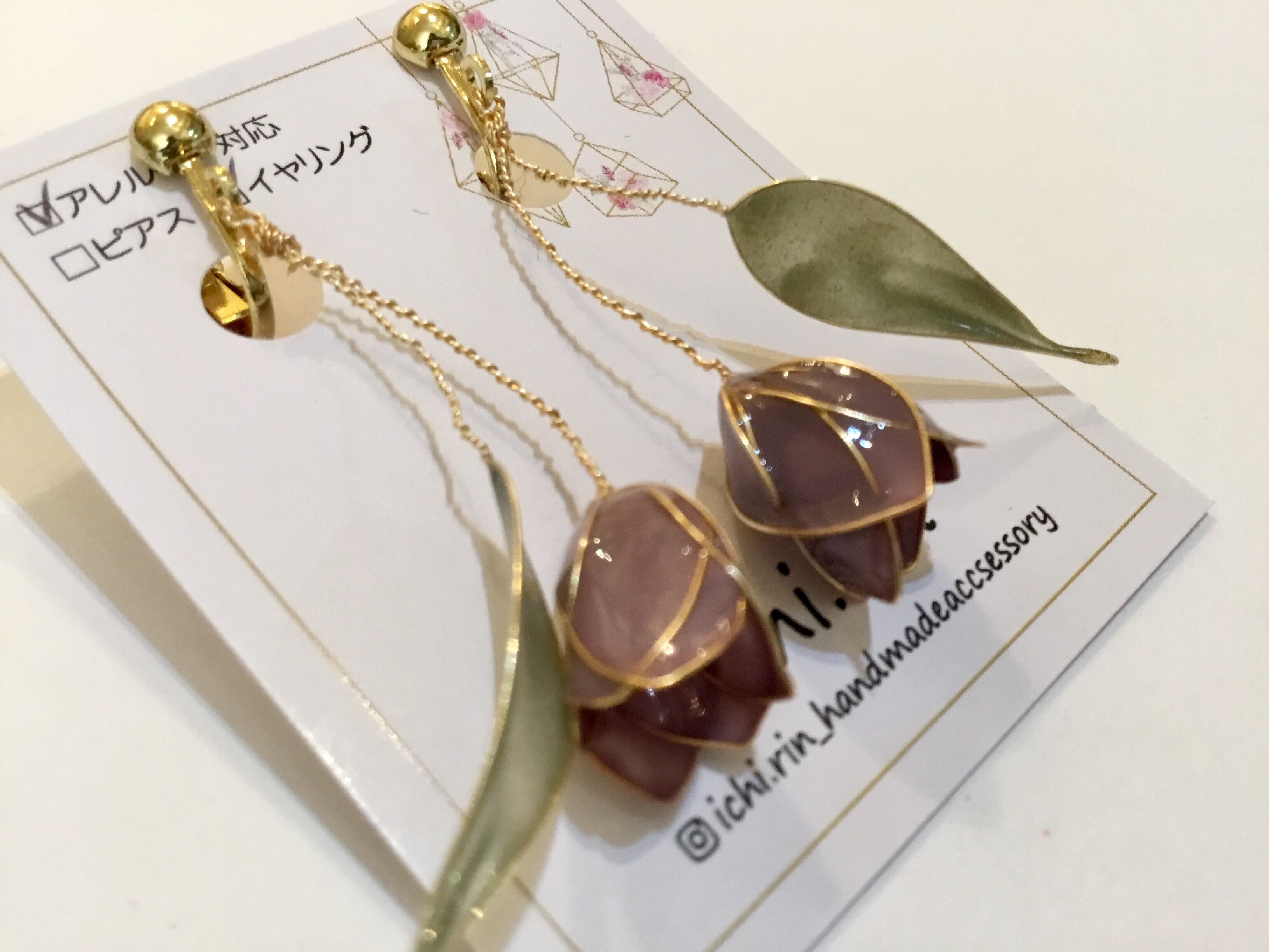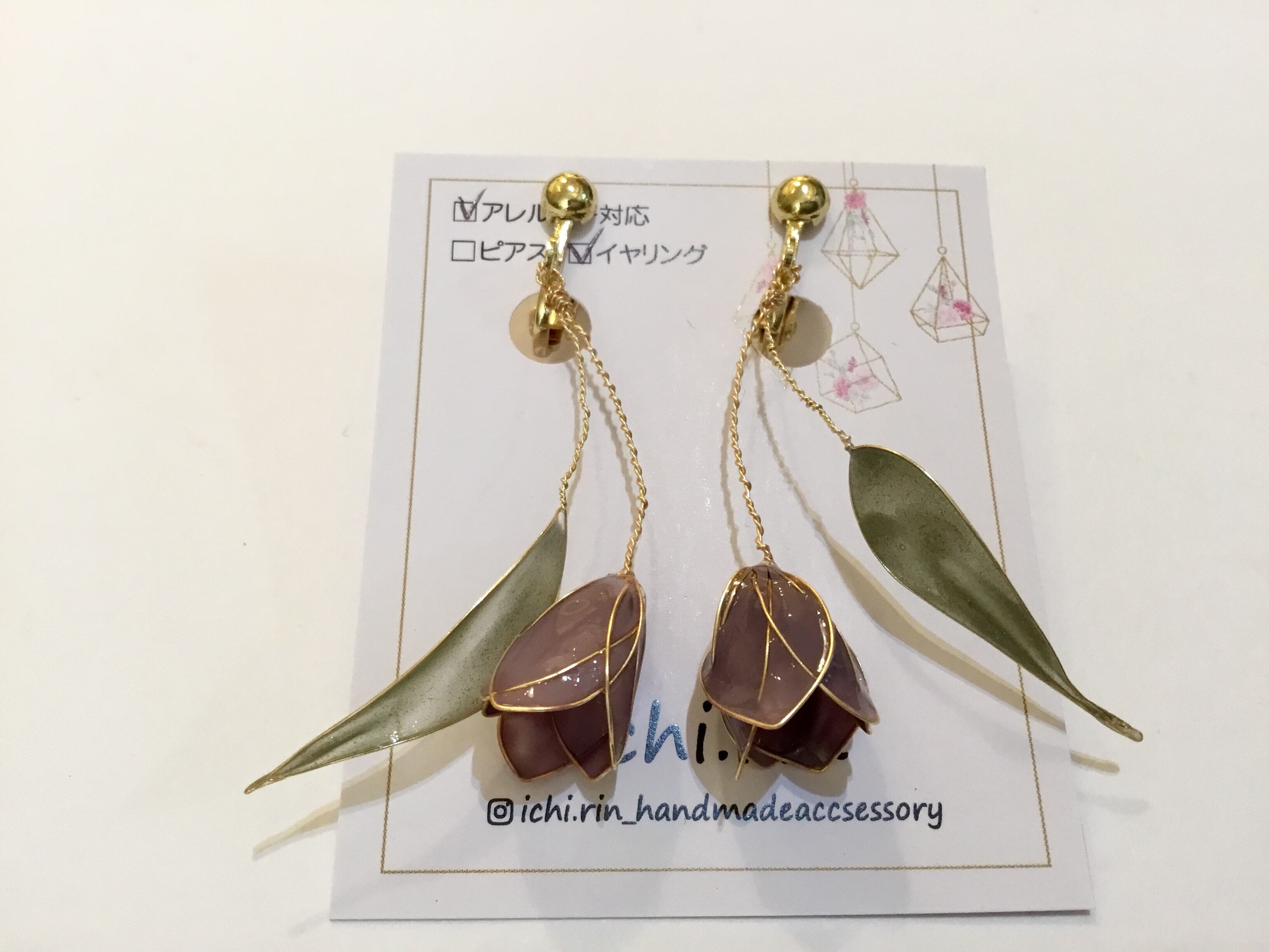 【ピアス変更可能】ichi.rin アンティークくすみラベンダーイヤリング