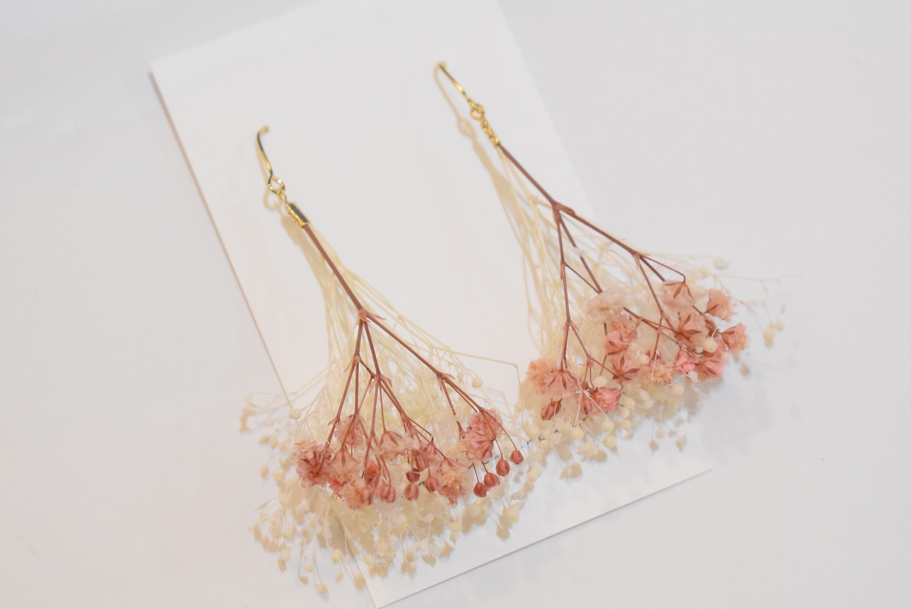 白とピンクのかすみ草が合わさった【ピアス】です。
