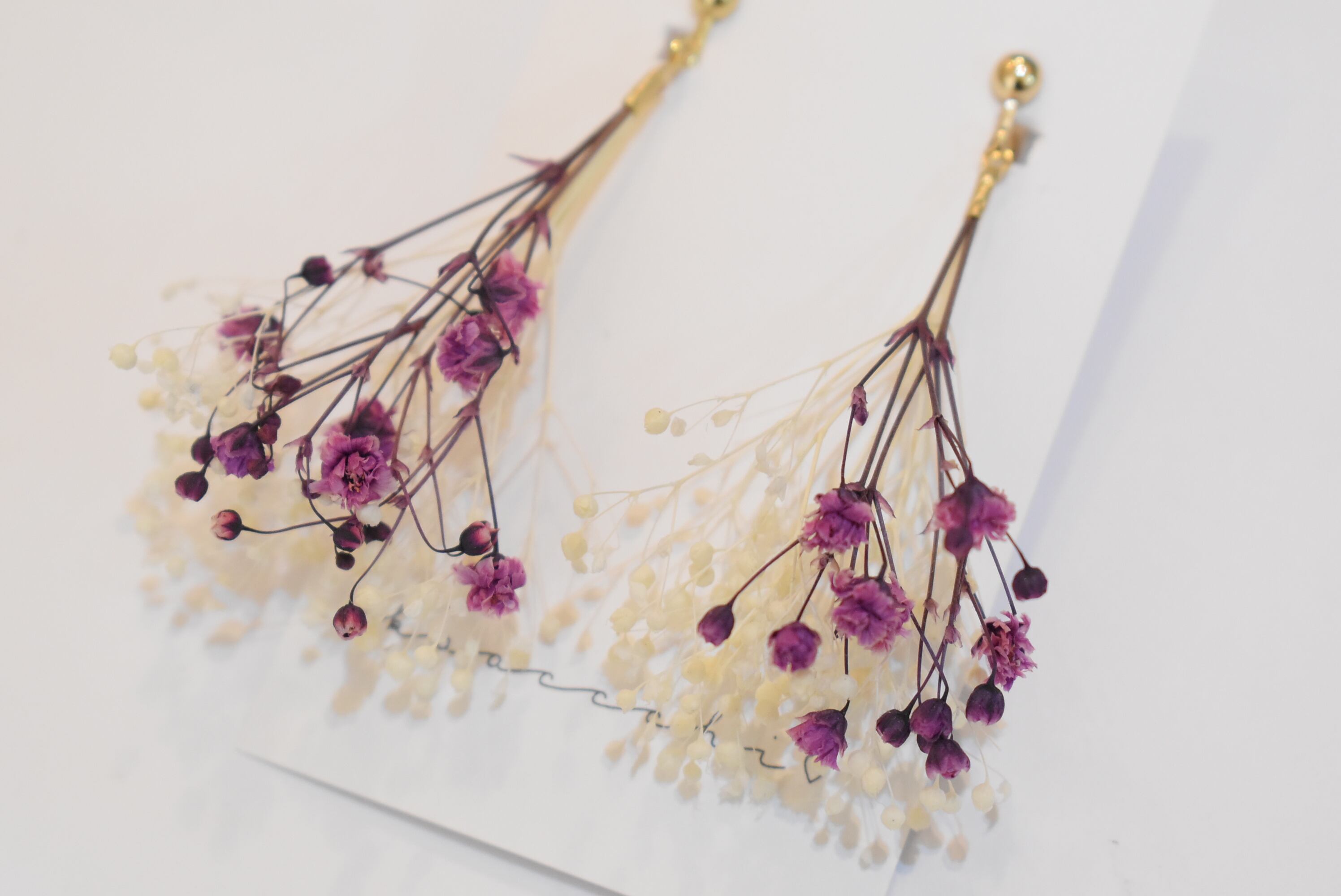 白と紫のかすみ草が合わさった【イヤリング】です。