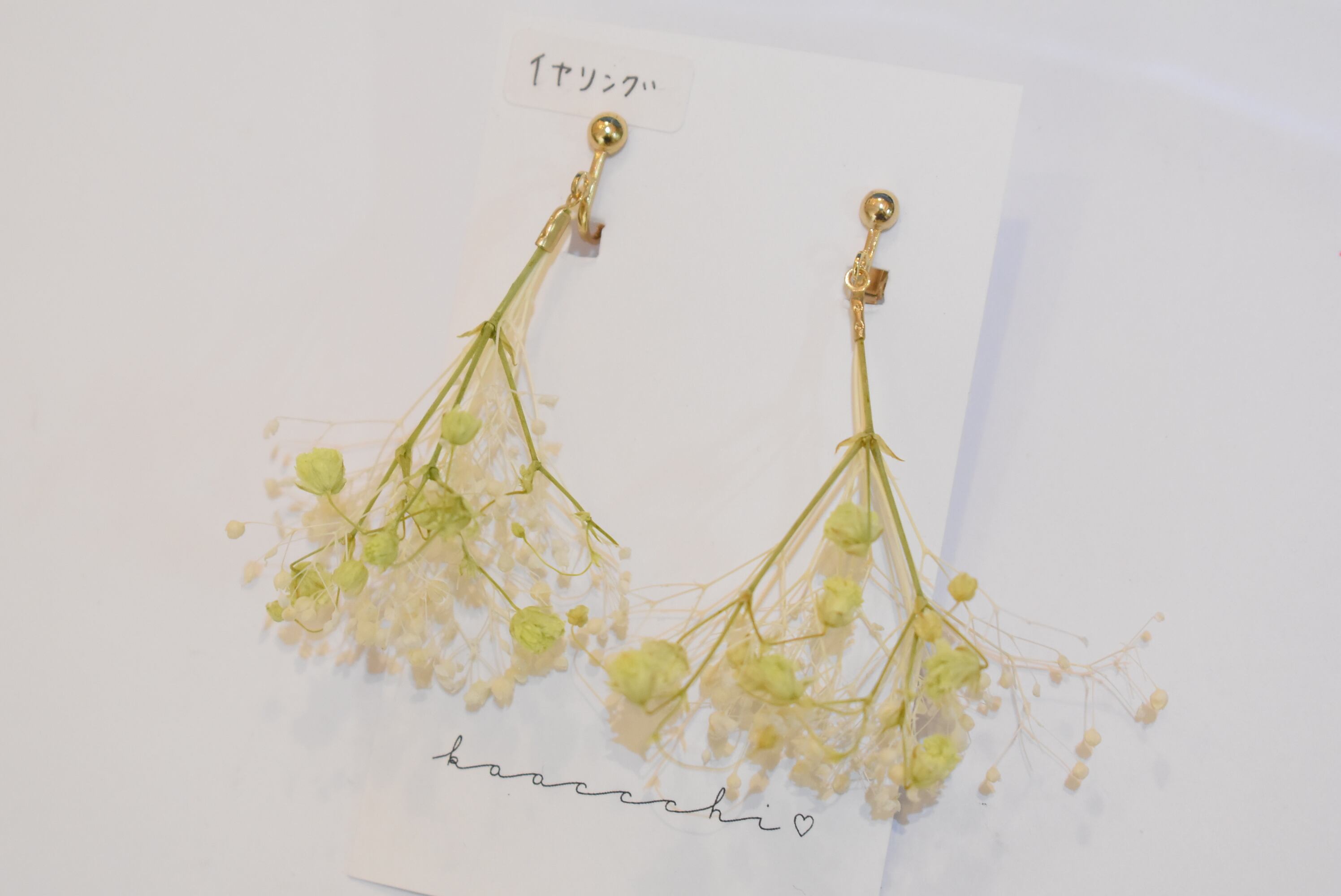 白と黄緑のかすみ草が合わさった【イヤリング】です。