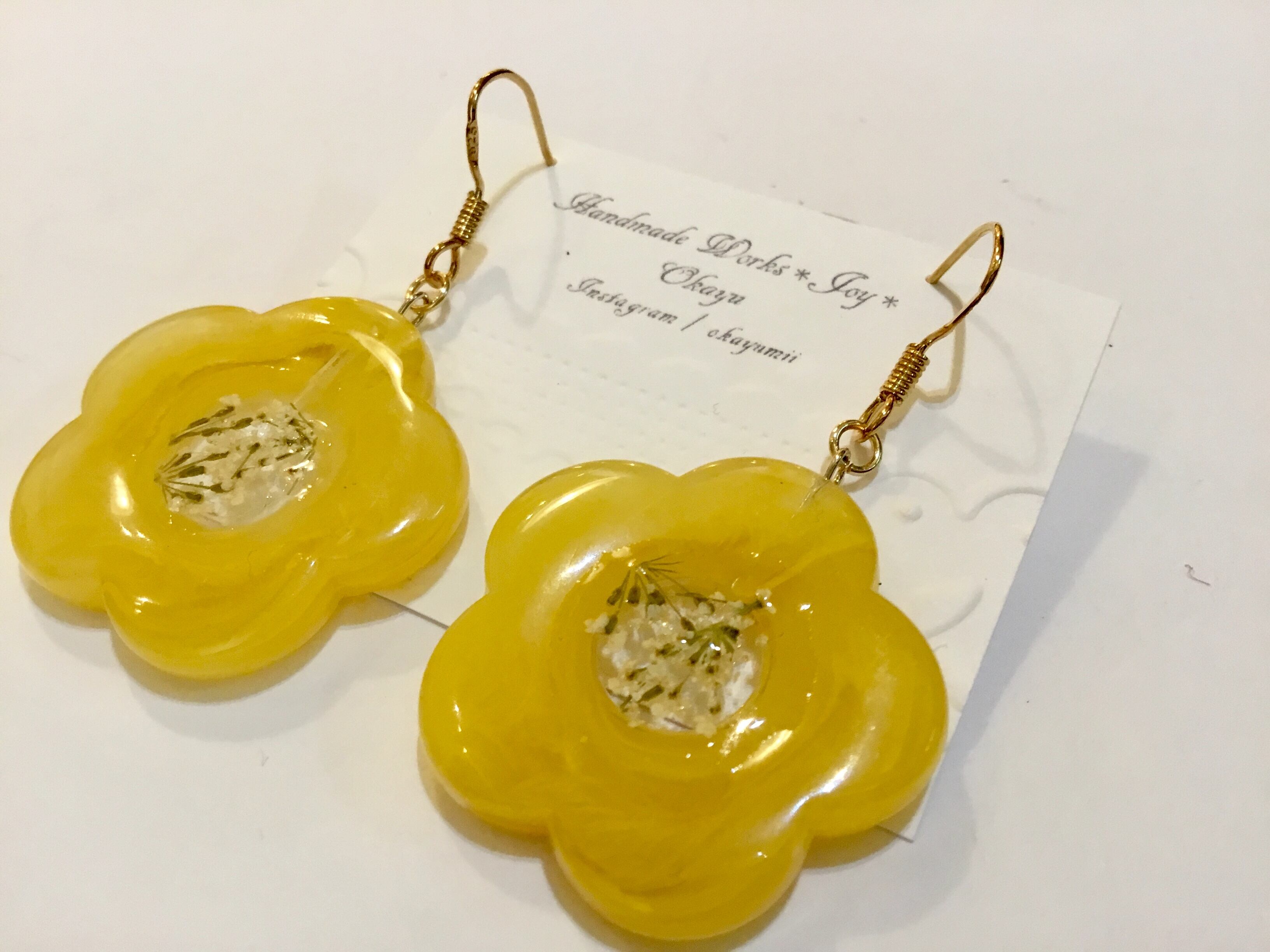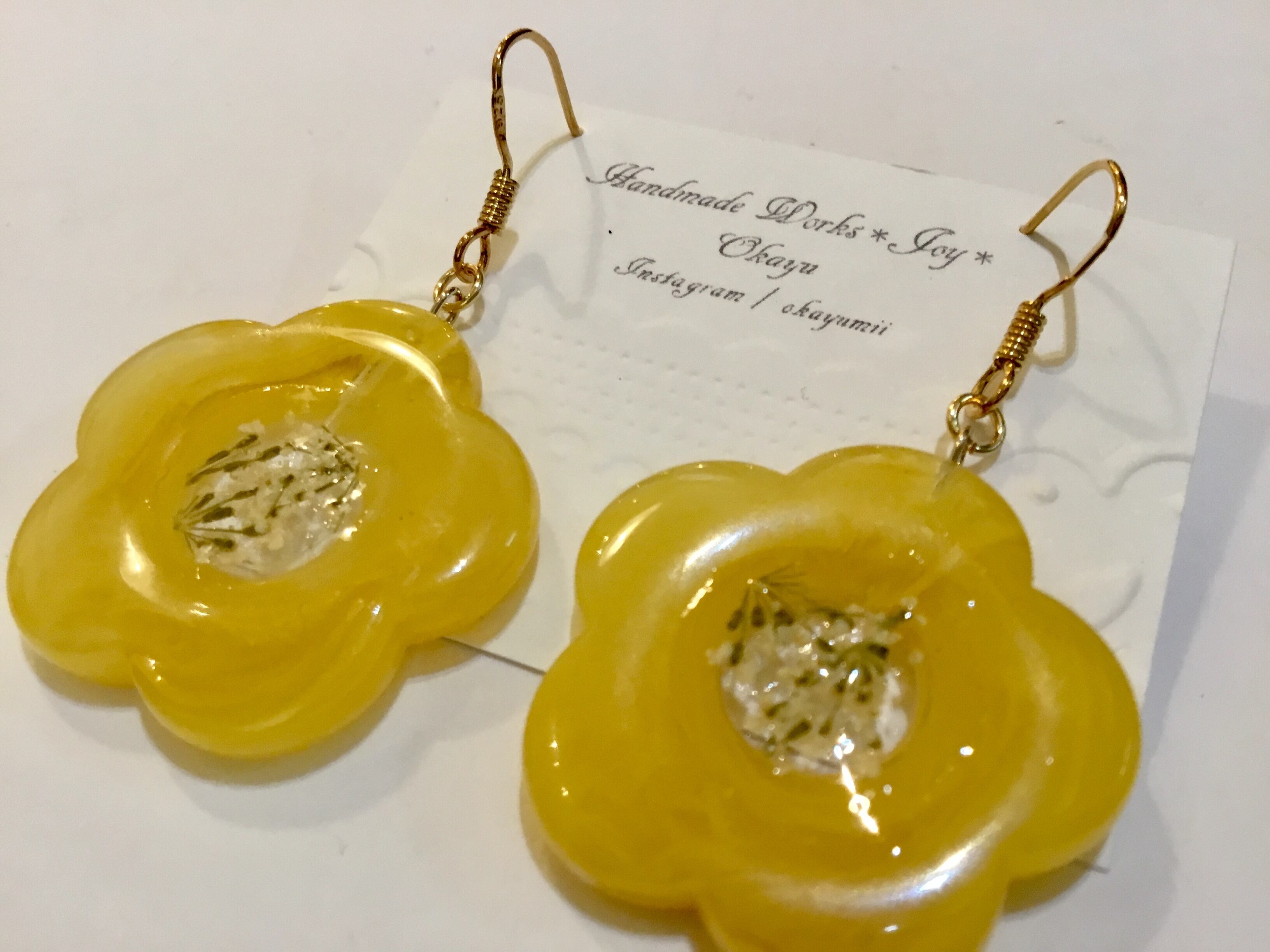 【イヤリング変更可能】JOY お花ピアス イエロー