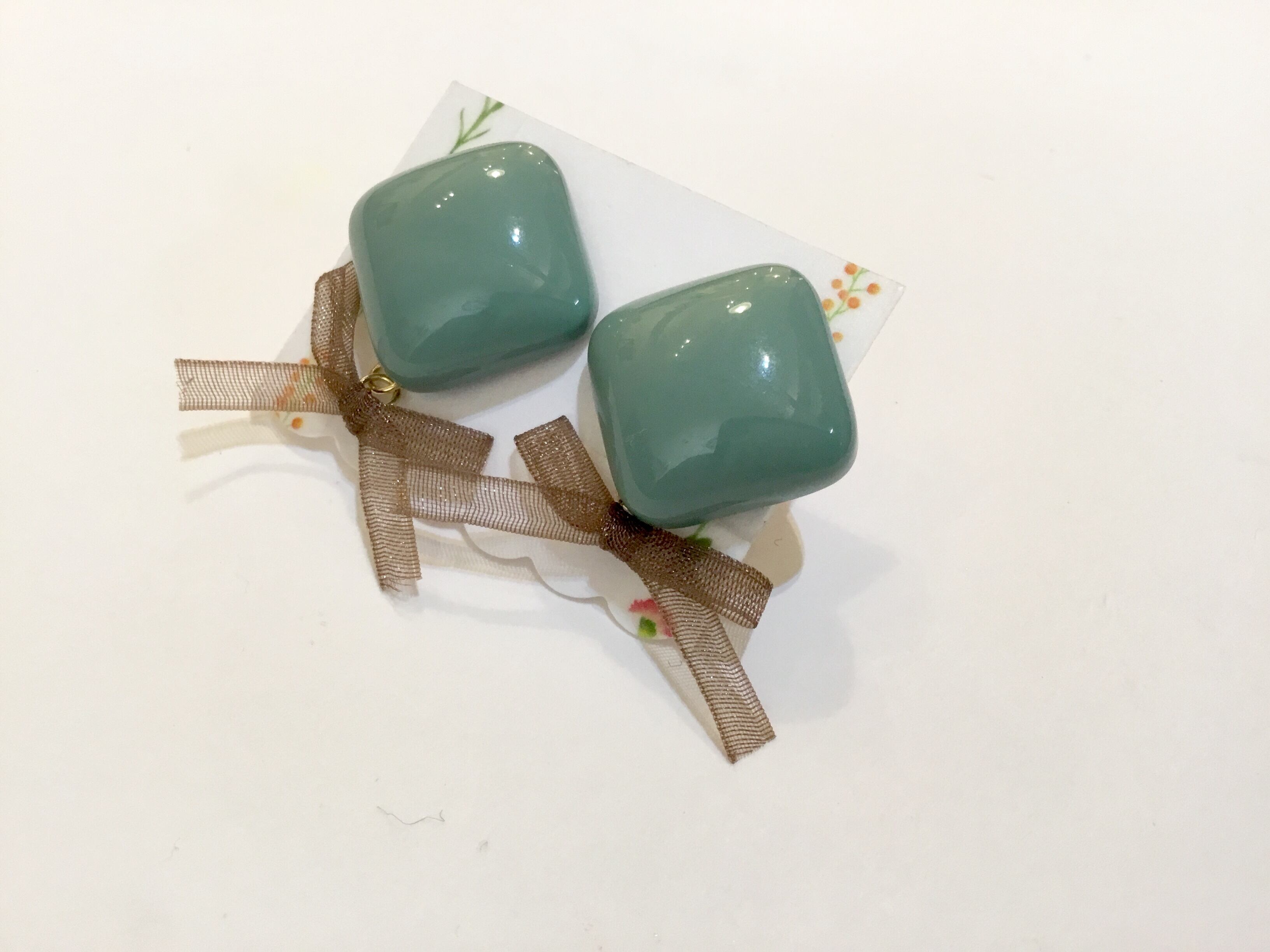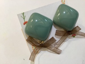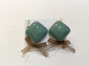 シンプルなひし形モチーフとオーガンジーのリボンの組み合わせがかわいいイヤリングです。