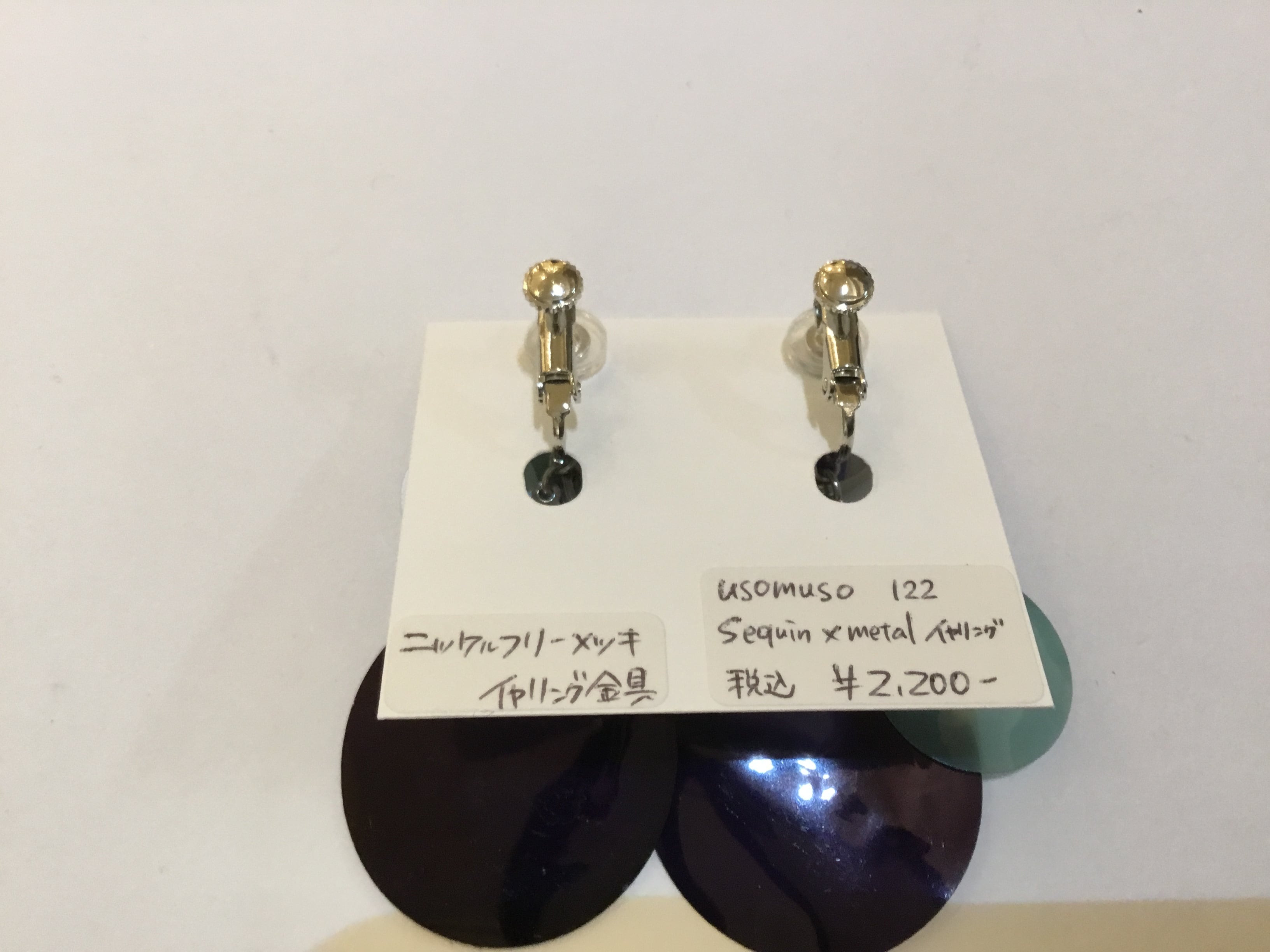【ピアス変更可能】usomuso Sequin×metal イヤリング