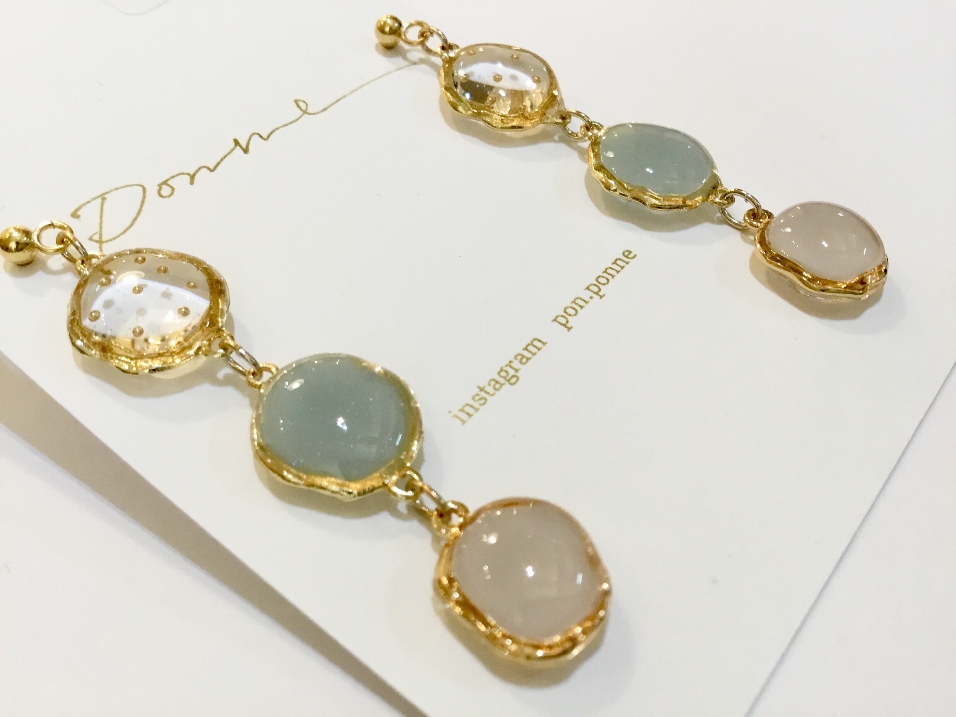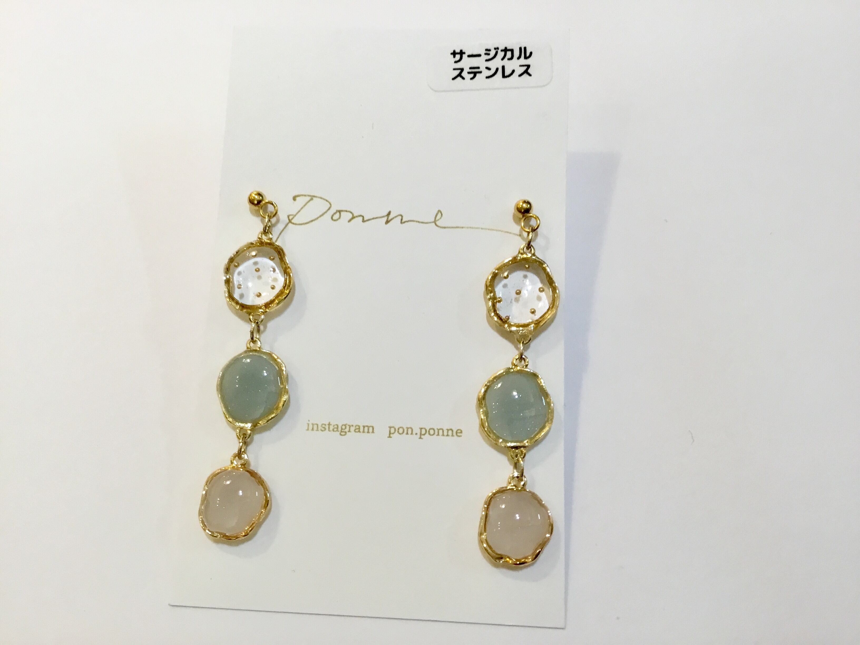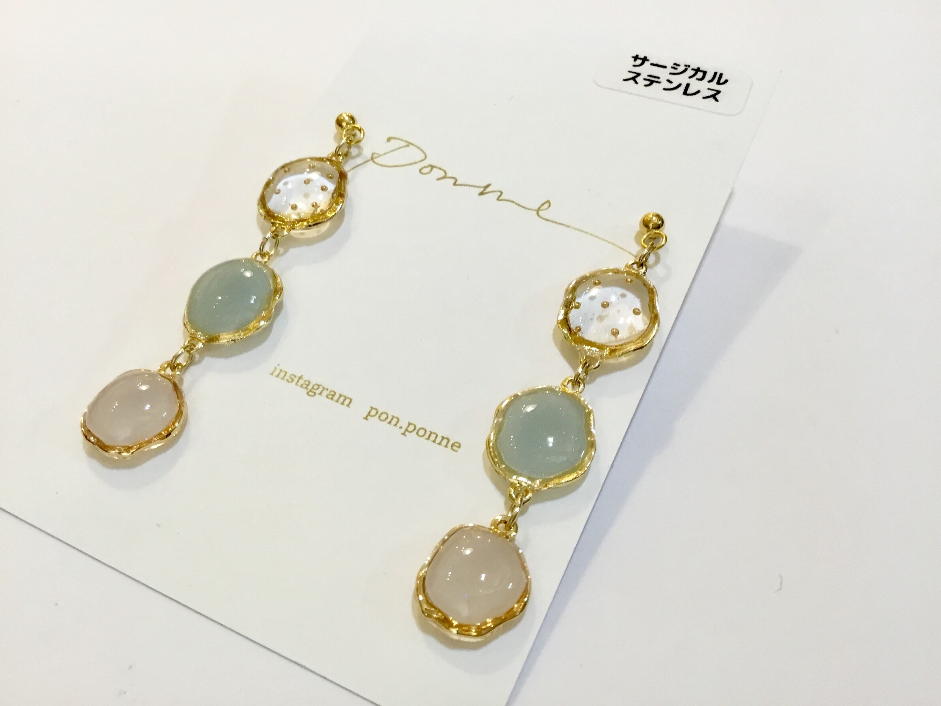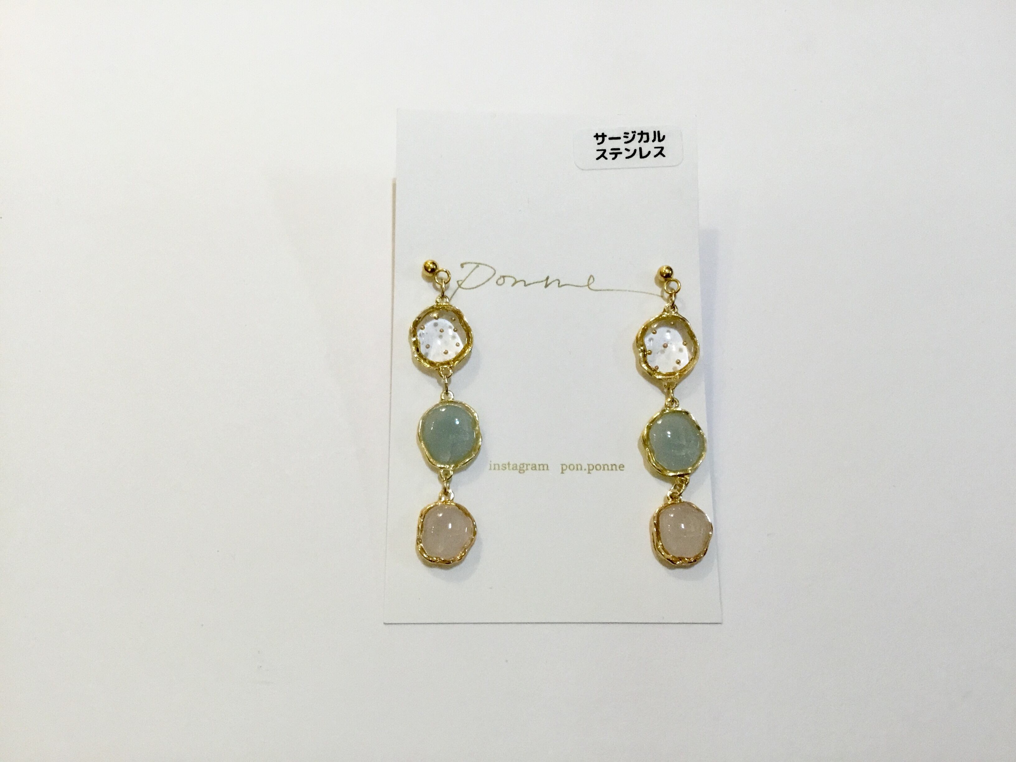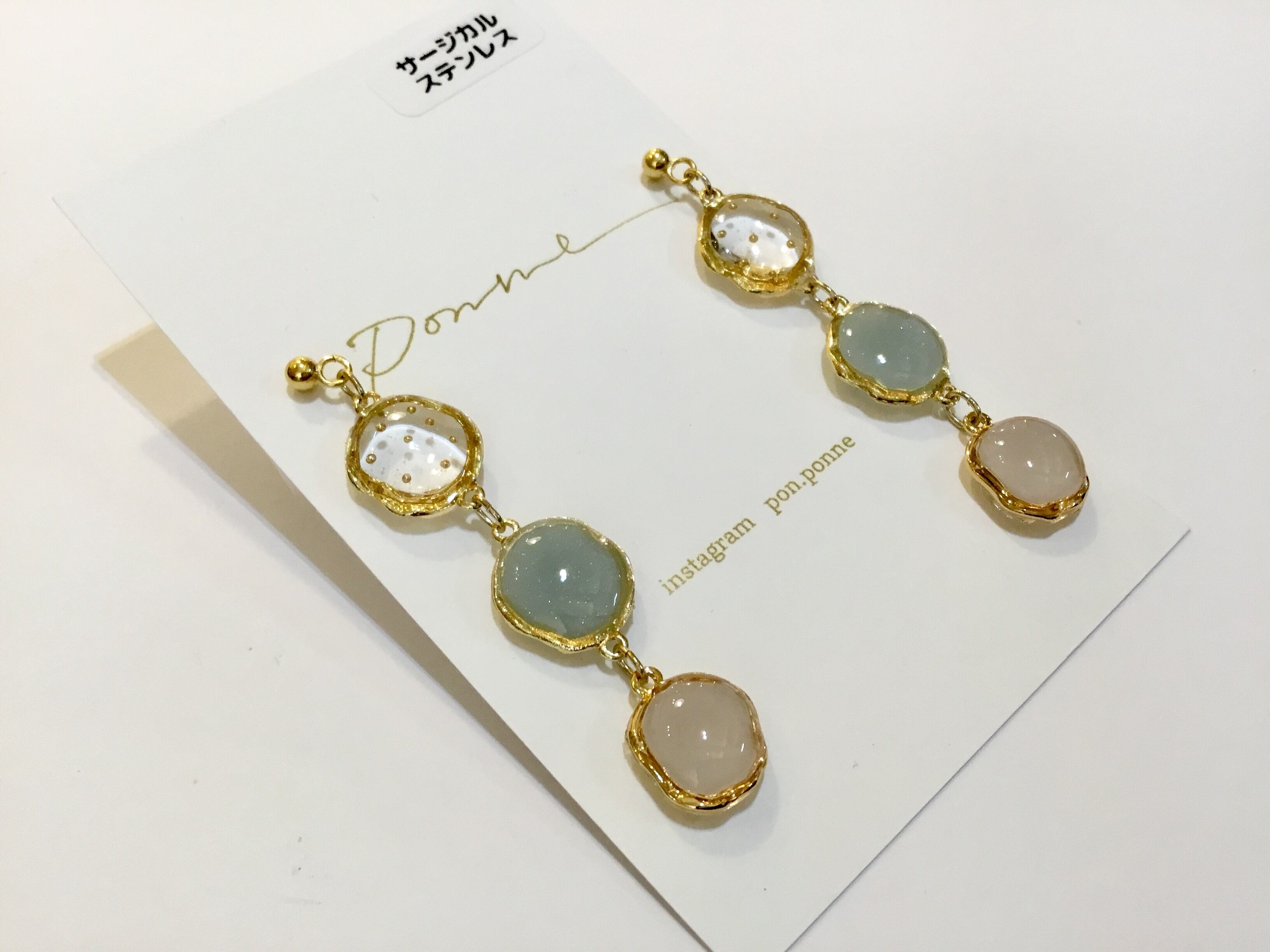 【イヤリング変更可能】 ponne つぶつぶ3連ピアス