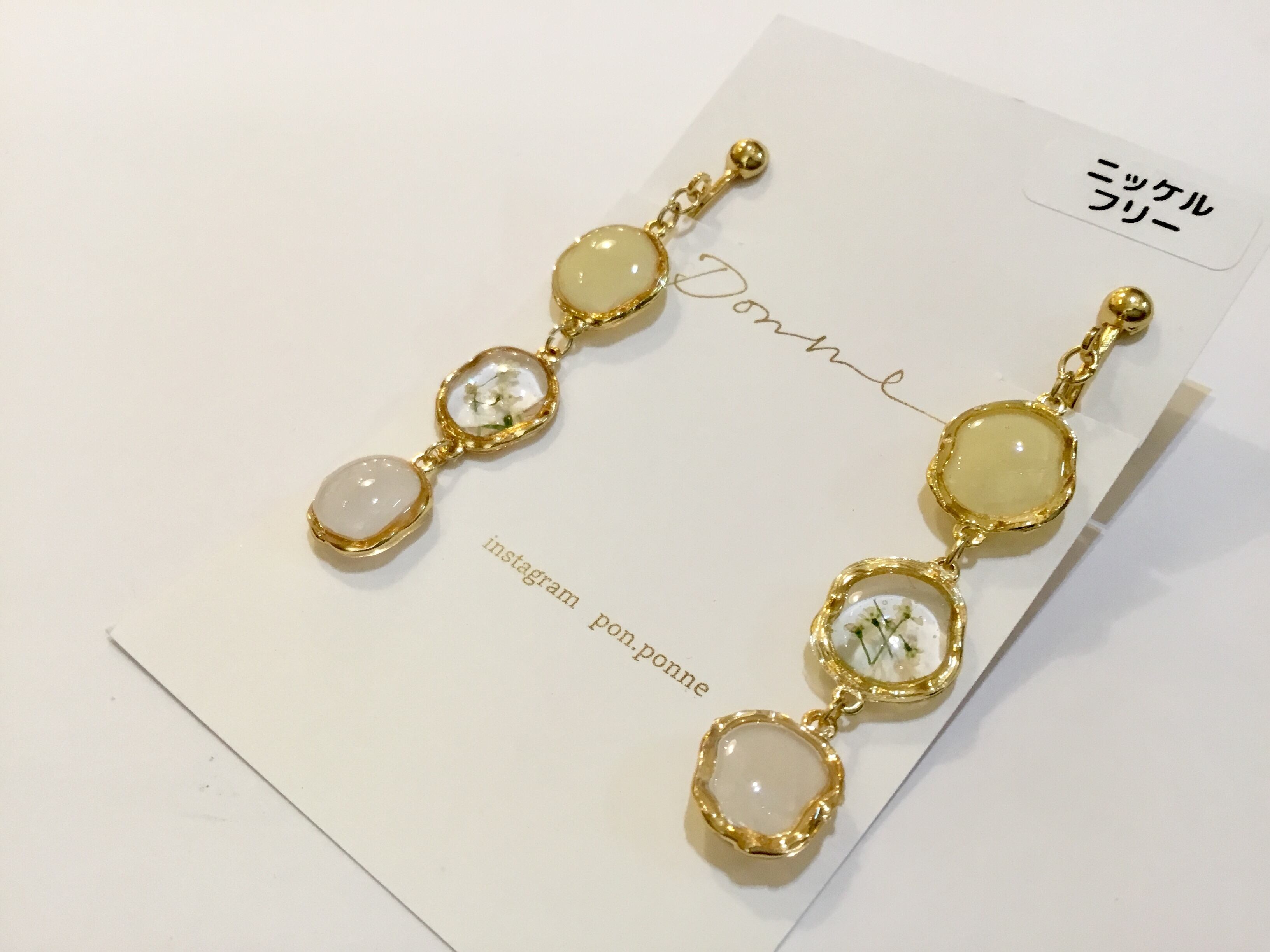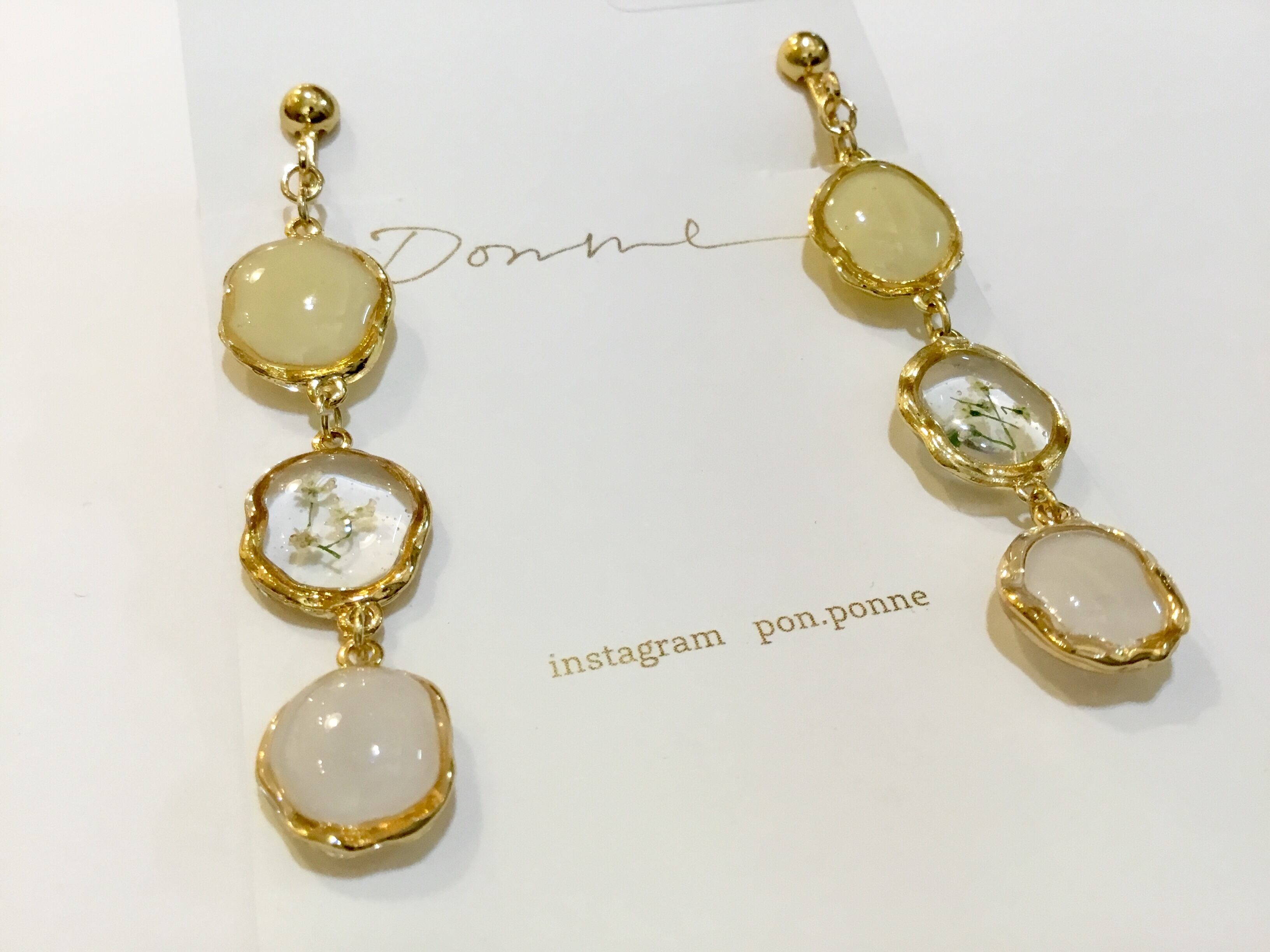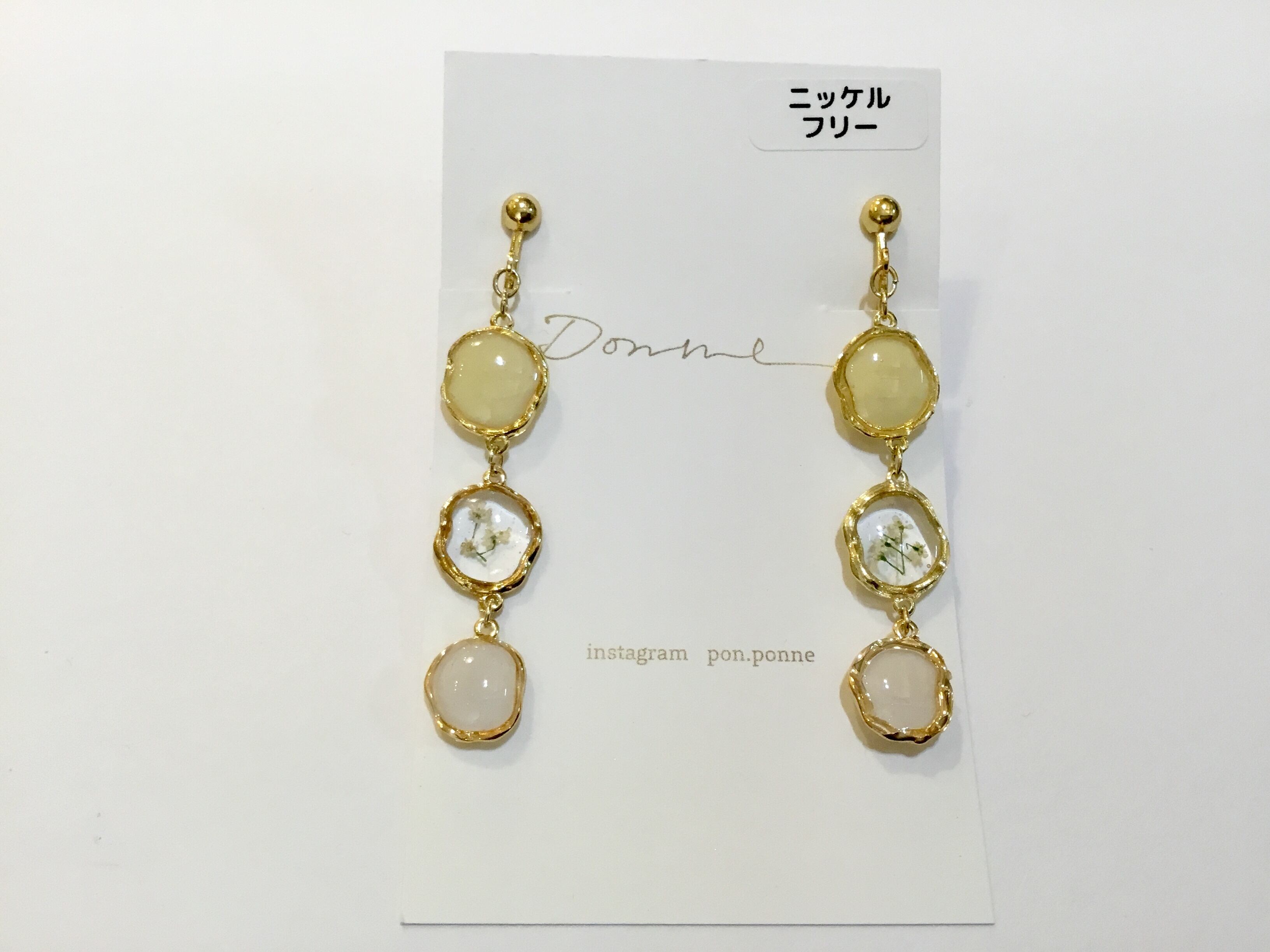 【ピアス変更可能】ponne つぶつぶ3連イヤリング