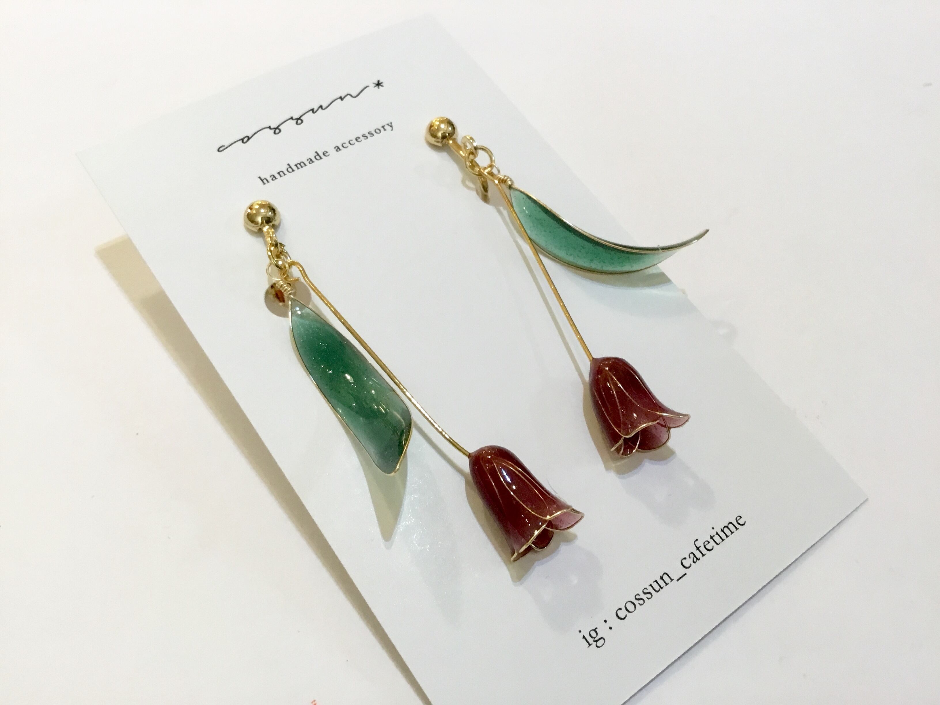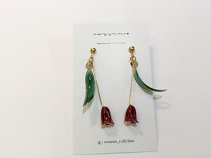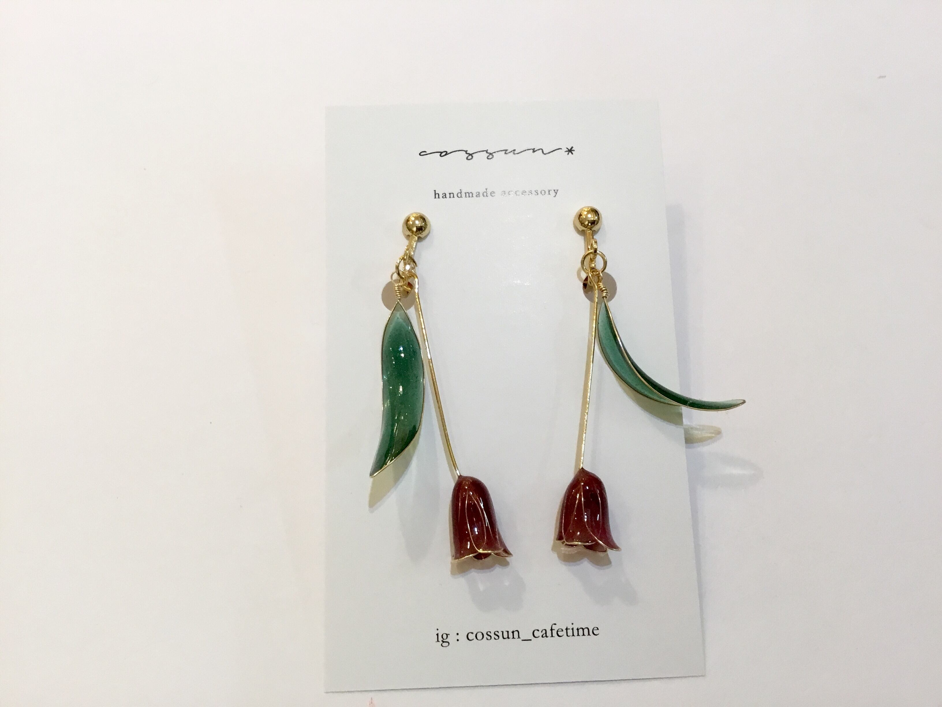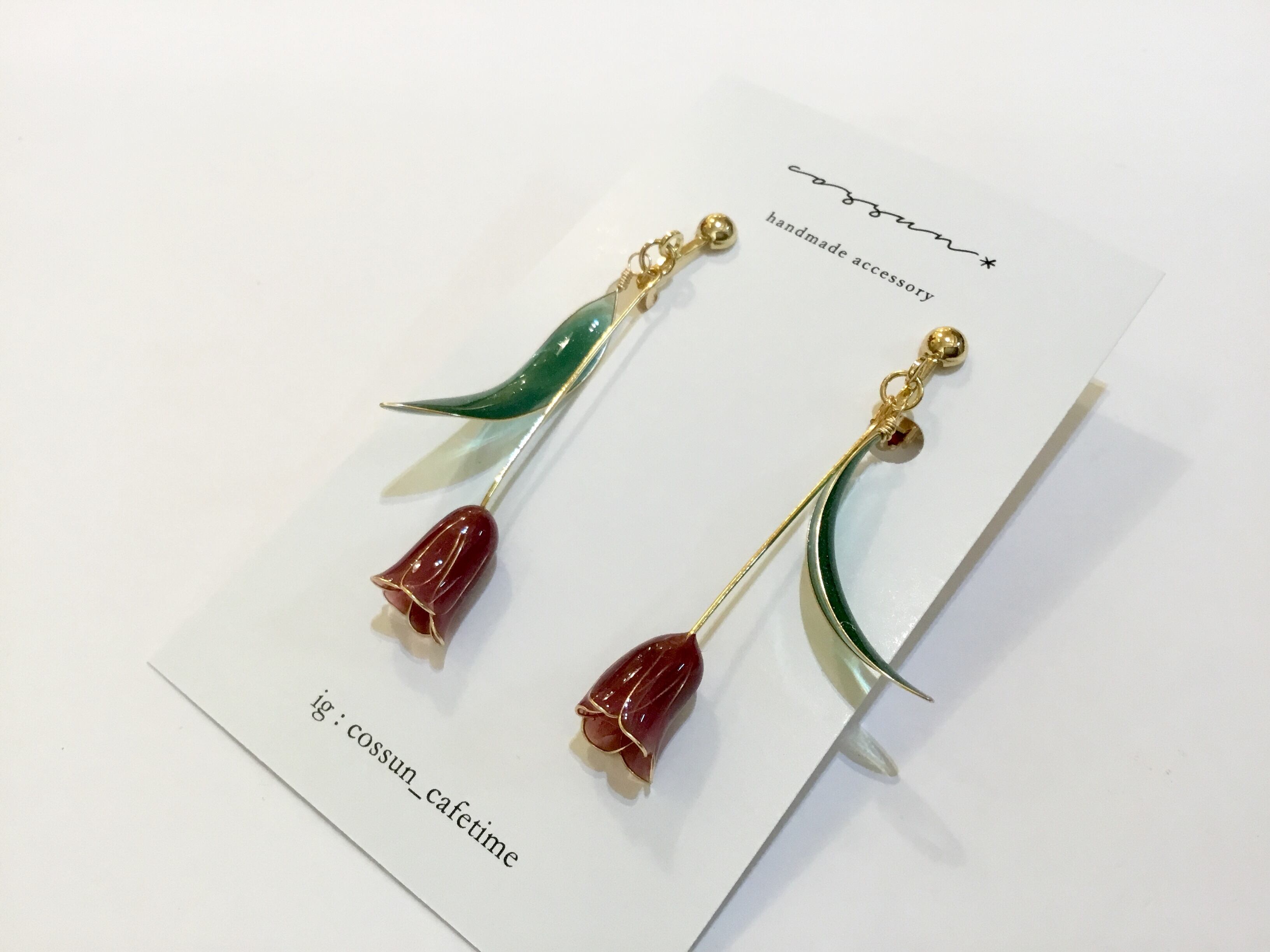 【ピアス変更可能】cossun チューリップイヤリング ワイン