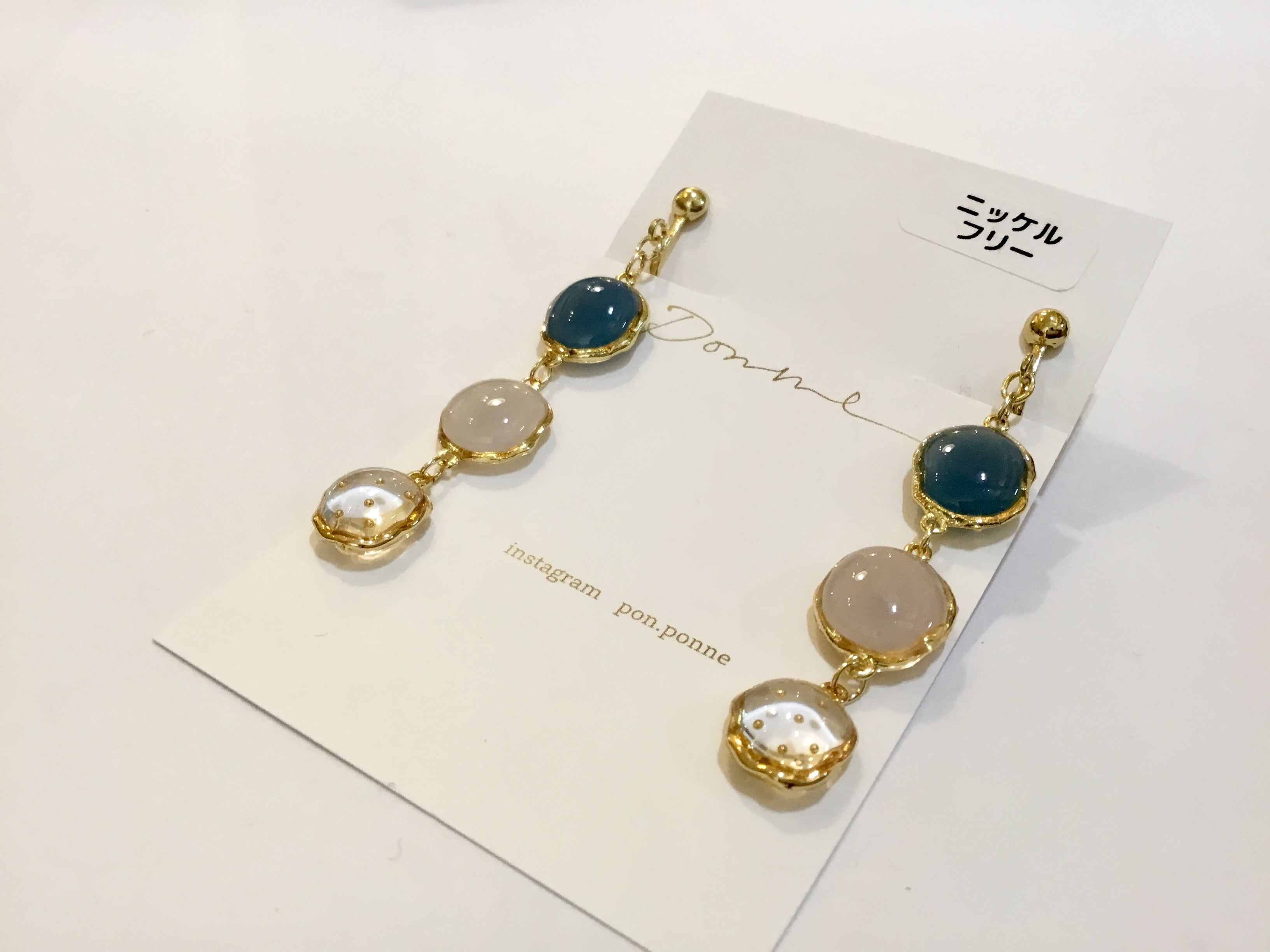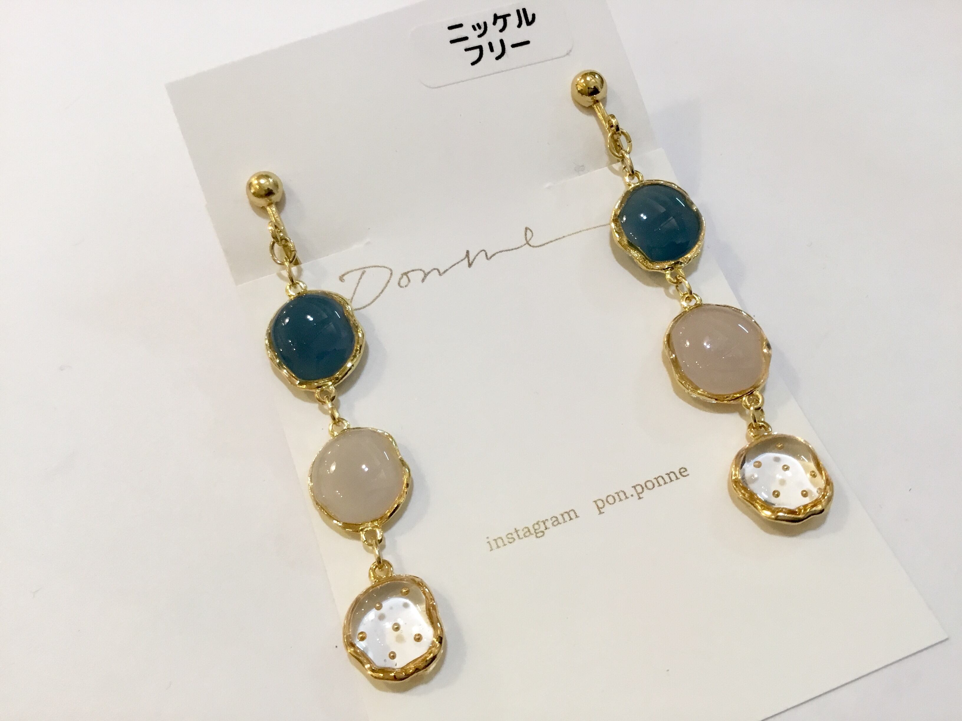 【ピアス変更可能】ponne 3連つぶつぶイヤリング